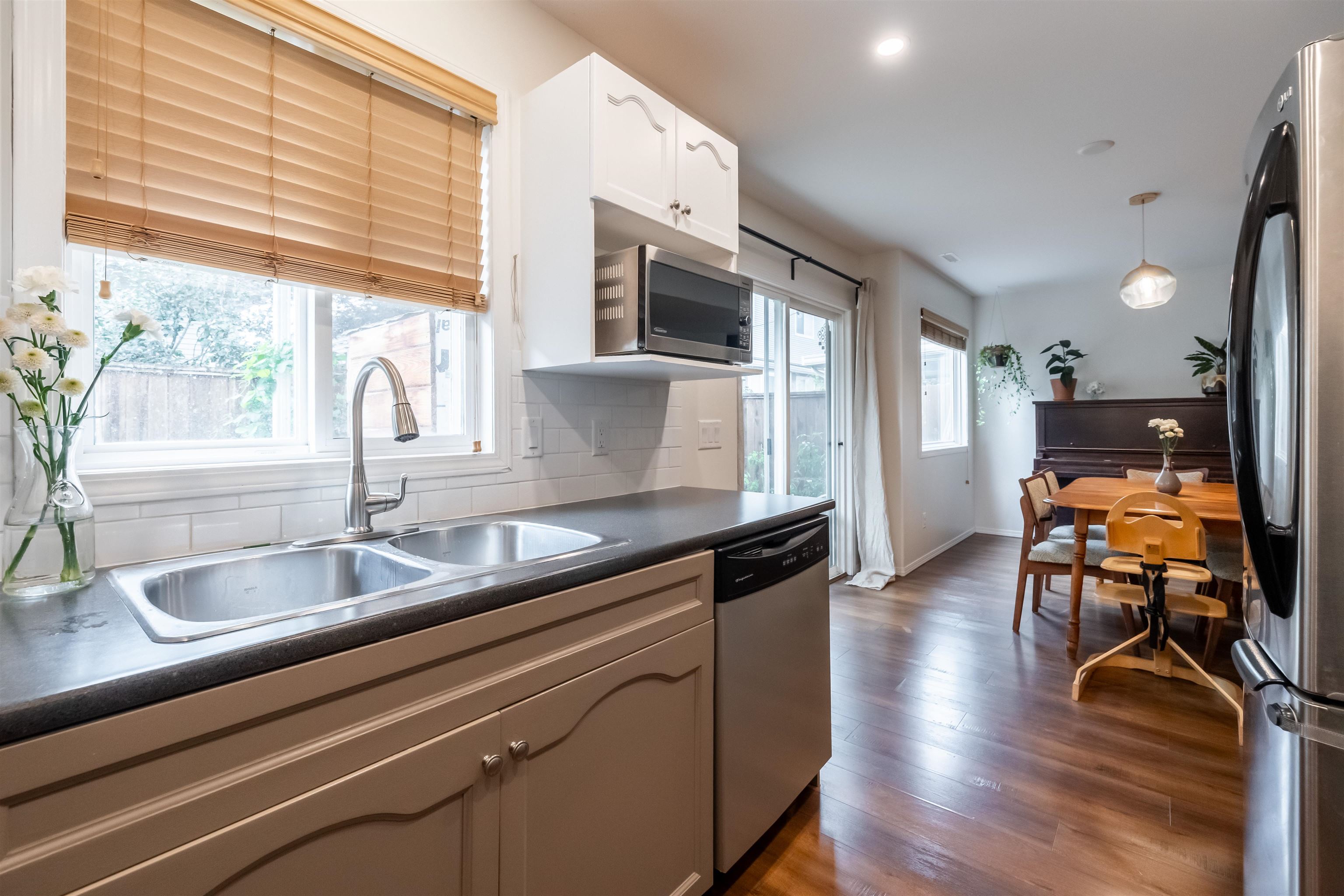 This stylish 3 bed, 2.5 bath townhome in Chilliwack offers 1,365 sqft of updated living space. The bright main level features upgraded floors, stainless steel appliances, modern backsplash, and added pot lights for a fresh feel. Upstairs, enjoy convenient laundry and a spacious primary retreat with a beautifully renovated 2024 ensuite. Interior paint (2018), hot water tank (2025), upgraded electrical with dimmers, and heat pump provide comfort and peace of mind. The private fenced, south facing yard is perf...
