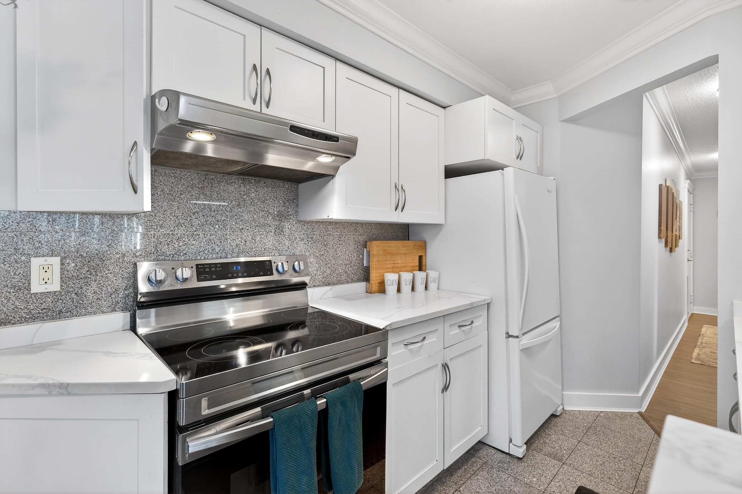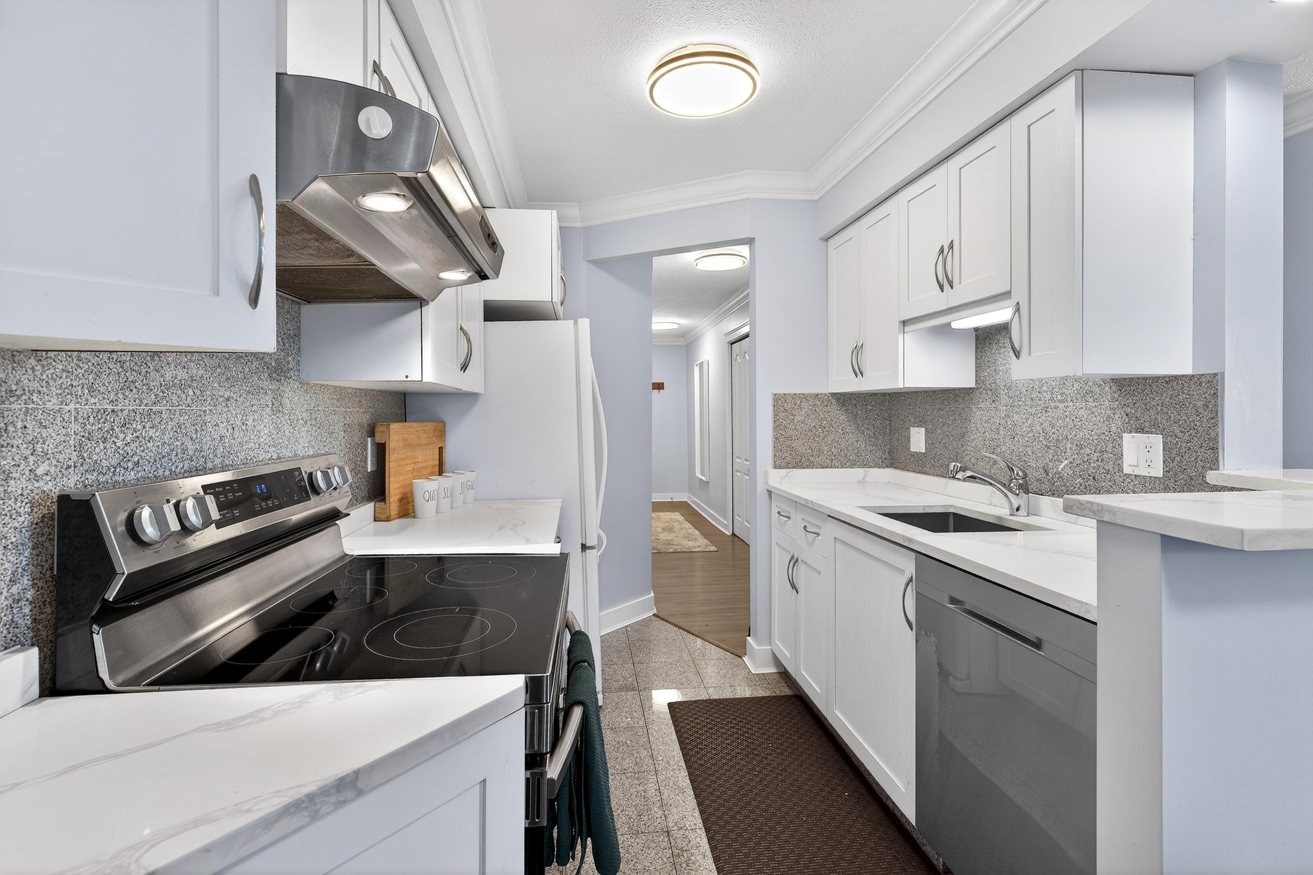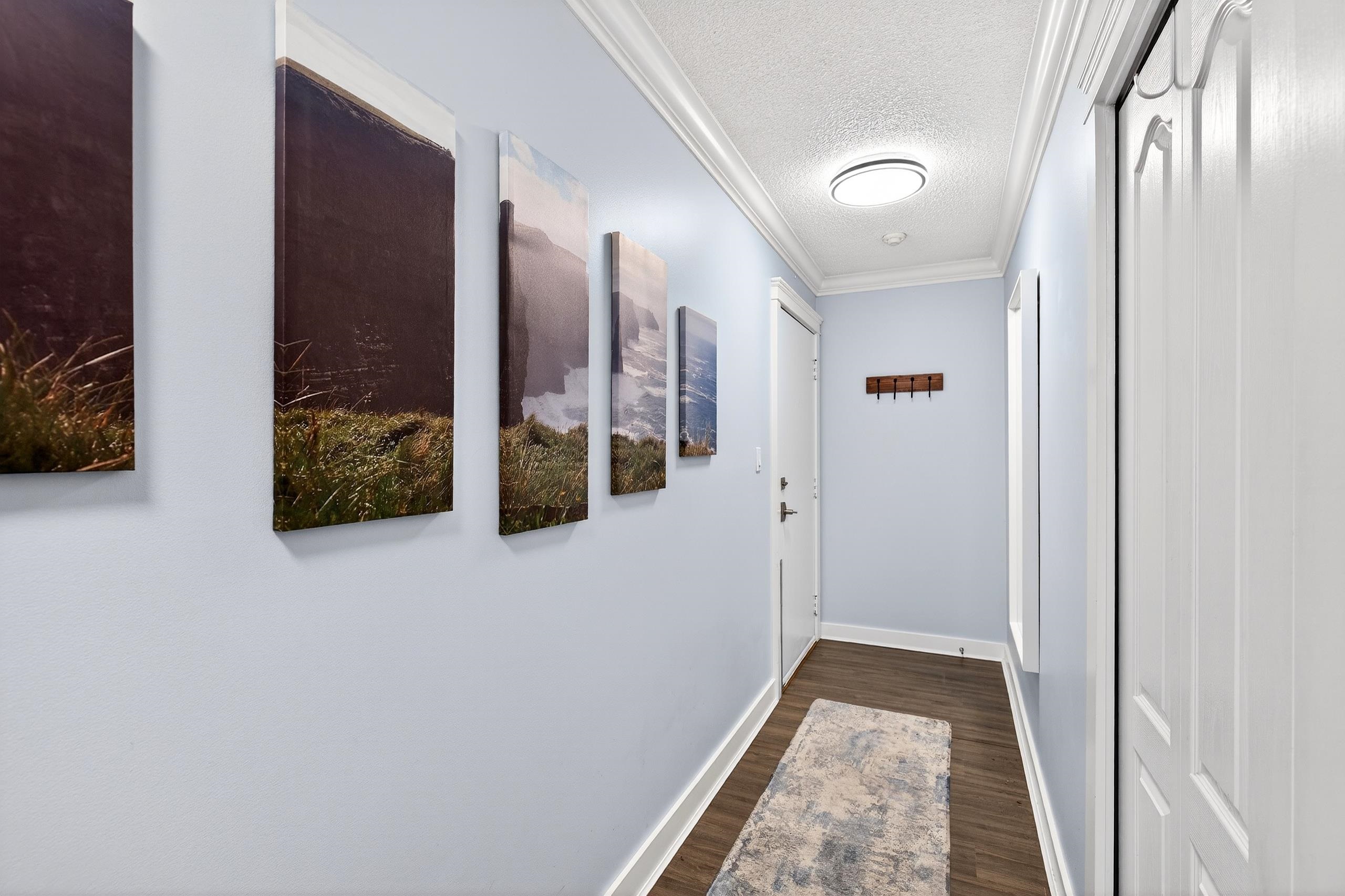 Beautiful top-floor corner unit overlooking the serene courtyard. This bright and spacious home features upgrades throughout, including updated kitchen cabinetry, elegant white quartz countertops, and updated flooring. Enjoy exceptional privacy and tranquility with two large private decks, perfect for relaxing or entertaining. Ideally located in the heart of central Coquitlam, just steps from the Evergreen SkyTrain Station, Aquatic Centre, Town Centre Park, Lafarge Lake, Douglas College, shopping, dining, a...