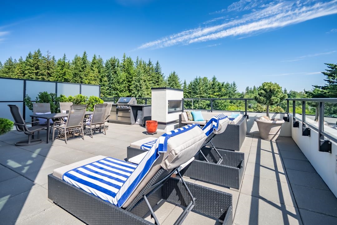 Mahogany at Mill Lake! Private northeast corner unit with spectacular Mt. Baker and partial lake views, plus beautiful sunsets. This home features hardwood floors, quartz countertops, geothermal heating & A/C, floor-to-ceiling windows, custom built-ins, and an imported tile feature gas fireplace. Enjoy over 650 sq ft of outdoor living with a built-in gas BBQ, two-way outdoor fireplace, and a second covered BBQ area—perfect for entertaining. Double enclosed garage and private storage locker included. Resort-...