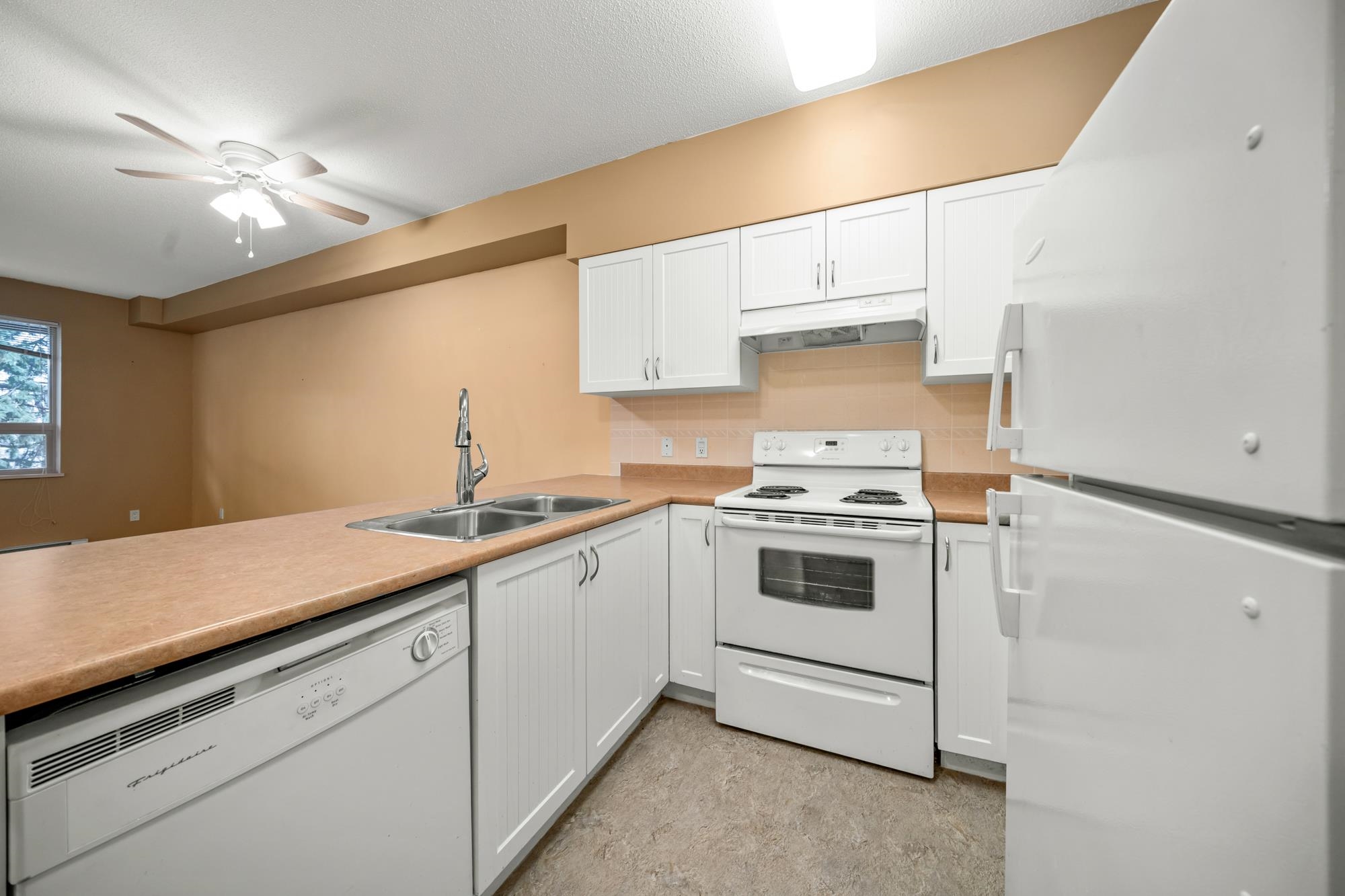 LOWEST PRICE IN THE BUILDING! Welcome to Fleetwood Gardens - 55+ Adult Oriented Complex in Quiet Prime Location! Modern 1 Bed, 1 Bath Condo with 696 sqft of open-concept living! Big Windows offers NATURAL LIGHT throughout the entire living space, sleek kitchen, in-suite laundry & large bathroom with walk-in shower. Enjoy having your coffee or sipping a glass of wine on your 125 sqft private balcony! Fleetwood Gardens offers Residents an amenities room, exercise room, office space & rec rooms to hold gather...