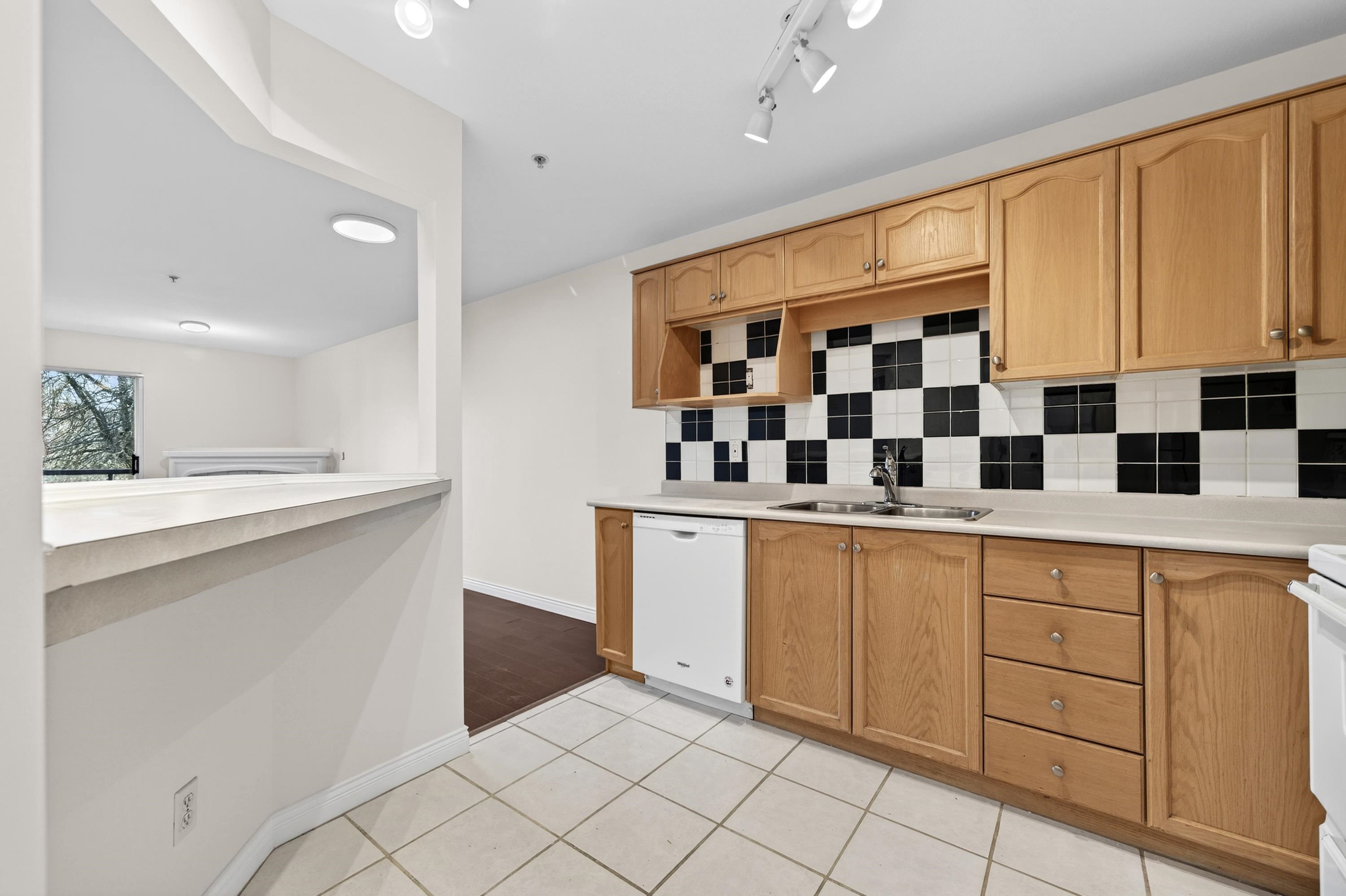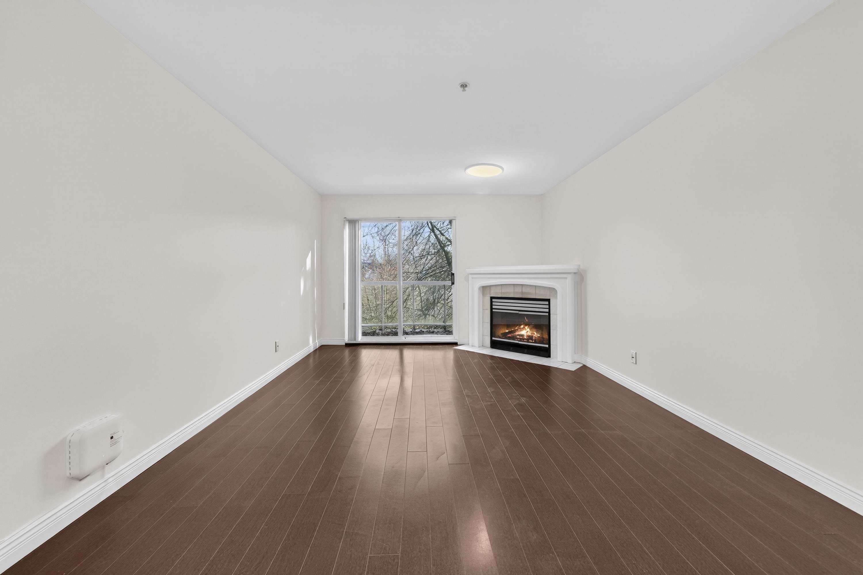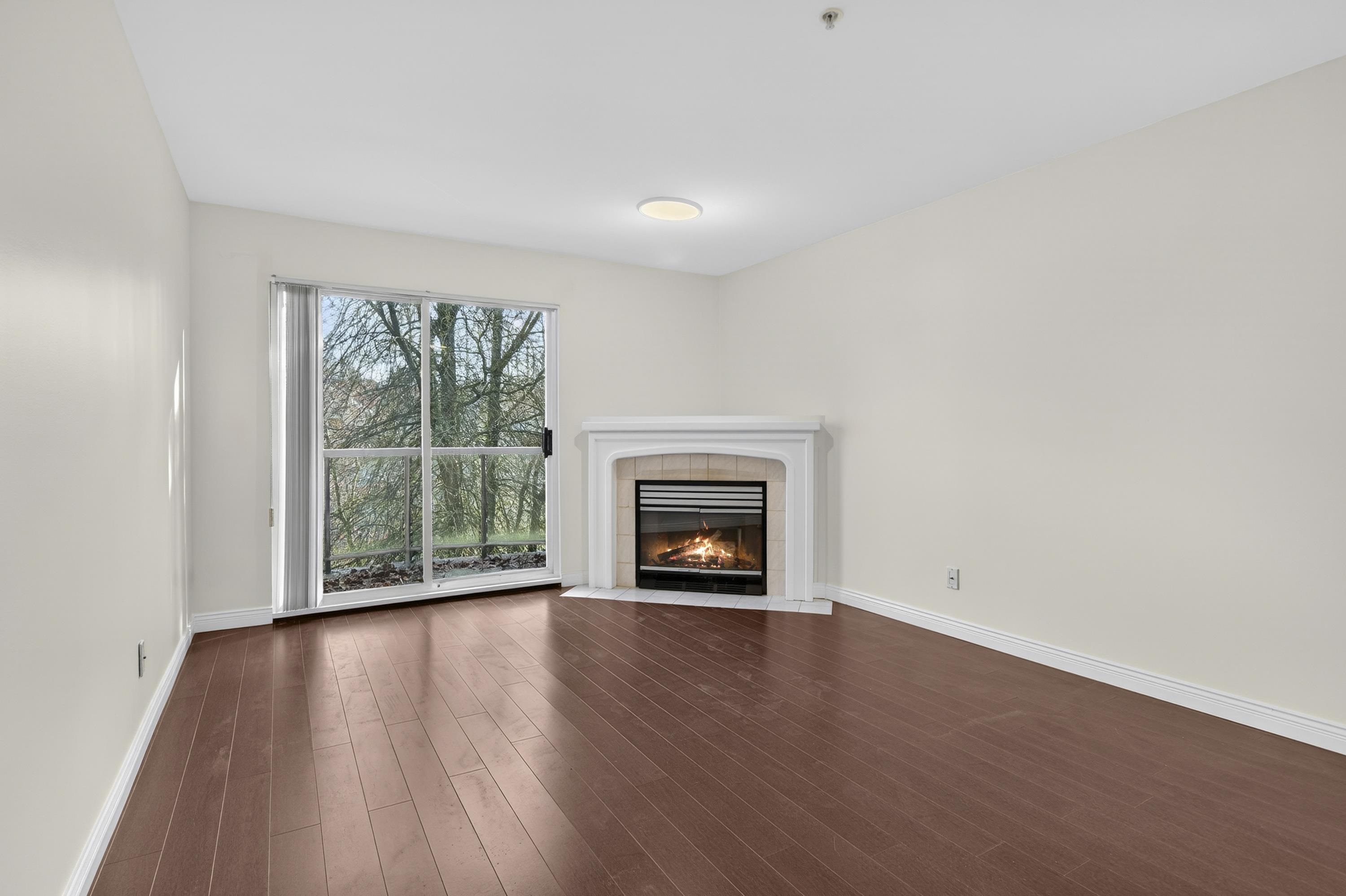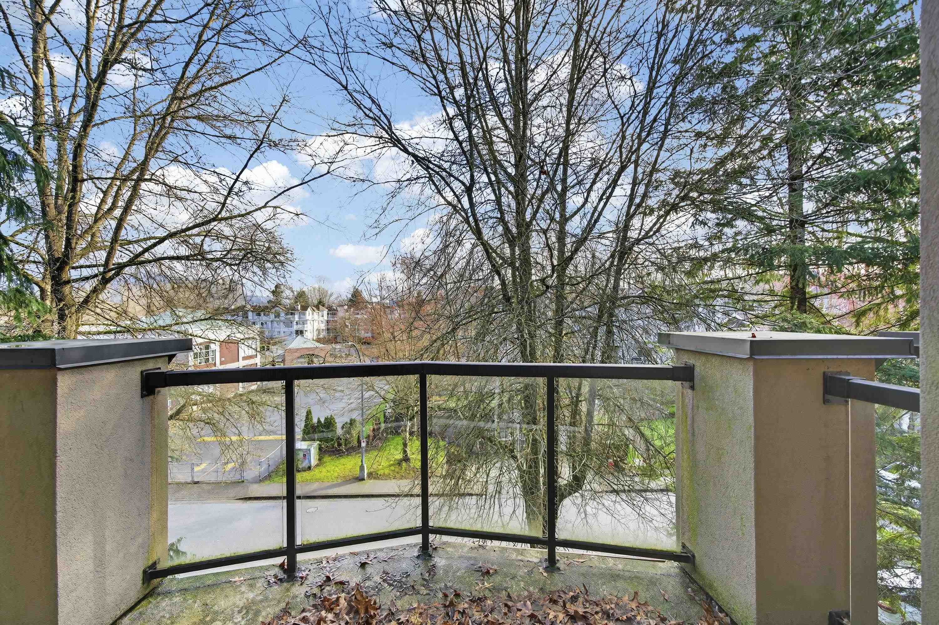Bright Top-Floor 1-Bdrm Retreat! East-facing & full of natural light, this home combines comfort w/ convenience. The generous kitchen has ample storage, a handy pass-through & room for a bistro table. Living area features a corner gas f/p & opens to a sunny balcony framed by mature trees-perfect for morning coffee. King-sized bdrm includes W/I closet & ensuite access. Sought-after bldg is fully rain-screened & ideally located: steps to shops, dining & services in downtown PoCo, w/ Coquitlam River trails out...
