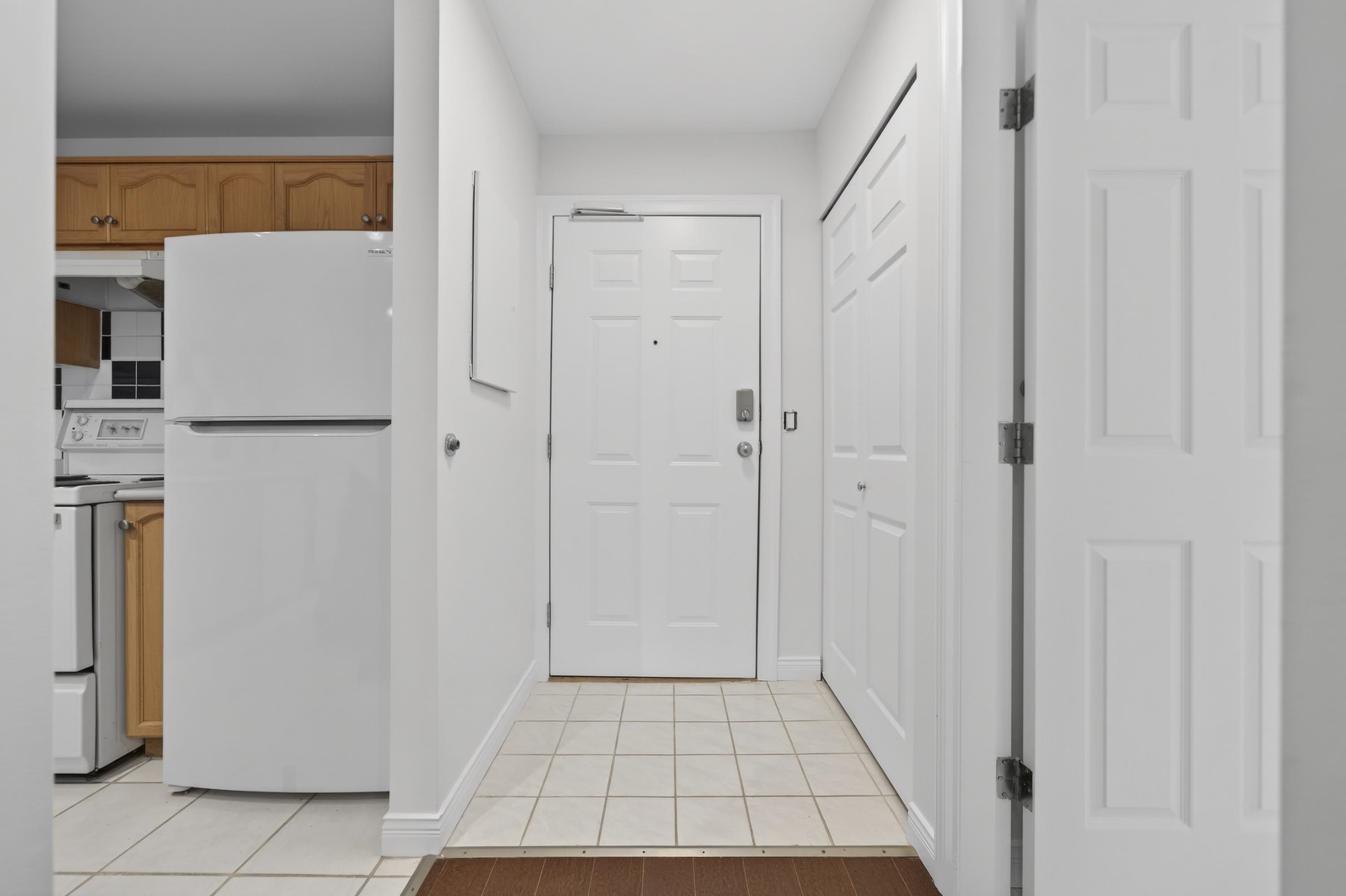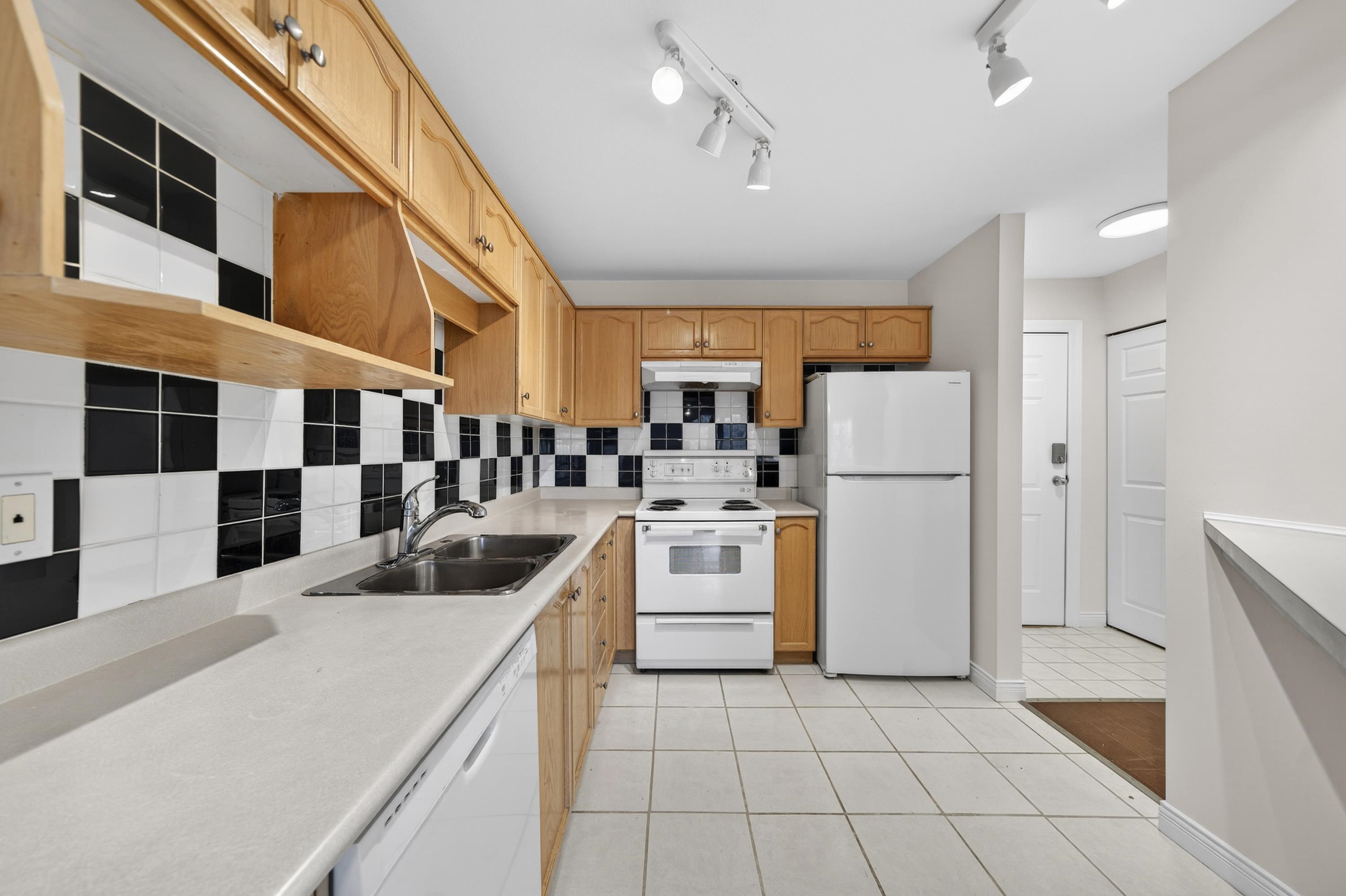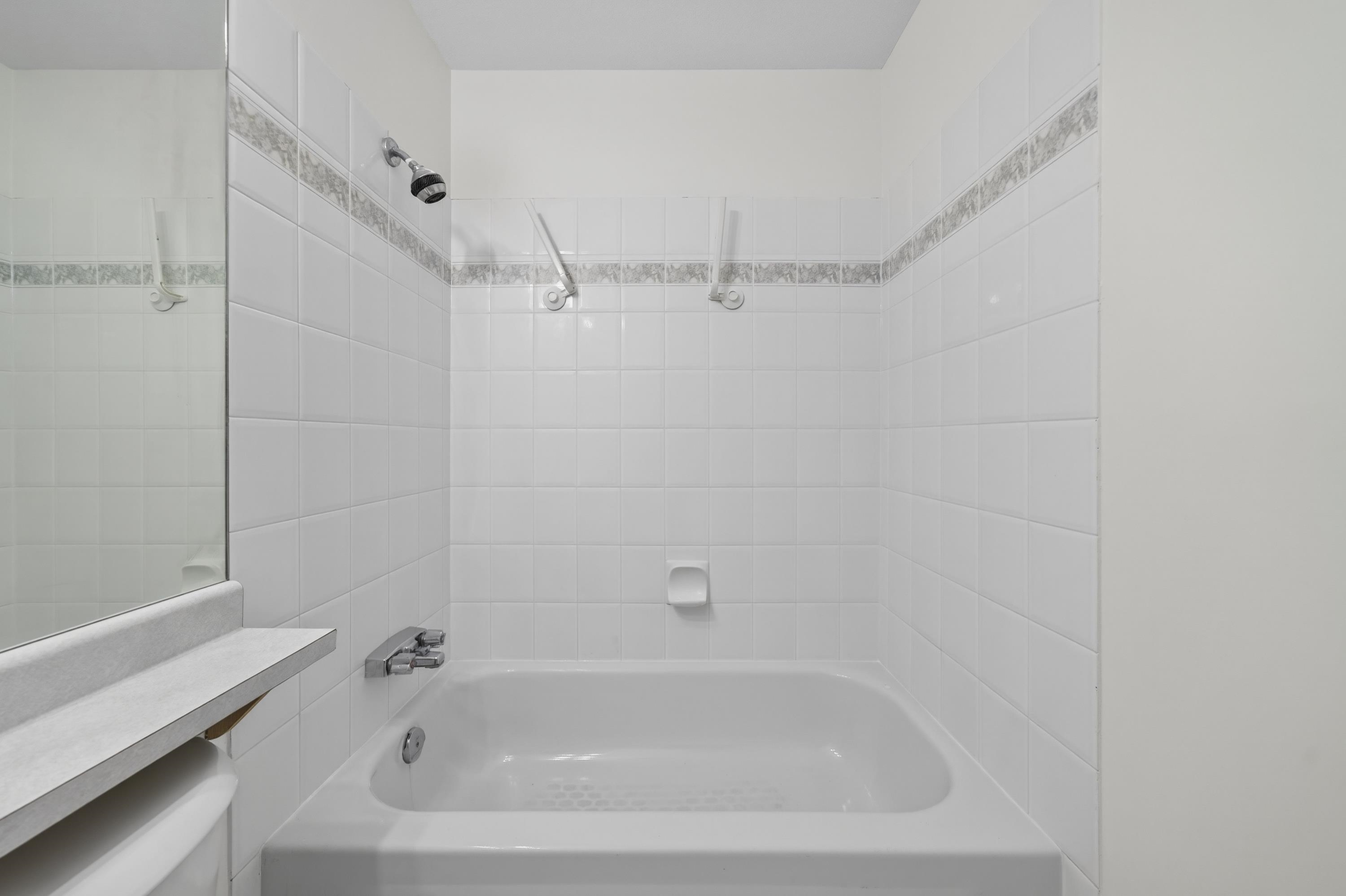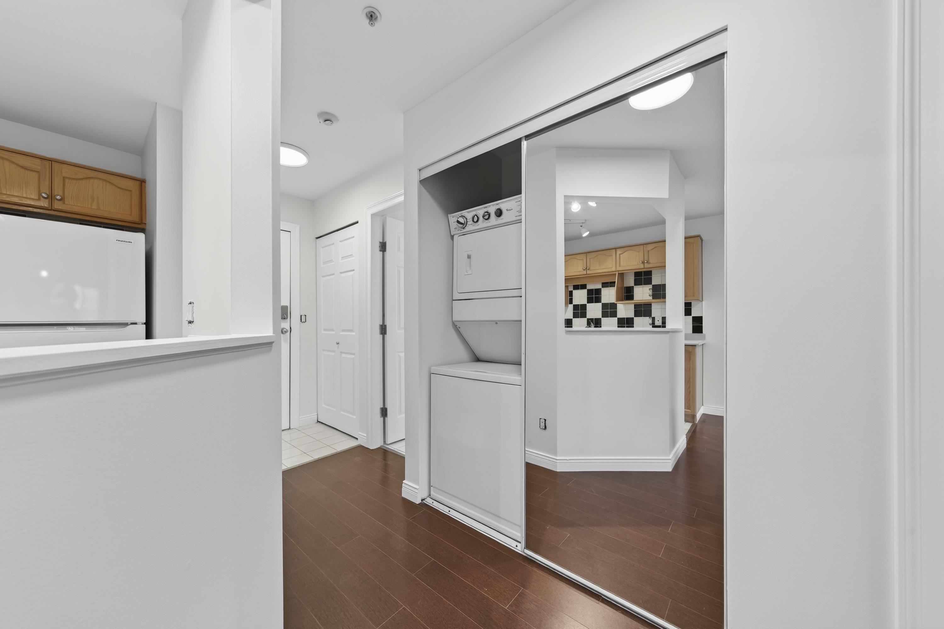 Bright Top-Floor 1-Bdrm Retreat! East-facing & full of natural light, this home combines comfort w/ convenience. The generous kitchen has ample storage, a handy pass-through & room for a bistro table. Living area features a corner gas f/p & opens to a sunny balcony framed by mature trees-perfect for morning coffee. King-sized bdrm includes W/I closet & ensuite access. Sought-after bldg is fully rain-screened & ideally located: steps to shops, dining & services in downtown PoCo, w/ Coquitlam River trails out...