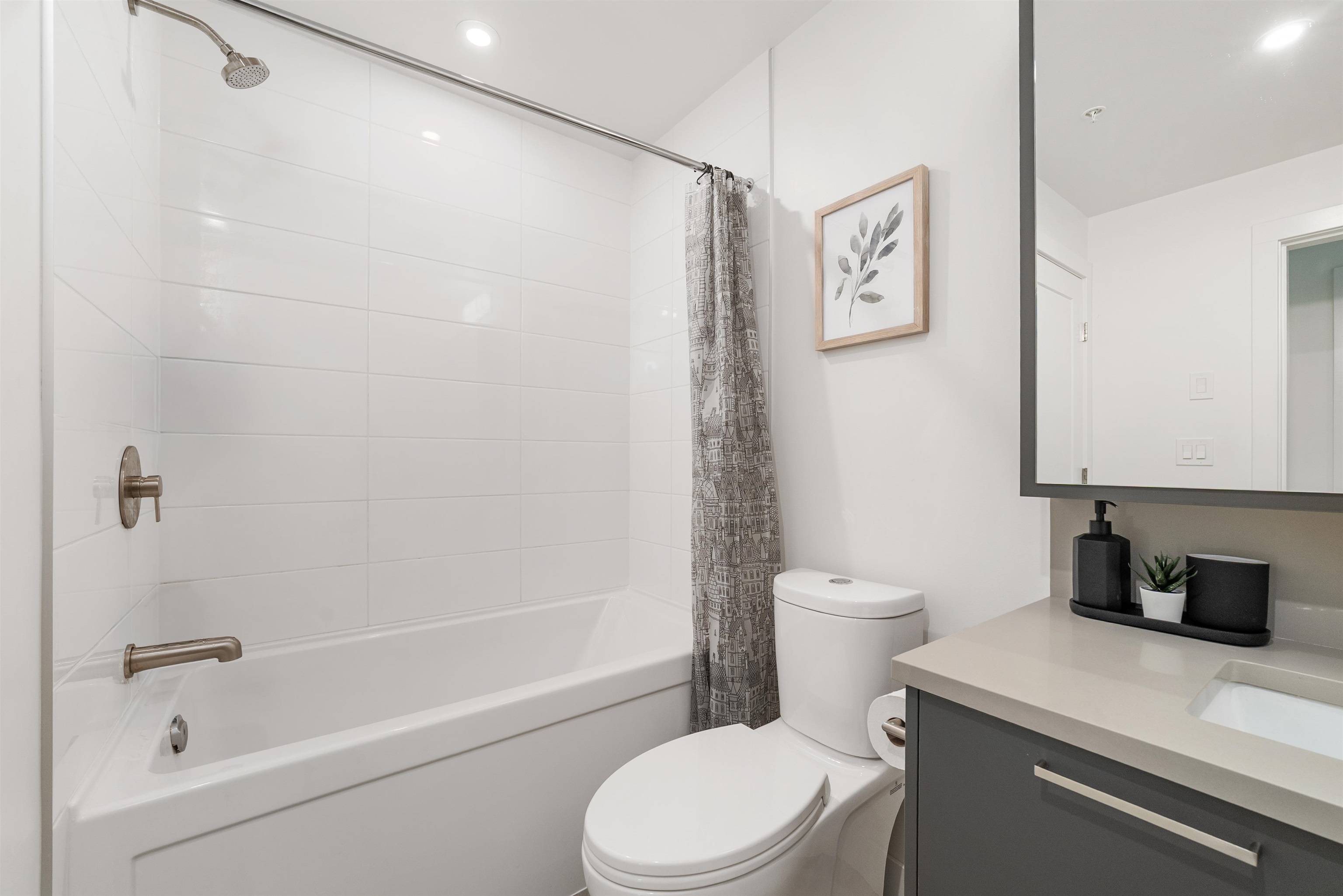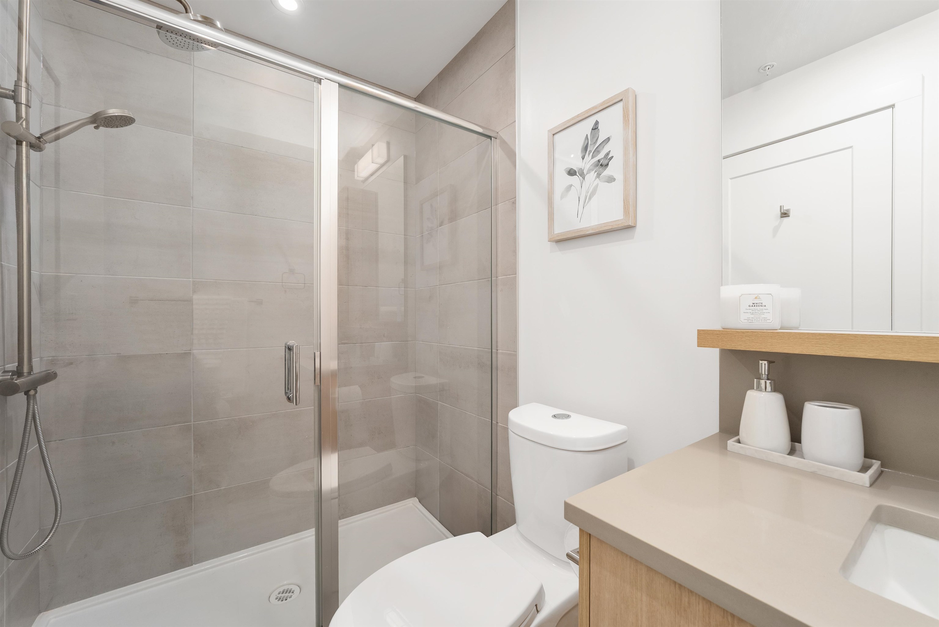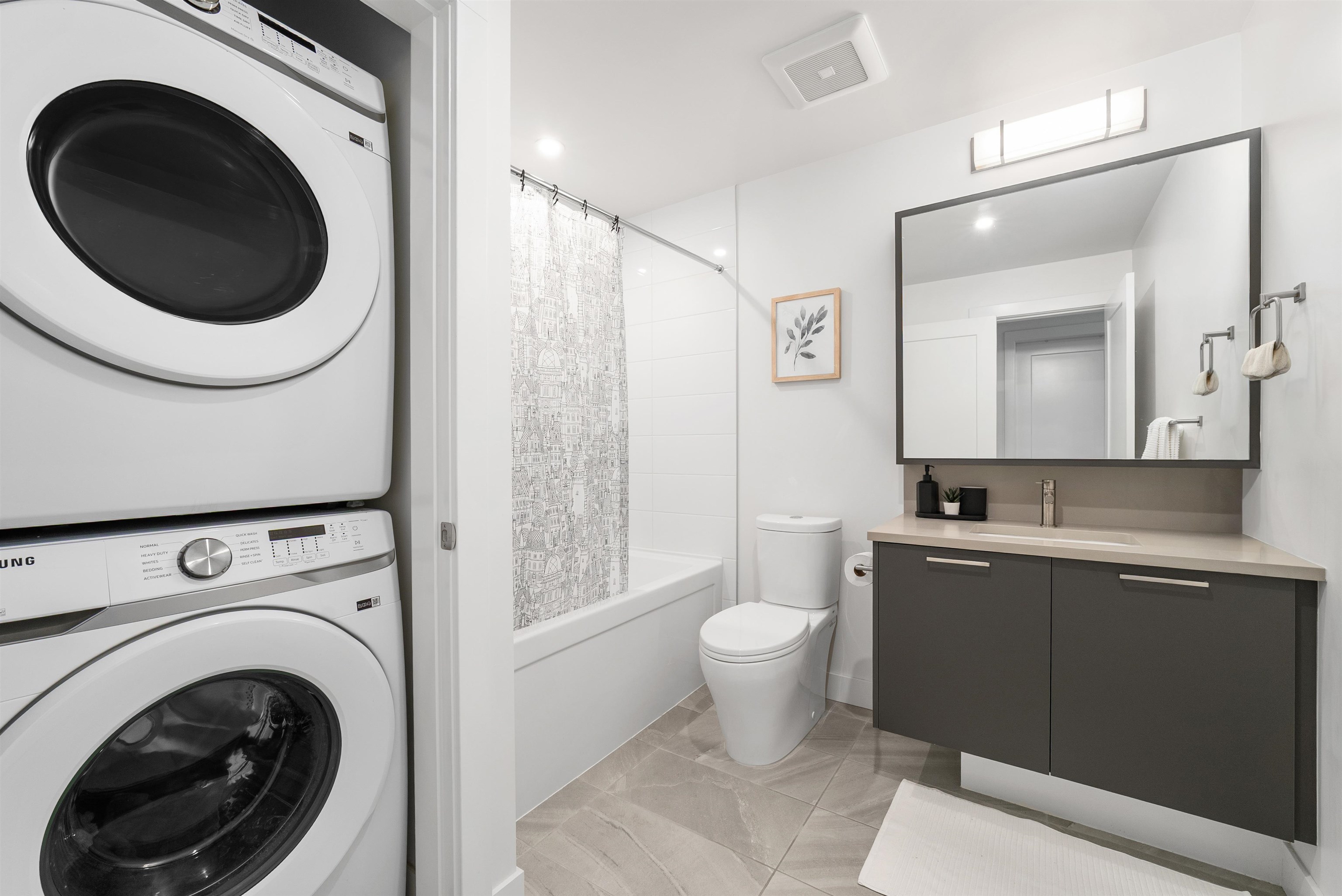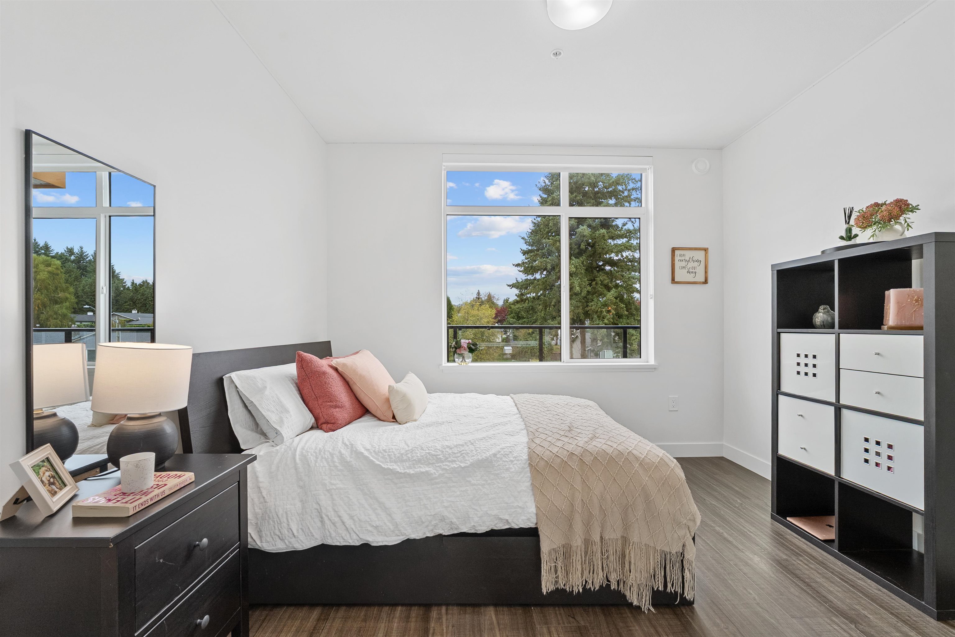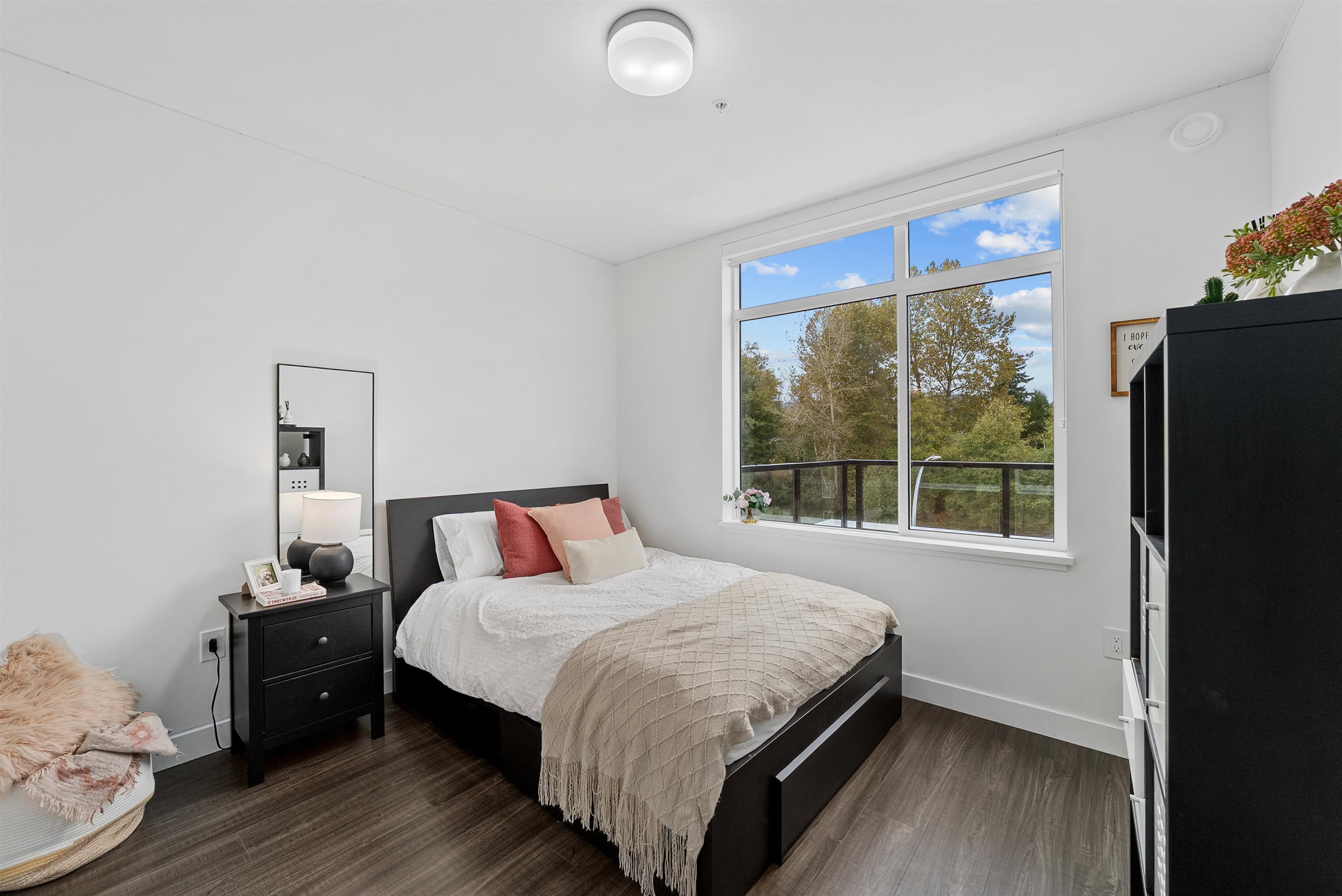 LIKE NEW 2 BEDROOM + DEN at WREN AND RAVEN. This TOP FLOOR, CORNER HOME offers a fantastic, modern, open-concept and BRIGHT layout. The spacious kitchen features S+S appliances, quartz countertops and breakfast bar. The primary bedroom is BIG, with walk through closet leading to a beautifully finished ensuite, while both bathrooms are generously sized with great storage. The den provides PERFECT flexibility for a home office/nursery or guest space. Step out and entertain on the HUGE 250sqft patio with peeki...