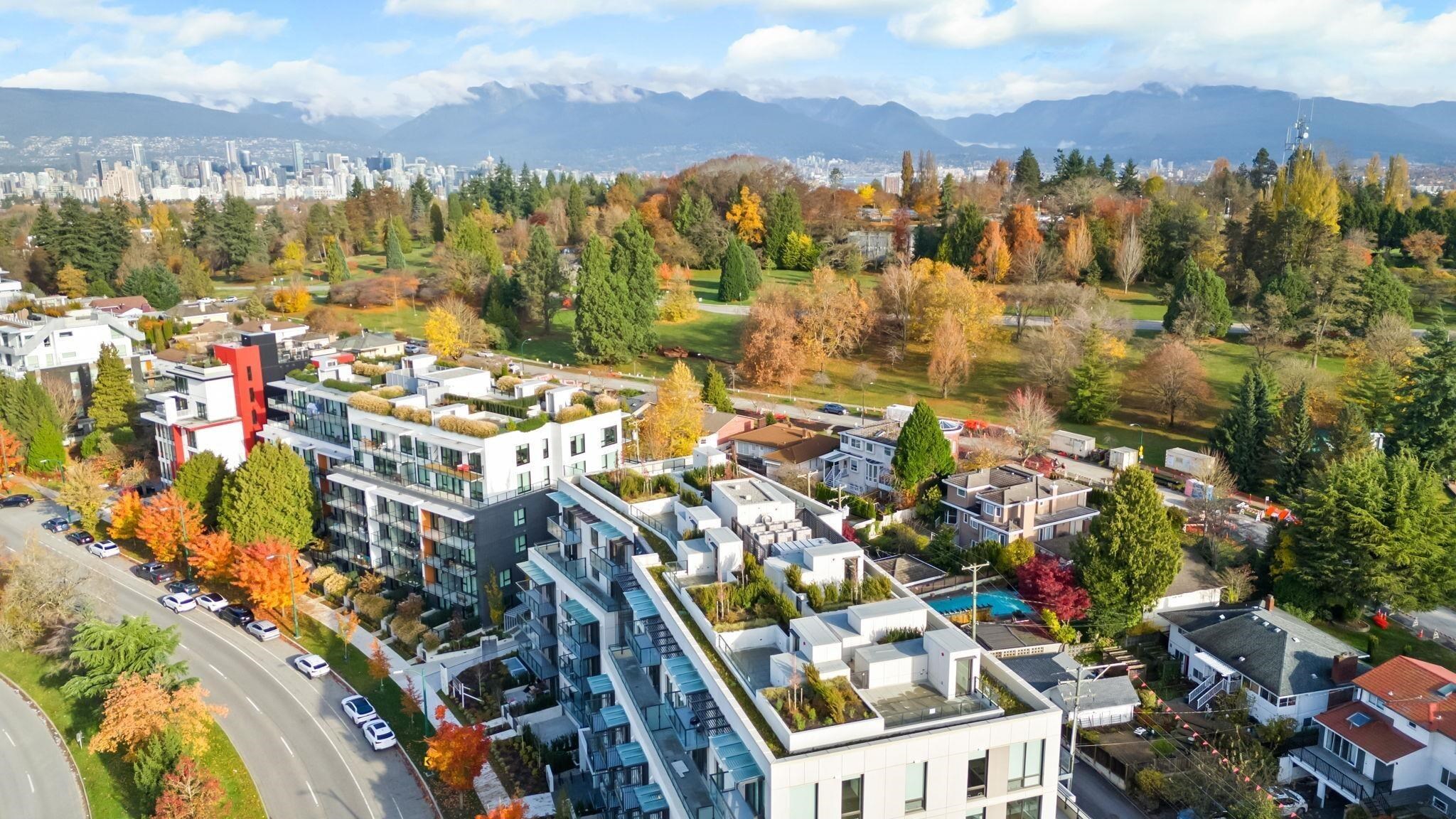 "Lina at QE Park" Located in Vancouver's popular Cambie Corridor, a 6-storey concrete building next to Queen Elizabeth Park. This 1 bed 1 bath+Flex unit features a spacious layout. Natural Oak hardwood flooring, Caeserstone kitchen countertops & backsplash, Miele appliances, contemporary walk-through shower with quartz linear drain, large niche & Hansgrohe brushed nickel shower outlet. Central air conditioning. Private resident's lounge with a spacious patio for entertaining & special functions. Convenient ...