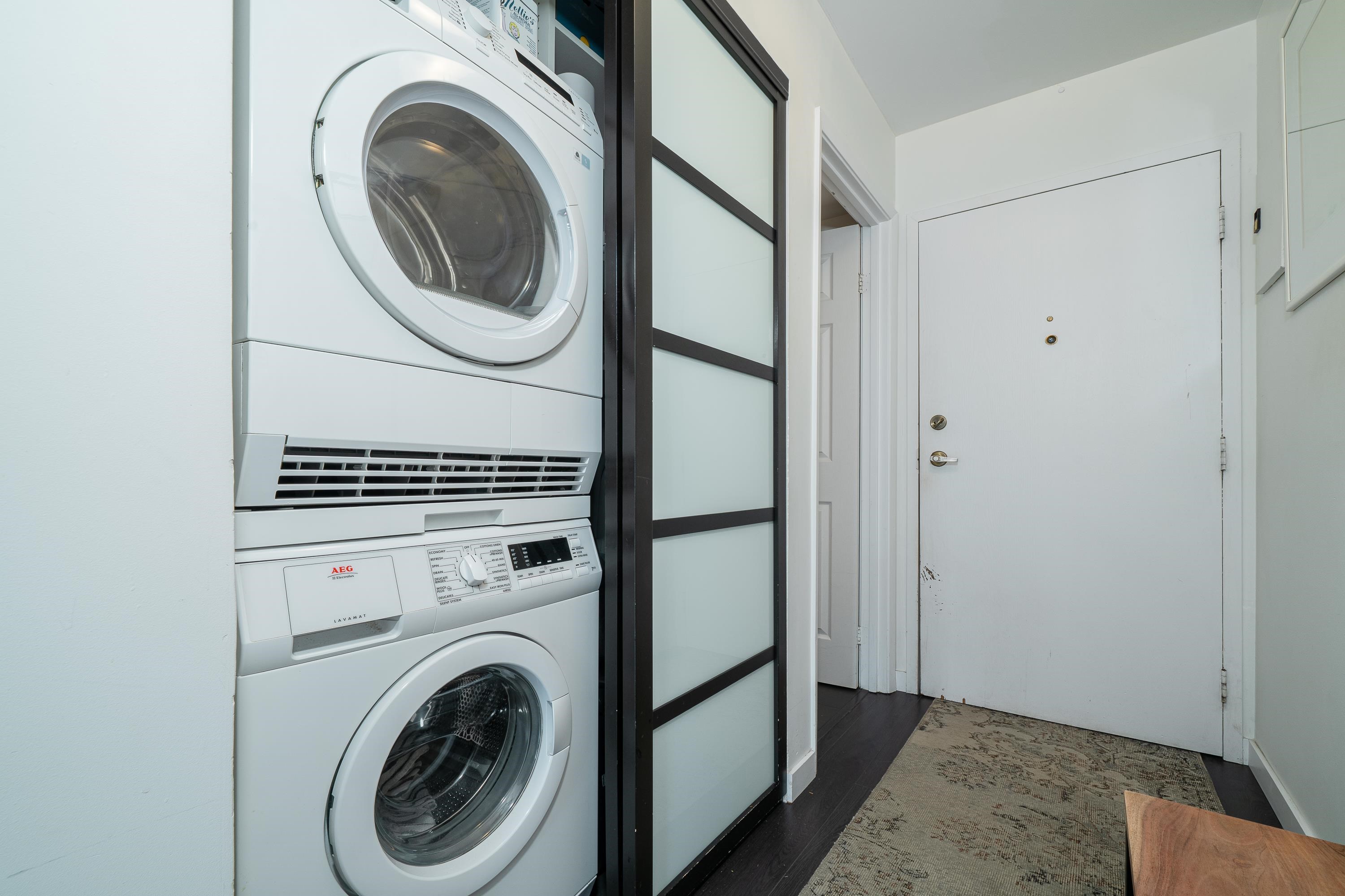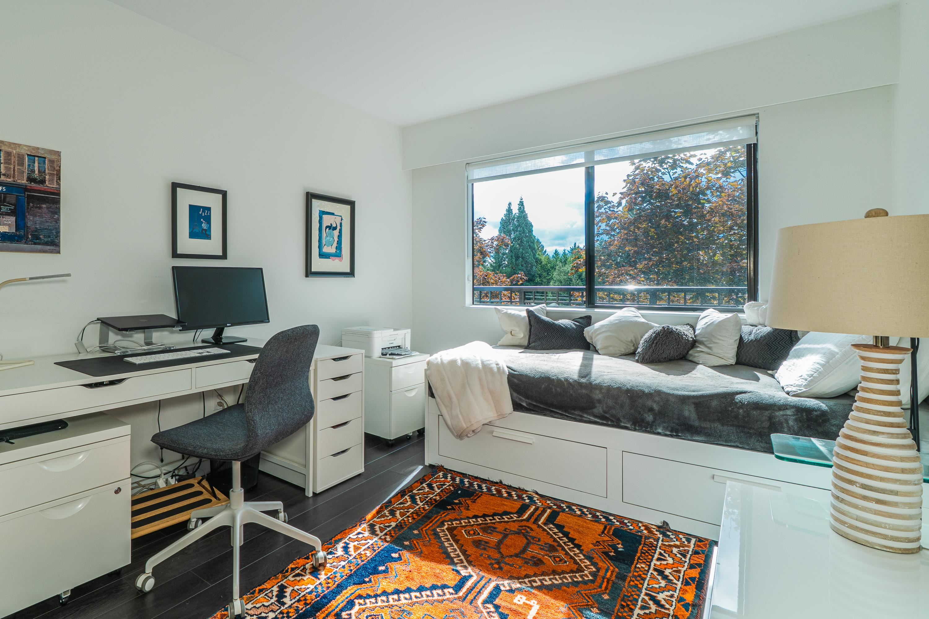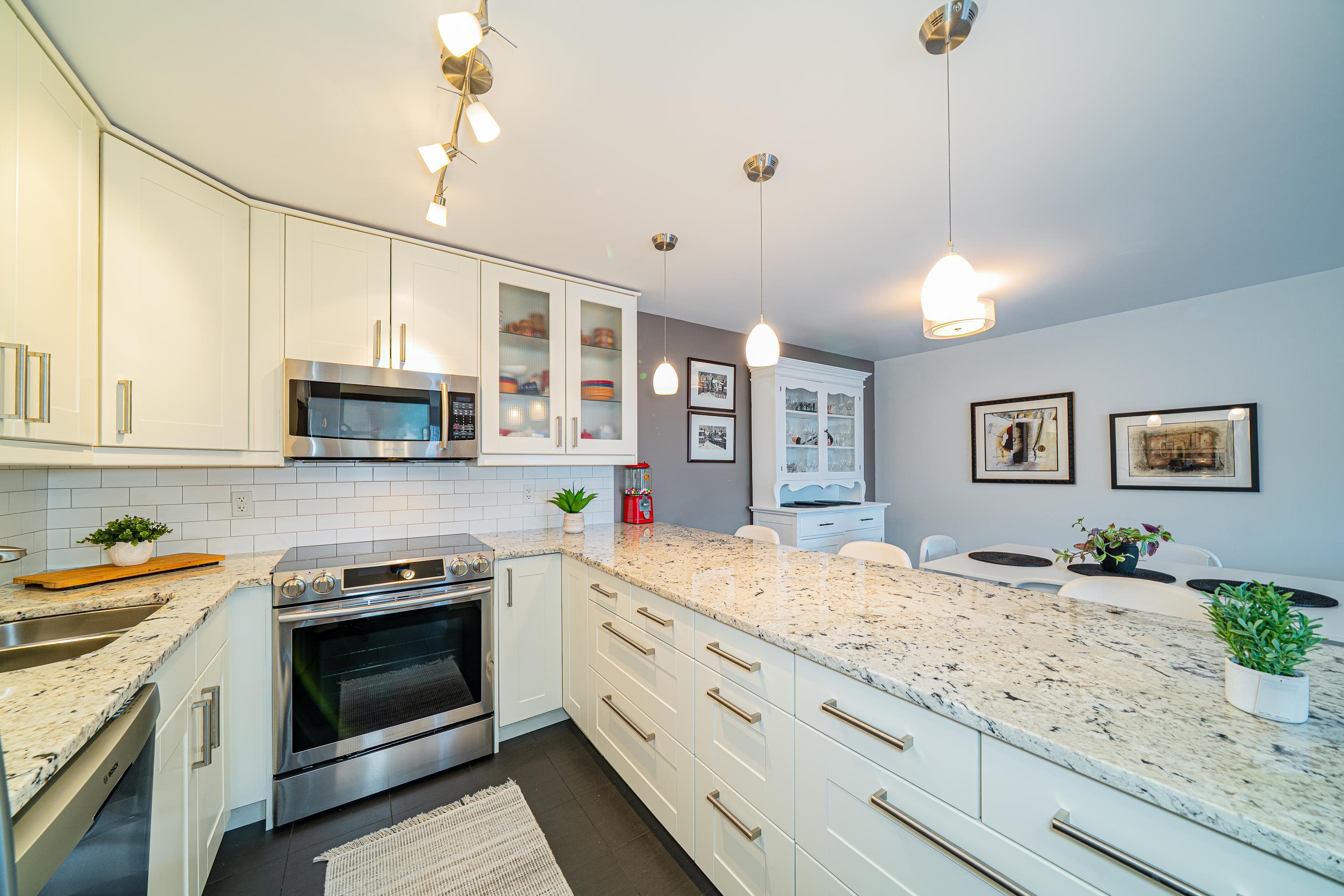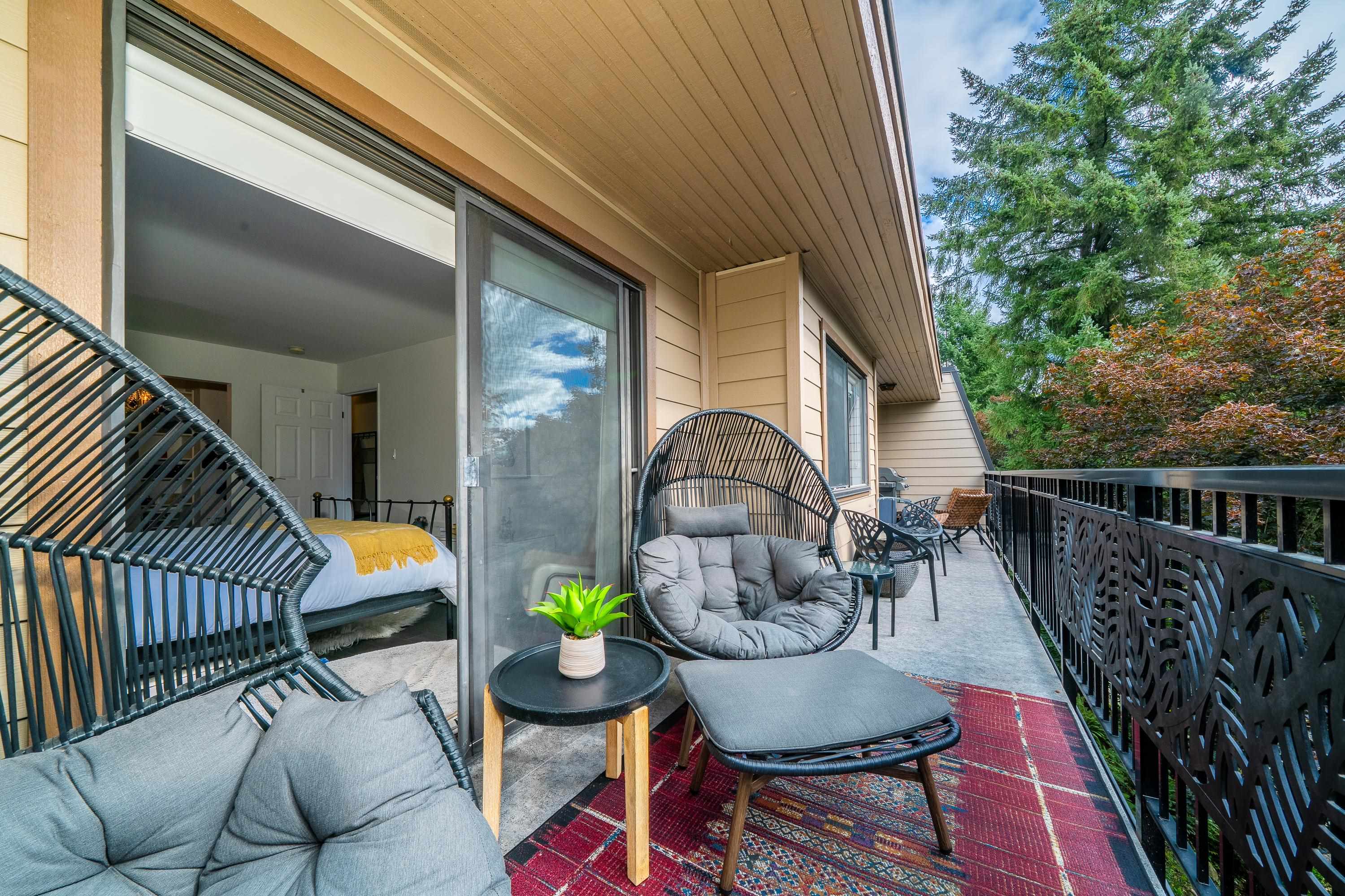 Welcome to your Lynn Valley dream home! This beautifully renovated, (with permits), south facing 1,042 sq ft penthouse is just steps from Lynn Valley trails. A bright, stylish suite where no detail has been overlooked — featuring open-concept living, a sleek updated kitchen, high end appliances, two full size, updated gorgeous bathrooms; inc walk-in shower, new flooring, walk-in closet in the primary, in-suite laundry, custom cabinetry. Enjoy your quiet, private outdoor patio, or if you're feeling sociable...
