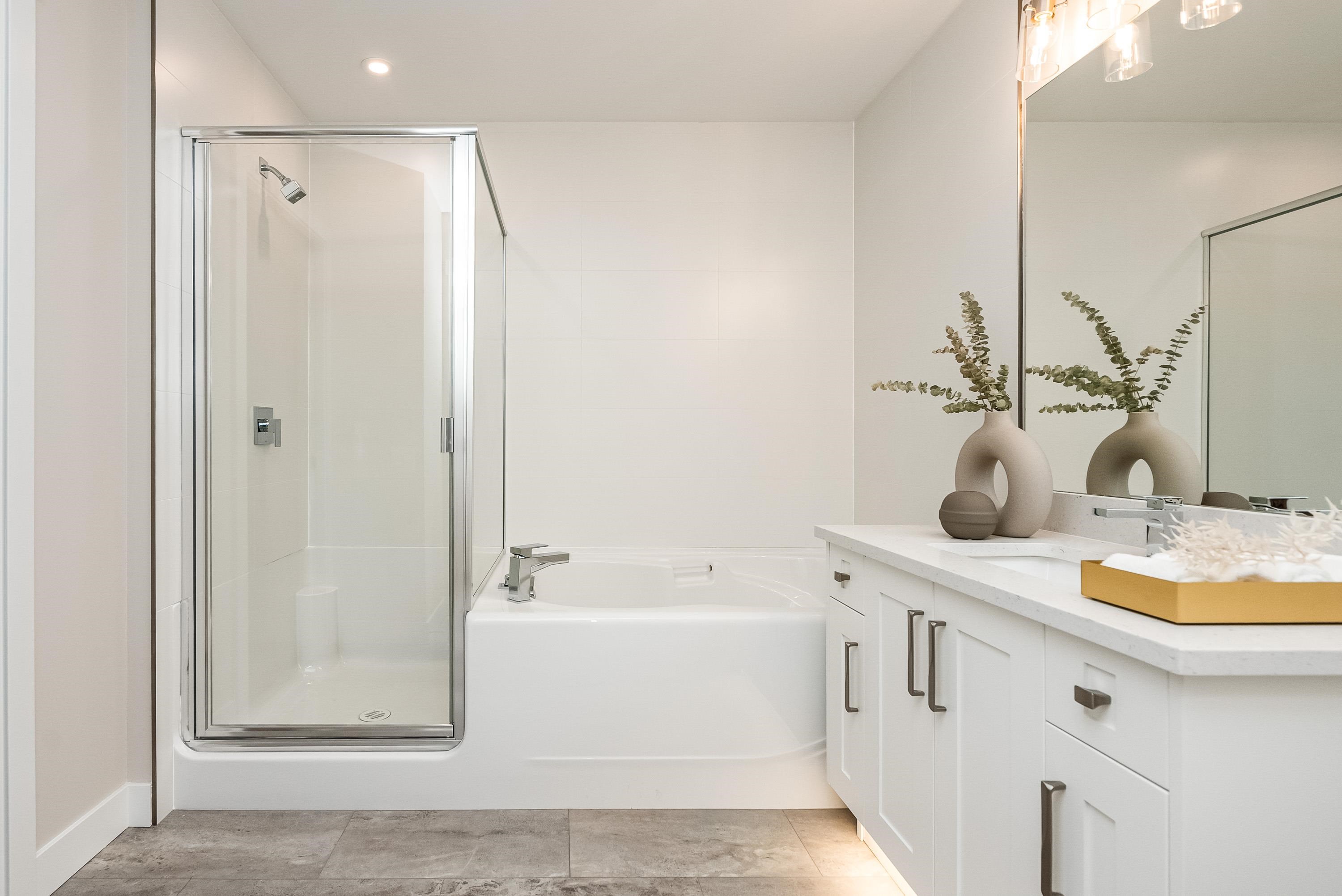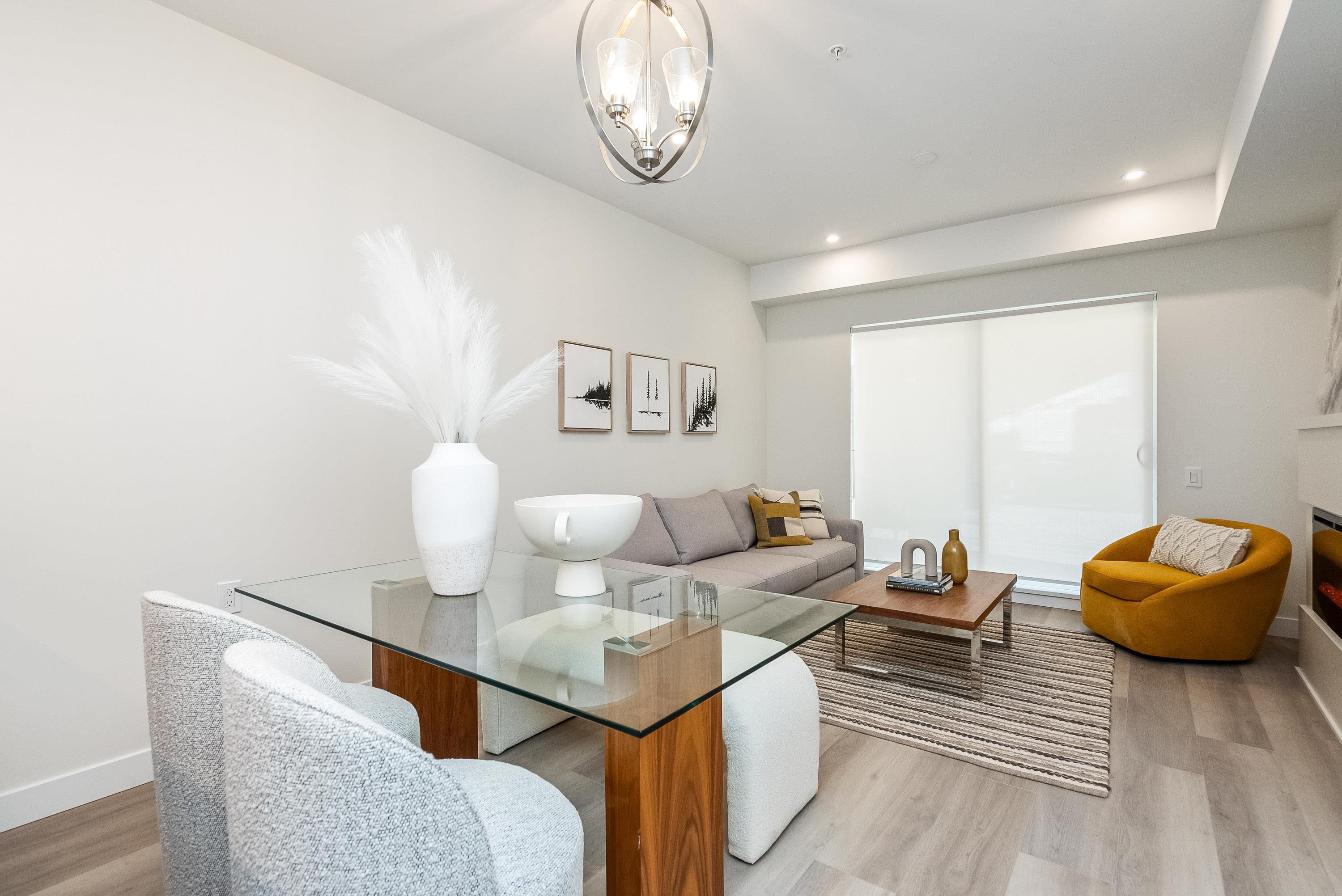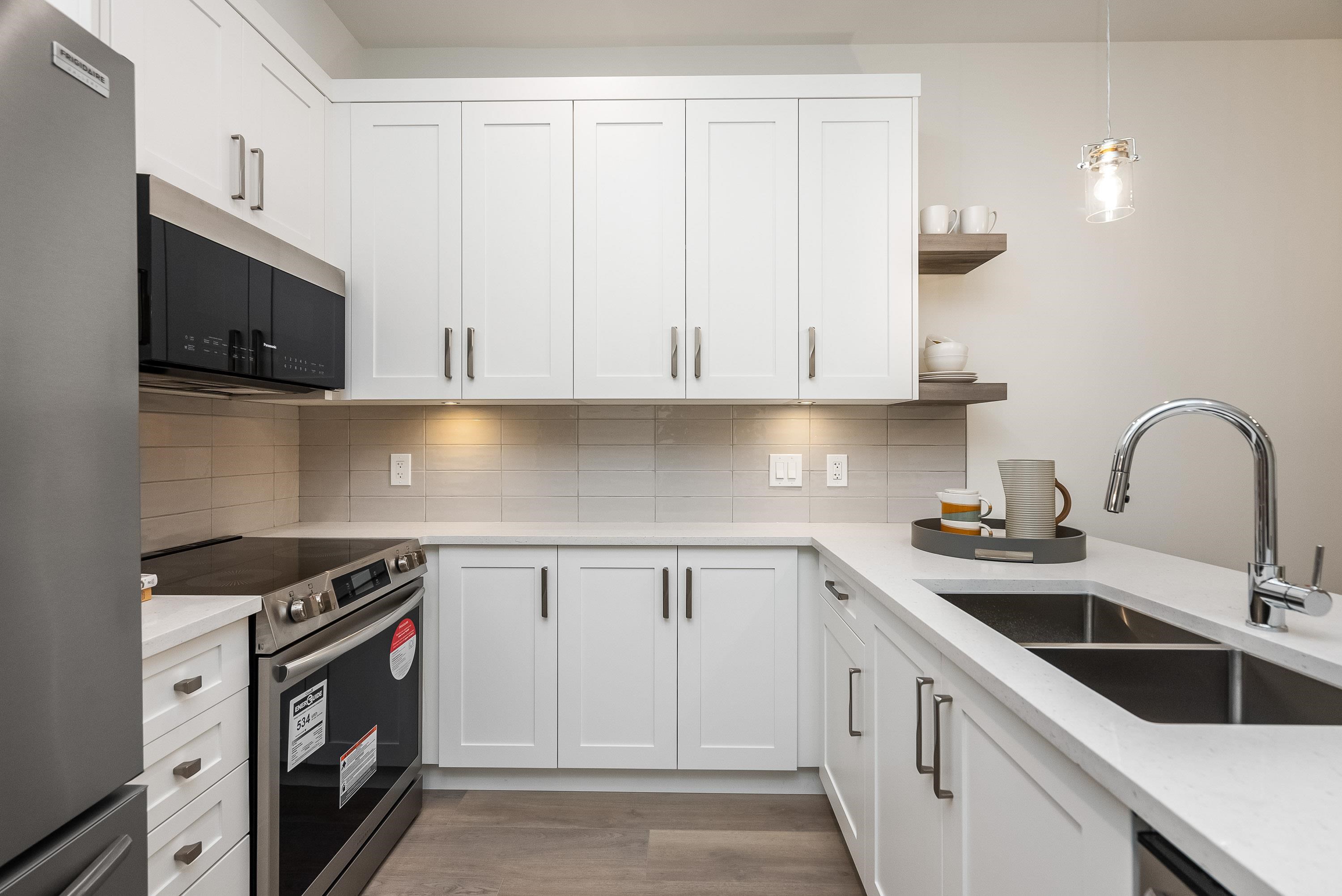 Chilliwack's best value condos are MOVE IN READY with 113 suites and 19 floor plans. No age restriction and pet friendly. Our best selling B1A plan features include 1 bedroom + a den, Air Cond, Quartz Counters, 6 quality Appliances, King Size Bedrooms, Wide plank scratch resistant flooring, LED lighting, Window Blinds, Screens, 9' Ceilings, Glass Solarium Deck Enclosure, Low strata fees, Fitness room, Pool Table, Ping Pong Table, Car wash and Vac, Storage, Extra parking and storage available, EV Car Charge ...