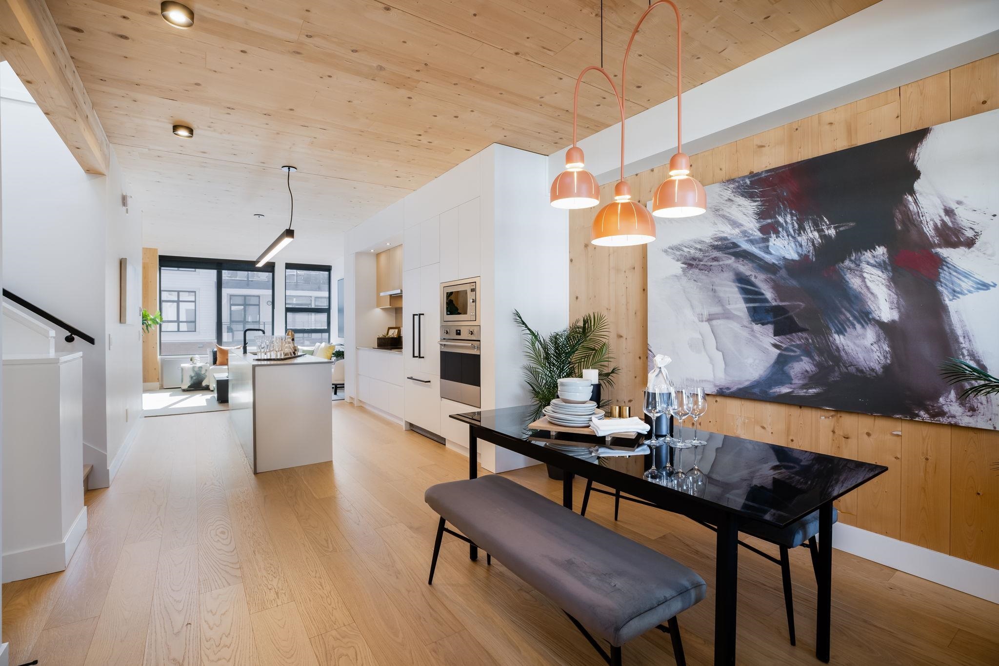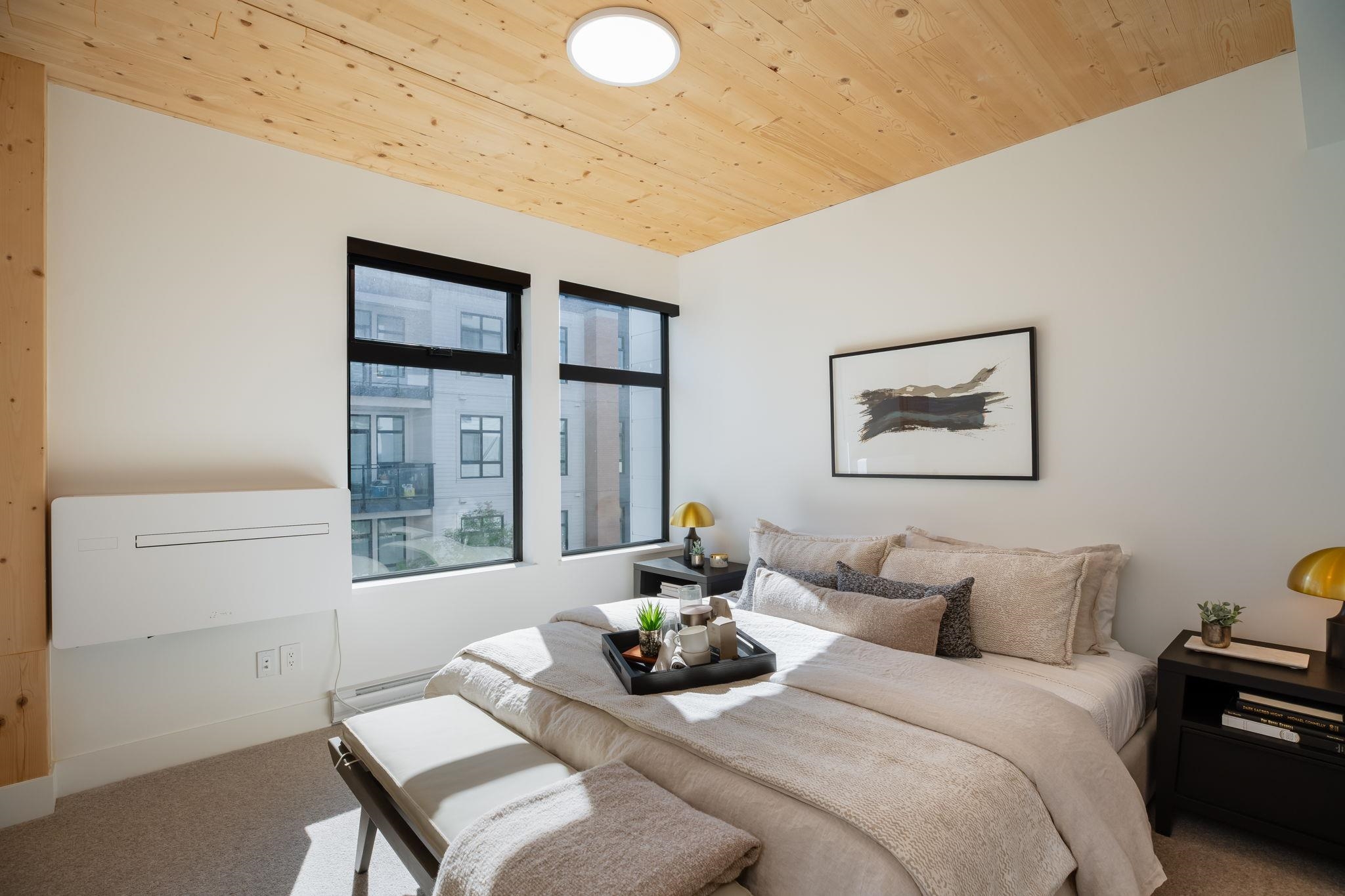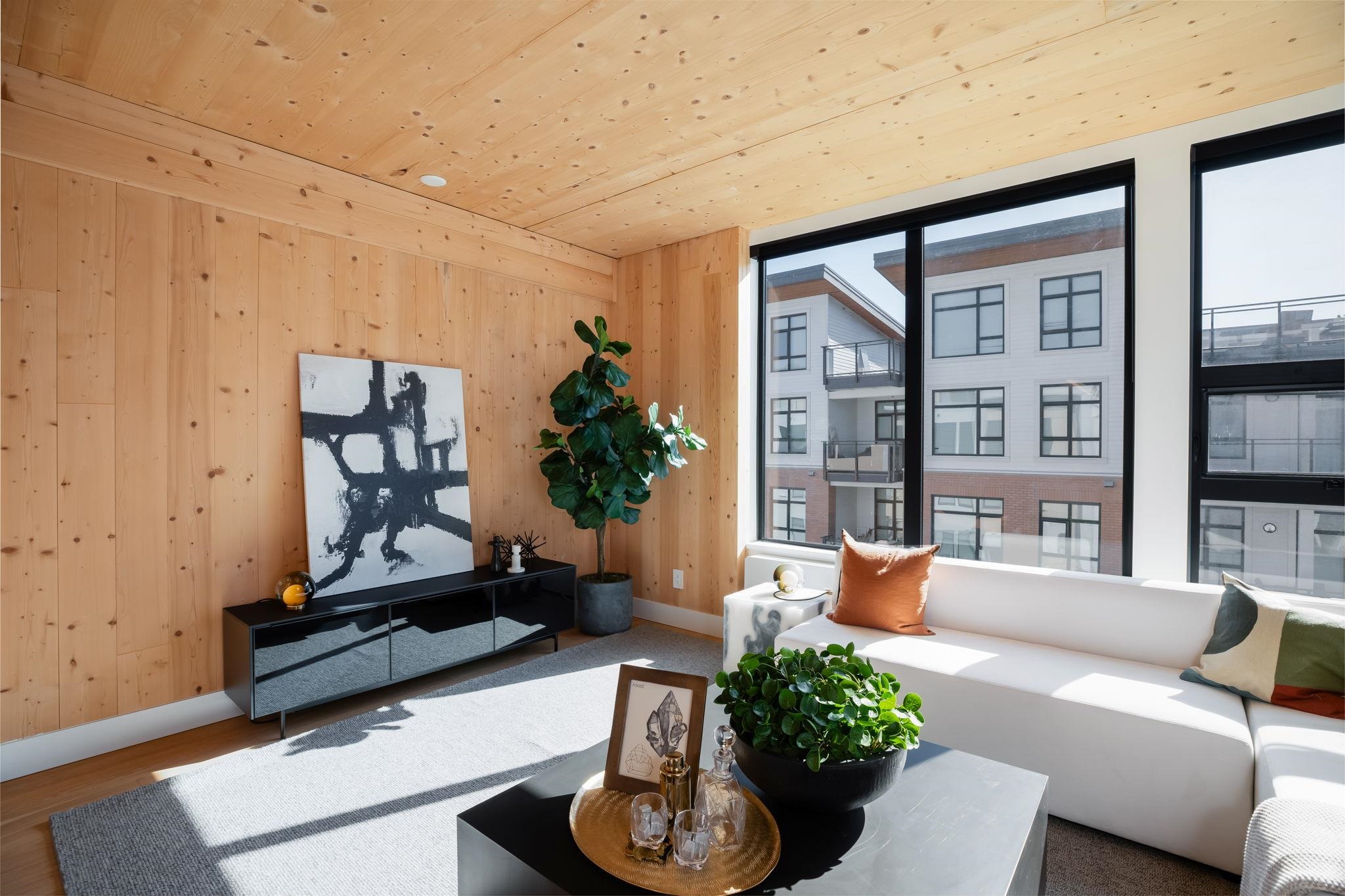 NEW PRICING & MOVE-IN READY! Designed for distinction, Timber House by Aragon is the final waterfront addition to Port Royal in New West. This 2-level, 2 bedroom, 2.5 bath, 1,380 SF Penthouse home offers a 325 SF roofdeck with outdoor kitchen & modern, high-design interiors with exposed CLT panels, wide-plank oak floors, A/C & more. Sleek kitchen w/ Fisher Paykel & Smeg appliances, quartz counters, matte black hardware, built-in pantry. Spa-inspired baths w/ heated floors, LED vanities, frameless glass show...