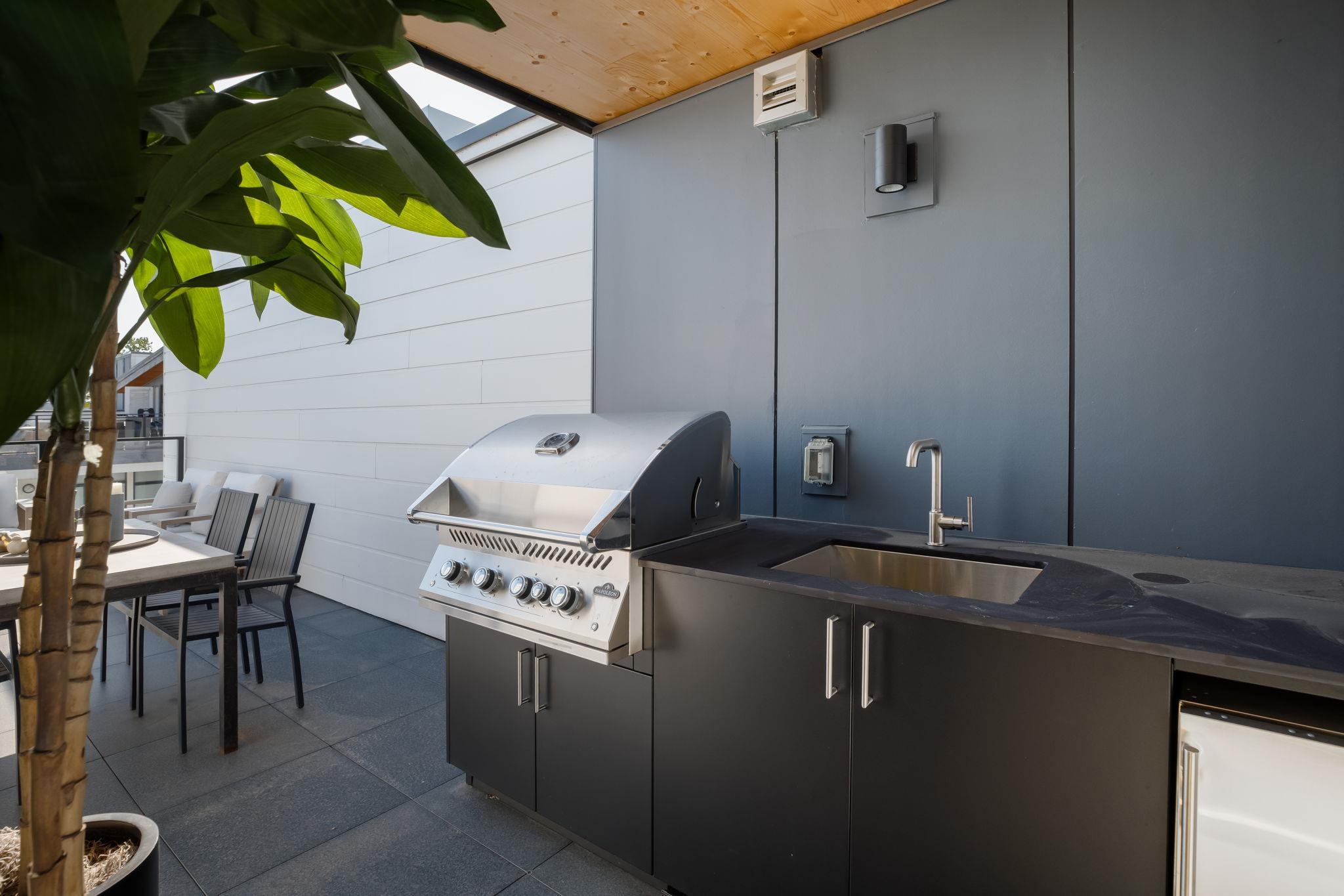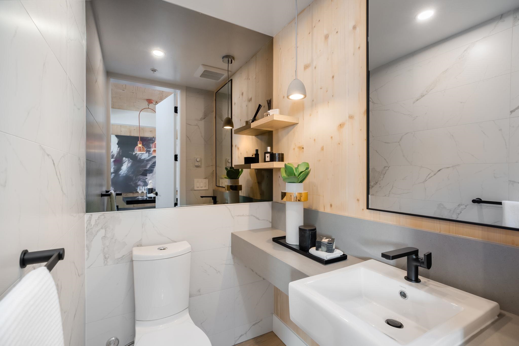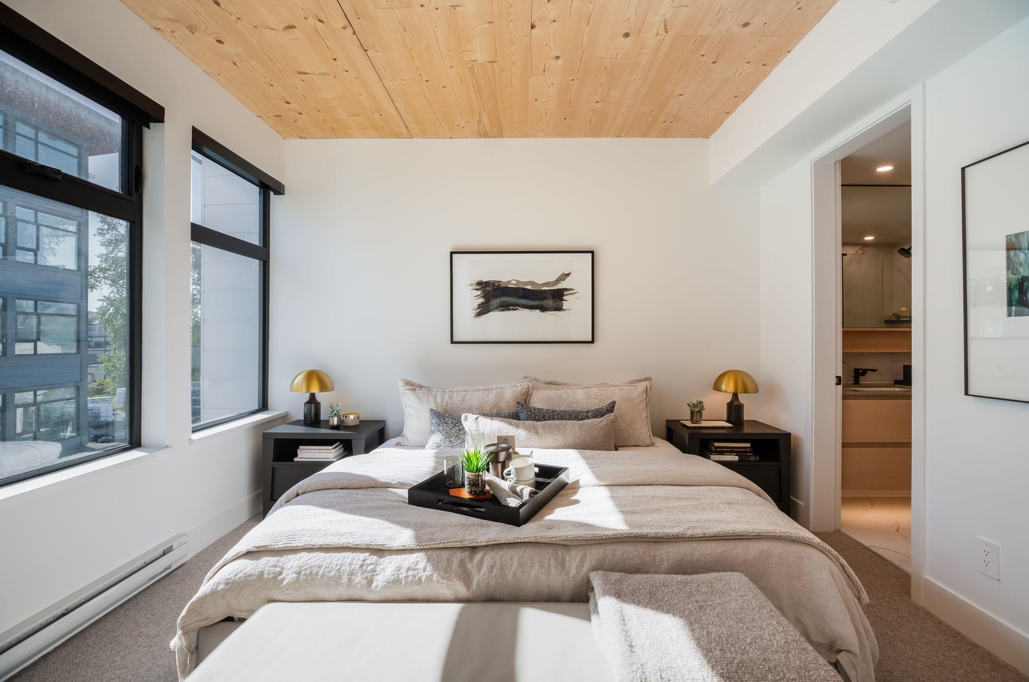 NEW PRICING & MOVE-IN READY! Designed for distinction, Timber House by Aragon is the final waterfront addition to Port Royal in New West. This 2-level, 2 bedroom, 2.5 bath, 1,380 SF Penthouse home offers a 325 SF roofdeck with outdoor kitchen & modern, high-design interiors with exposed CLT panels, wide-plank oak floors, A/C & more. Sleek kitchen w/ Fisher Paykel & Smeg appliances, quartz counters, matte black hardware, built-in pantry. Spa-inspired baths w/ heated floors, LED vanities, frameless glass show...