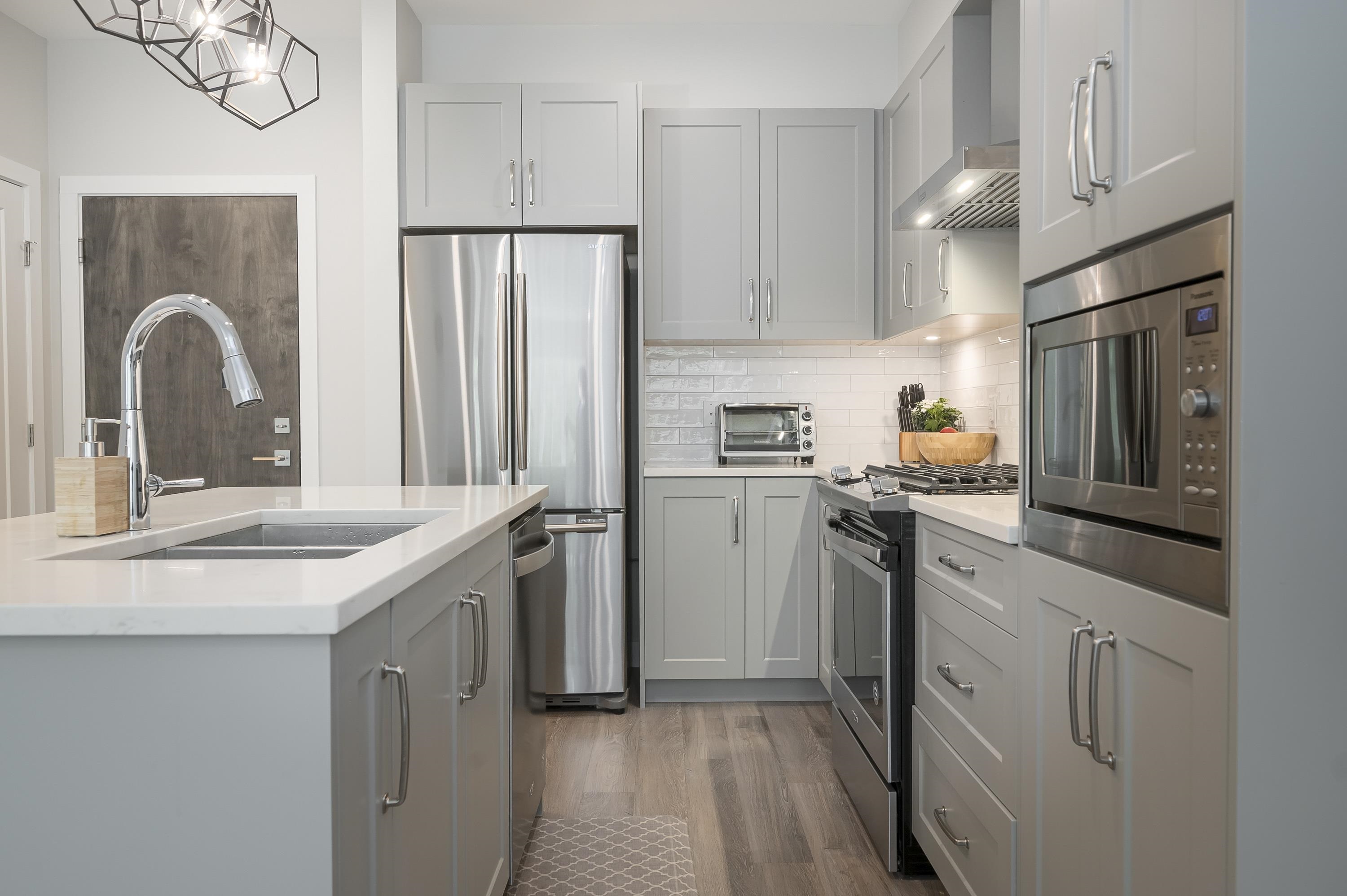 Welcome to Headwaters Club by Lakewood Homes! This stylish home features upgraded vinyl flooring, a spa-inspired ensuite with in-floor heating & frameless glass shower, plus a walk-in closet with barn door. The modern kitchen boasts quartz counters, stainless steel appliances & gas range. Pet & rental friendly, with 1 parking & 1 storage included. Close to White Rock & Crescent Beach, shops, dining, golf & trails—perfect balance of nature & city living!