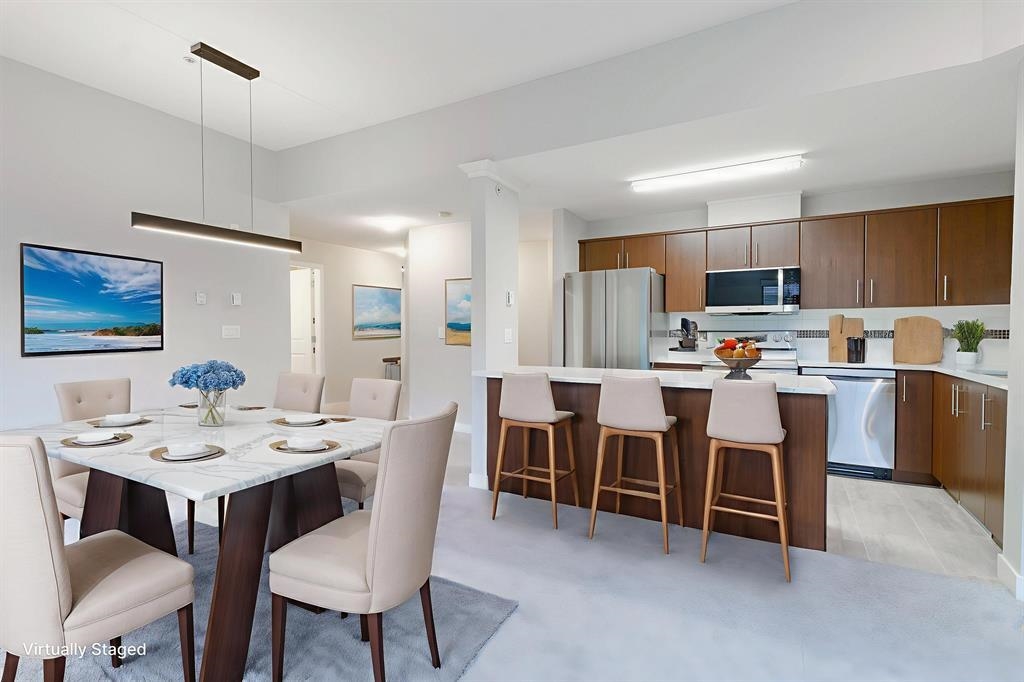 Welcome to Urbano—this top-floor corner unit offers over 930 sq ft of beautifully updated living space. Step into a bright, open layout with vaulted ceilings and large windows that fill the home with natural light. The renovated kitchen shines with new quartz counters, an undermount sink, stylish faucet, new lighting, and four stainless steel appliances—perfect for cooking and entertaining. The spacious living and dining areas flow seamlessly, with new flooring and fresh paint throughout. Two generous bedro...