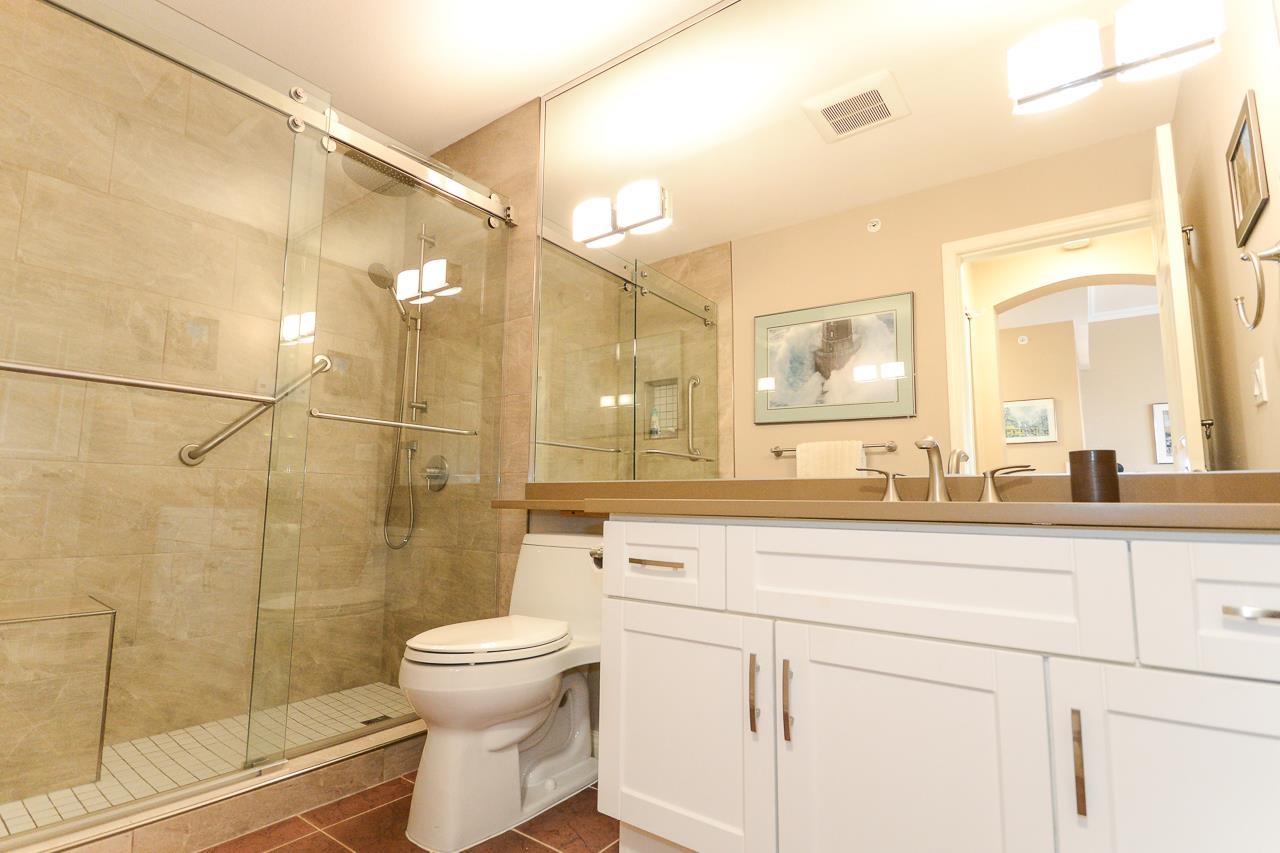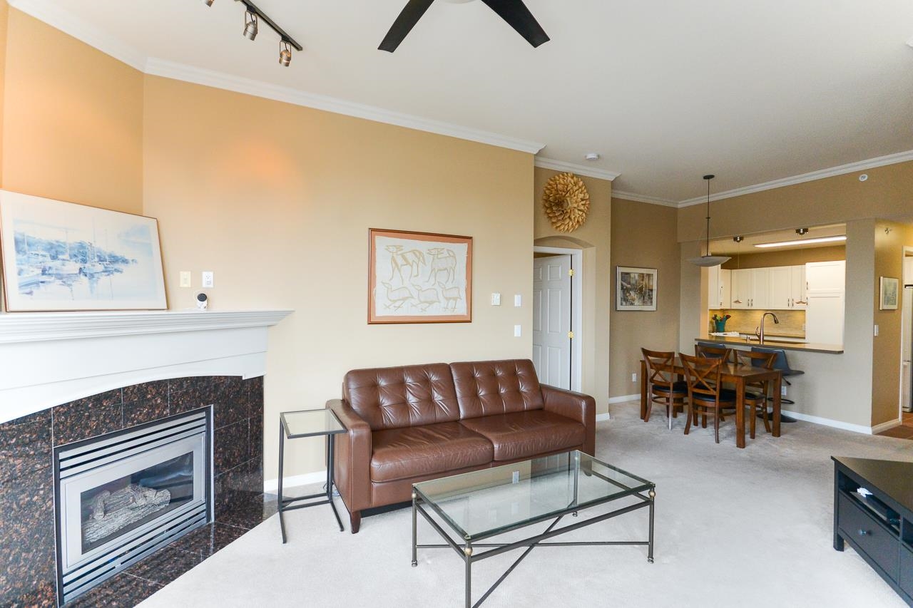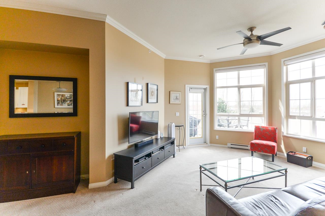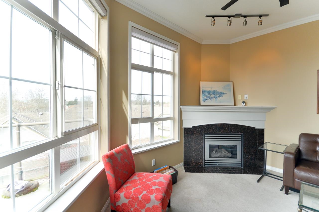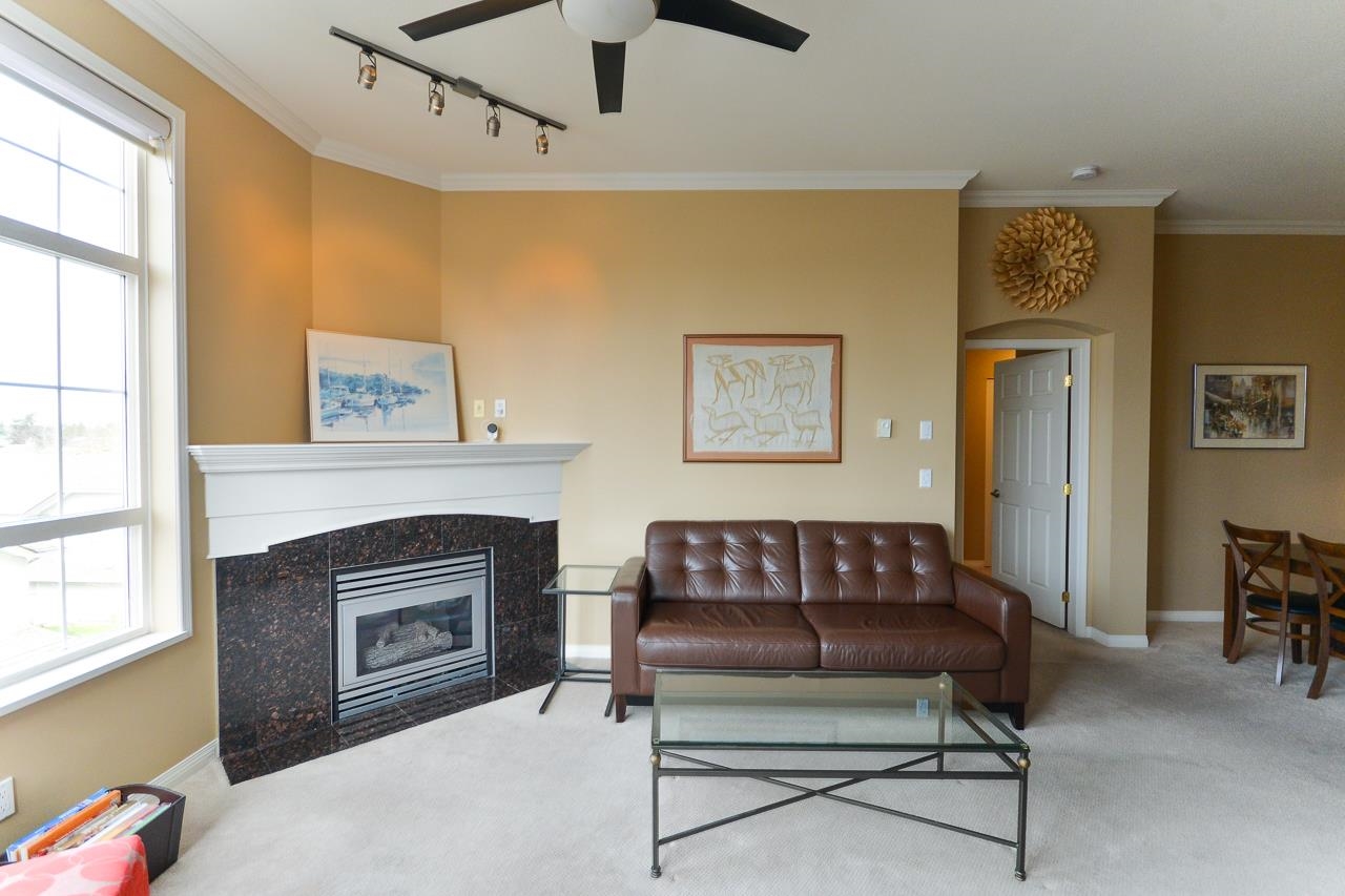 Terrific top floor suite in Steveston's 'SOUTHWATER'. This 2 bed/2 bath/2 parking plan with bedrooms separated by living area for privacy & livability. Boasts dramatic vaulted ceiling in living room with cozy gas fireplace, crisp white shaker cabinets in the kitchen, smart showers in the baths with heated floors, remote controlled blinds & crown mouldings throughout. West facing deck to enjoy the Gulf Islands & river views. Just a short stroll along the river to Steveston Village with its great shops & fin...