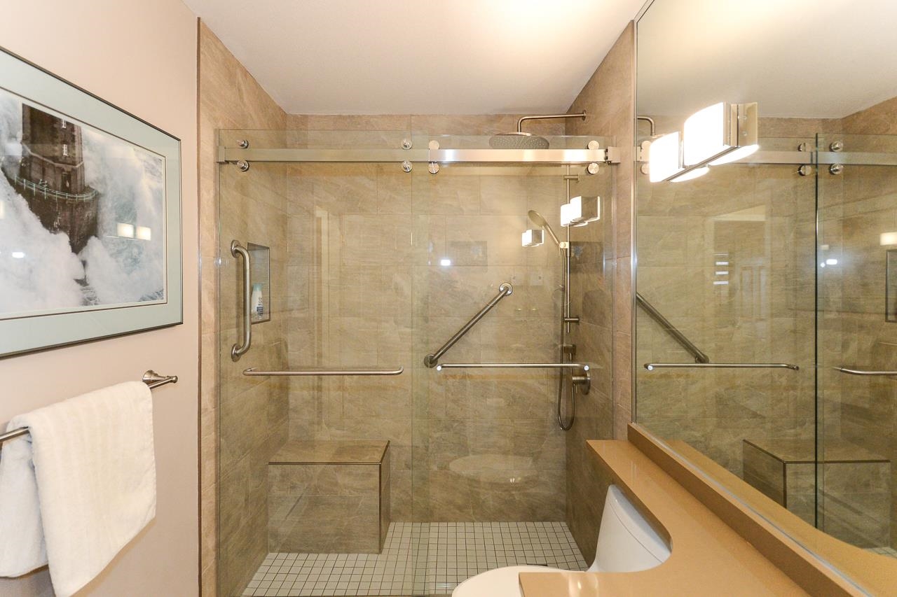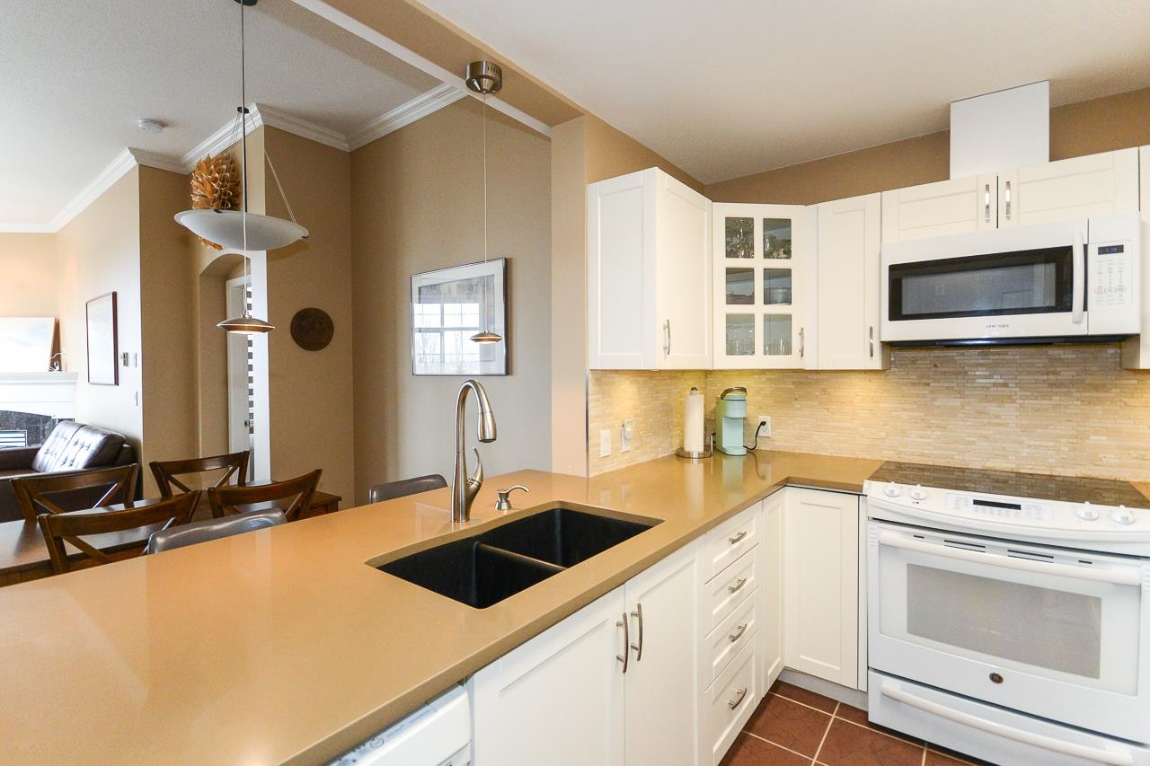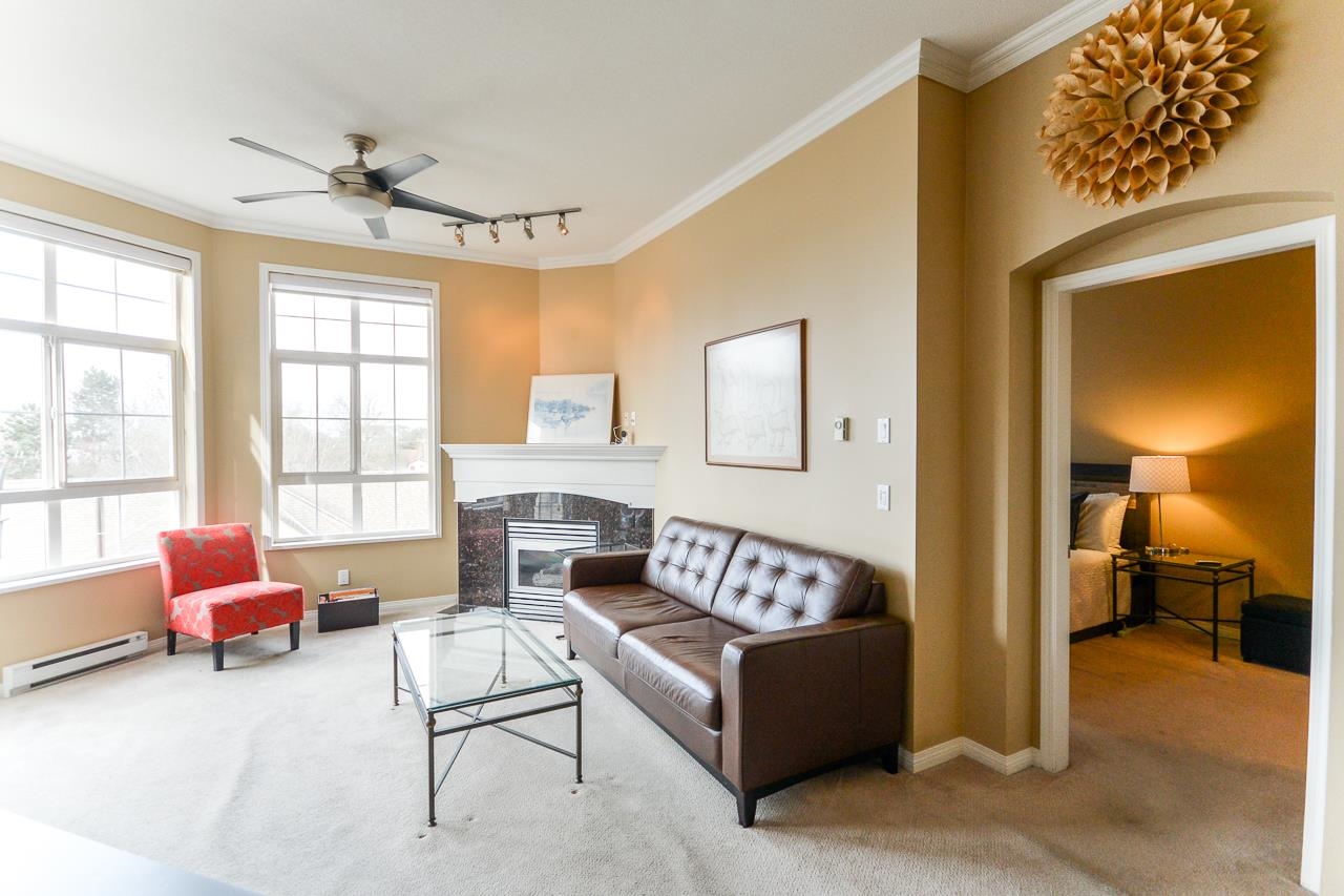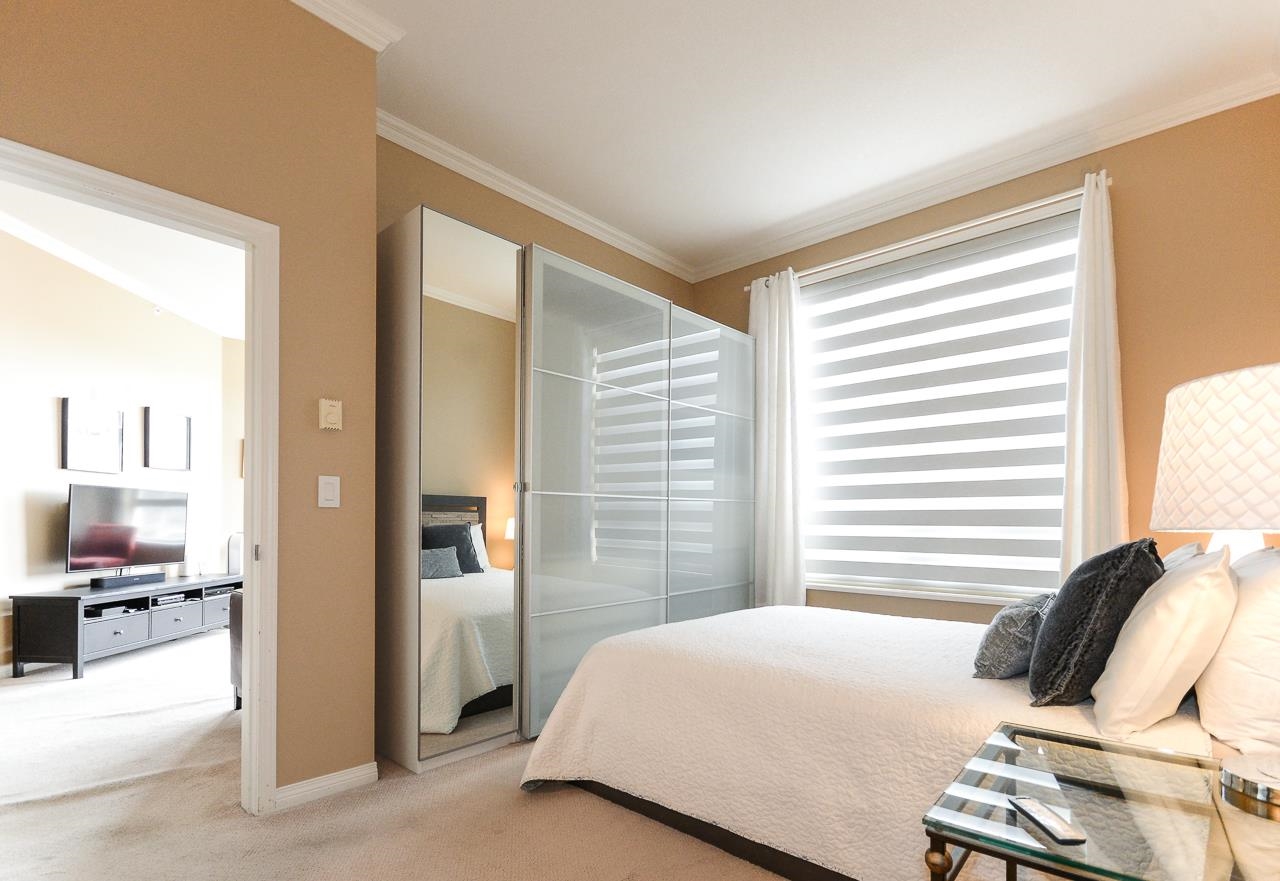 Terrific top floor suite in Steveston's 'SOUTHWATER'. This 2 bed/2 bath/2 parking plan with bedrooms separated by living area for privacy & livability. Boasts dramatic vaulted ceiling in living room with cozy gas fireplace, crisp white shaker cabinets in the kitchen, smart showers in the baths with heated floors, remote controlled blinds & crown mouldings throughout. West facing deck to enjoy the Gulf Islands & river views. Just a short stroll along the river to Steveston Village with its great shops & fin...