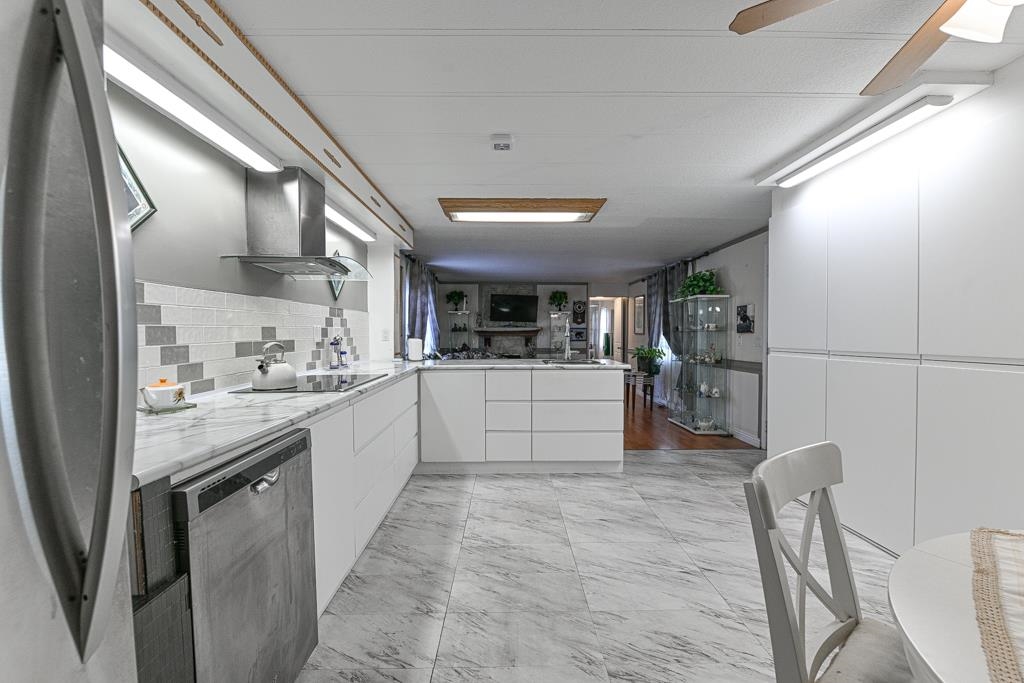 Very well-kept & Clean! Looks Amazing inside, situated in a quiet area yet close to all amenities in Maplewood Estates - Check out this lovely and spacious home, 2-bedroom, 2-bathroom with a huge Living room with a Gas fireplace and a large Den. Features: New Kitchen with Drawers in Drawers and Induction Cook-top, SS Appliances, Smart Thermostat, Large lot with a Nice yard for Gardening, great location in the park. 1 outdoor shed & 1 large attached workshop. 55+ age restriction. 1 small pet (dog ) with heig...