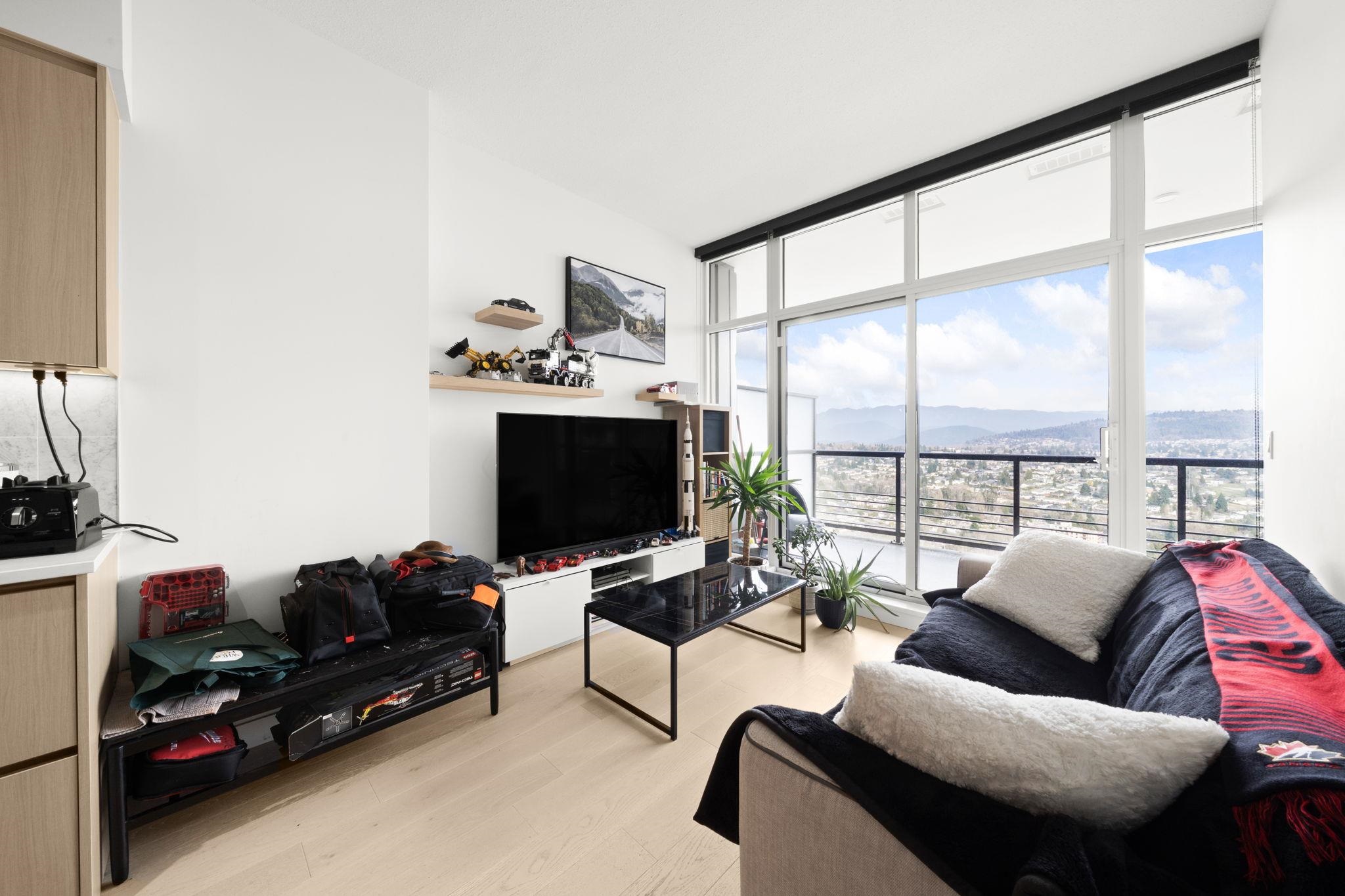 Sub-penthouse, northeast-facing 1-bedroom at Concord Pacific’s Hillside West in Brentwood, offering breathtaking, unobstructed mountain and city views. The bright, well-planned layout features a spacious living area, German Bosch kitchen appliances, and central air conditioning for year-round comfort. A rare oversized patio seamlessly extends the living space outdoors—perfect for morning coffee, summer evenings, or relaxing while taking in the views. Includes one EV-ready parking stall and one storage locke...