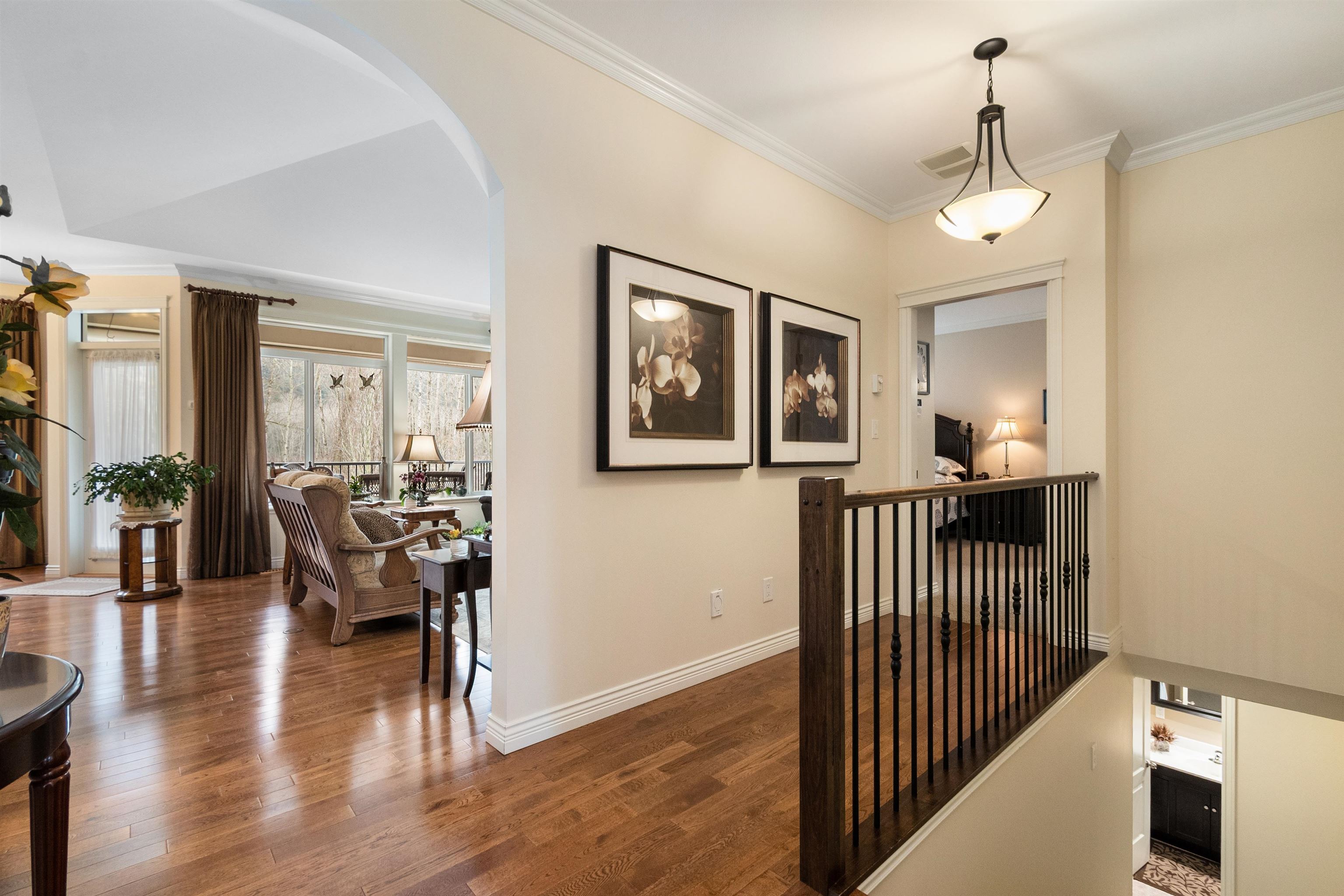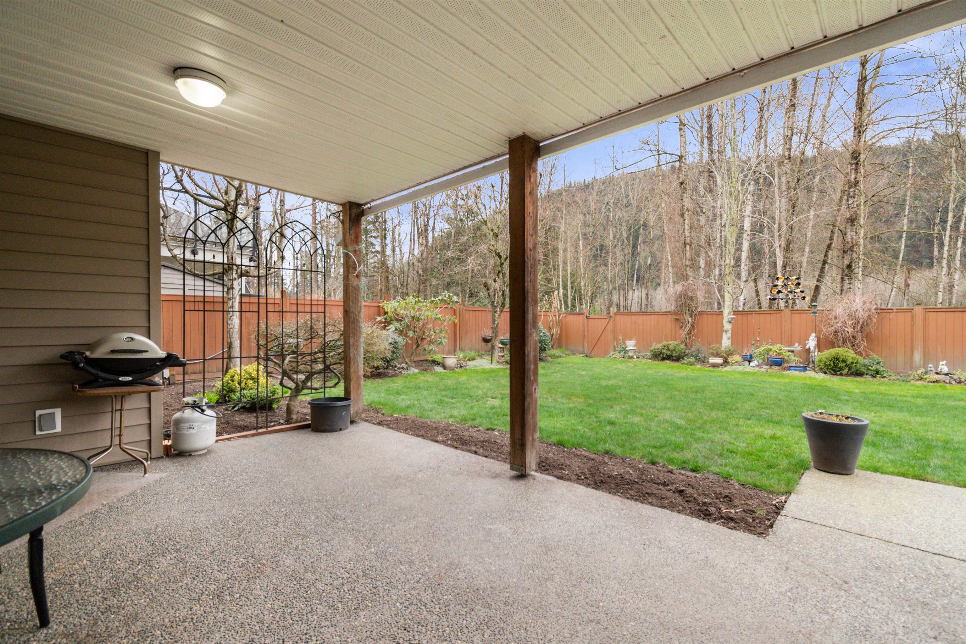 WATERFRONT RANCHER with full walkout basement backs on to the Rotary Trail and the Vedder River. Formal entry, classy address, very comfortable home, 9 ft ceilings plus vaulted pinnacle ceiling in the living room, warm fireplace, hardwood floors, incredible views! Kitchen open to a bright dining room with door to the covered sundeck with electric awning and sunny southern exposure. PRIMARY BEDRM ON THE MAIN with full ensuite and walk in. Lower level with media room, extra large open rec room, great for ente...