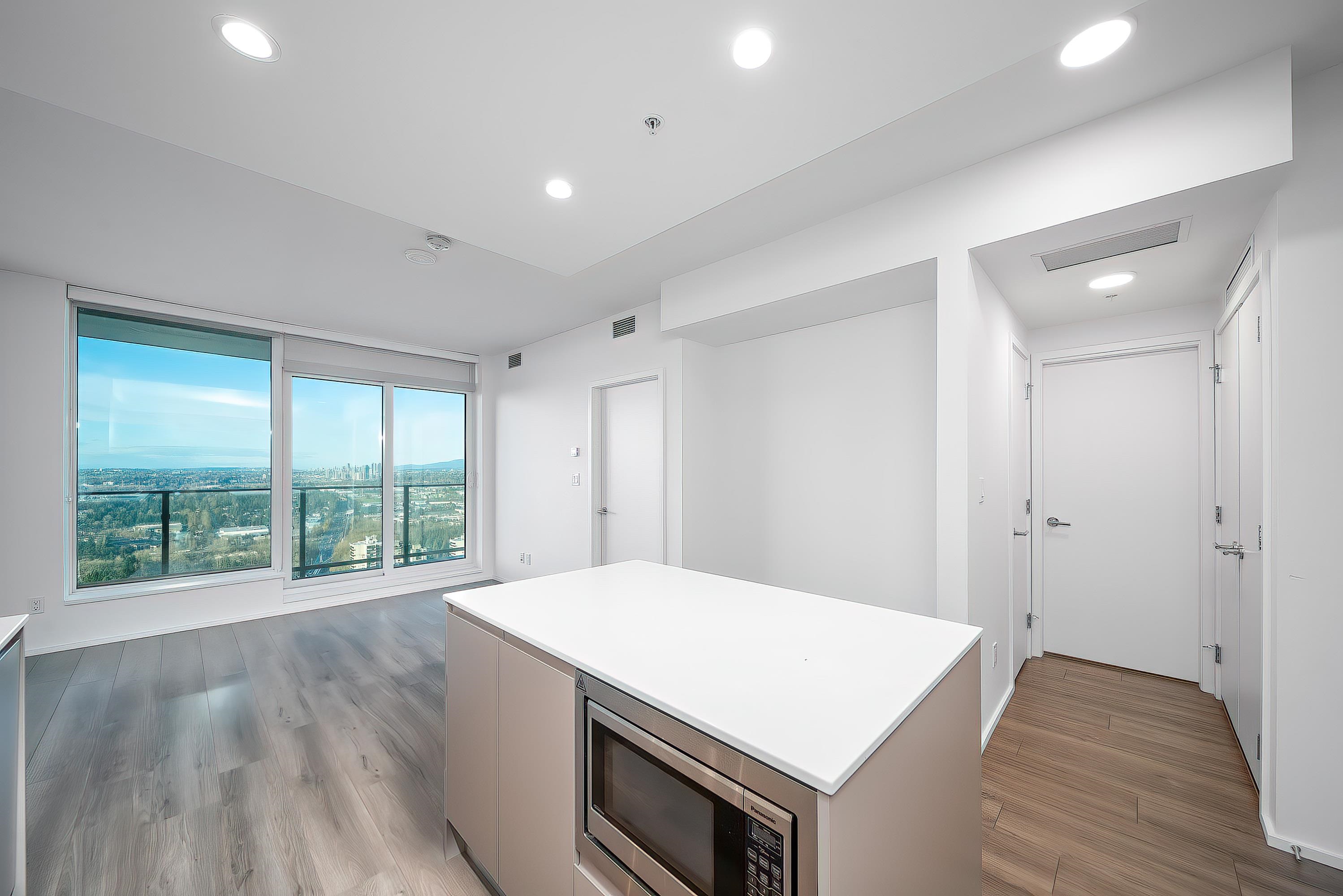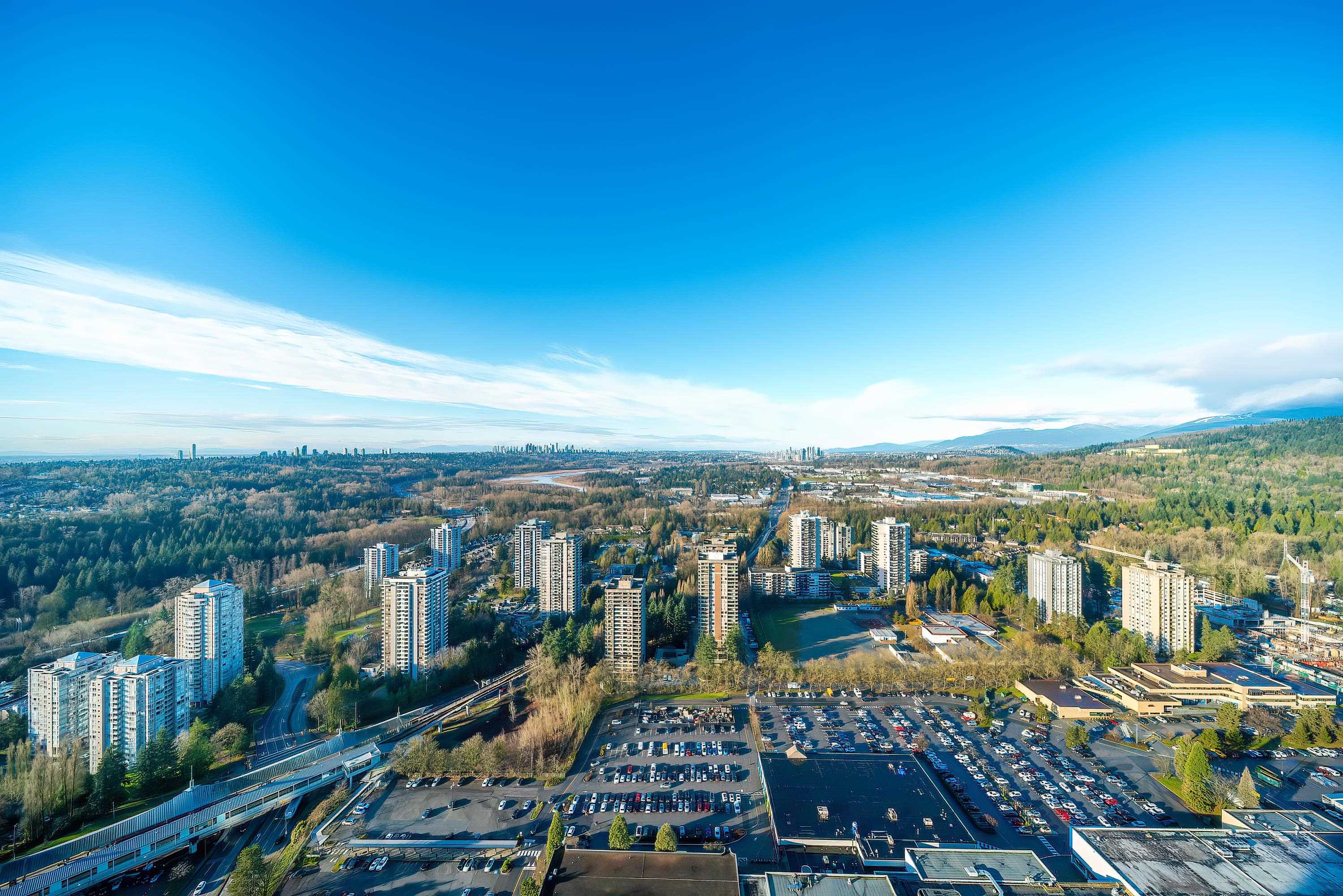 Welcome to The City of Lougheed! This 45th-floor, west-facing 1 bedroom, 1 bathroom home offers unobstructed views of Downtown Vancouver, Burnaby Lake, Brentwood, Metrotown, and Burnaby Mountain. Bright and modern with Bosch stainless steel appliances, laminate flooring, high ceilings, and central A/C. Residents enjoy extensive world-class amenities, including fitness centre, study lounges, rooftop BBQ area, and concierge. Steps to SkyTrain, Lougheed Town Centre, shops, restaurants and more. Includes 1 park...