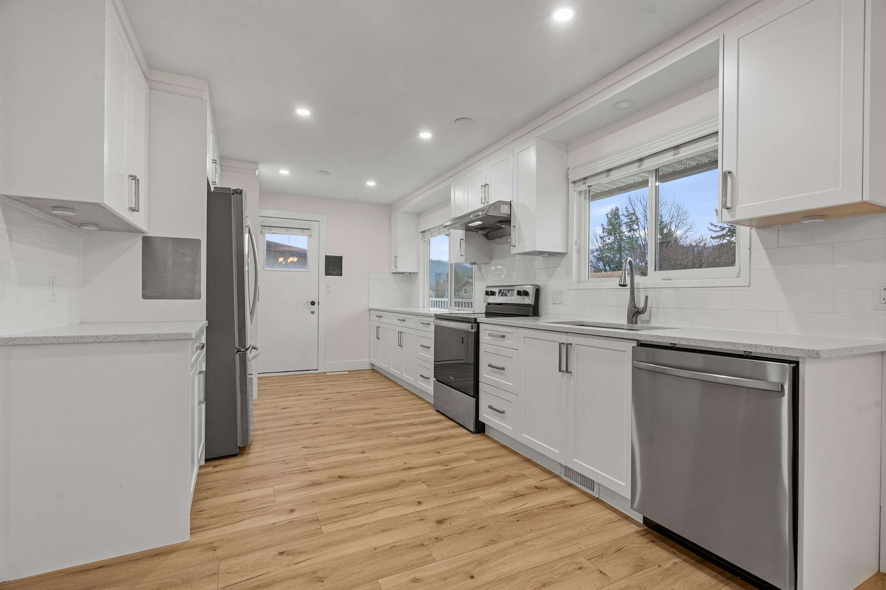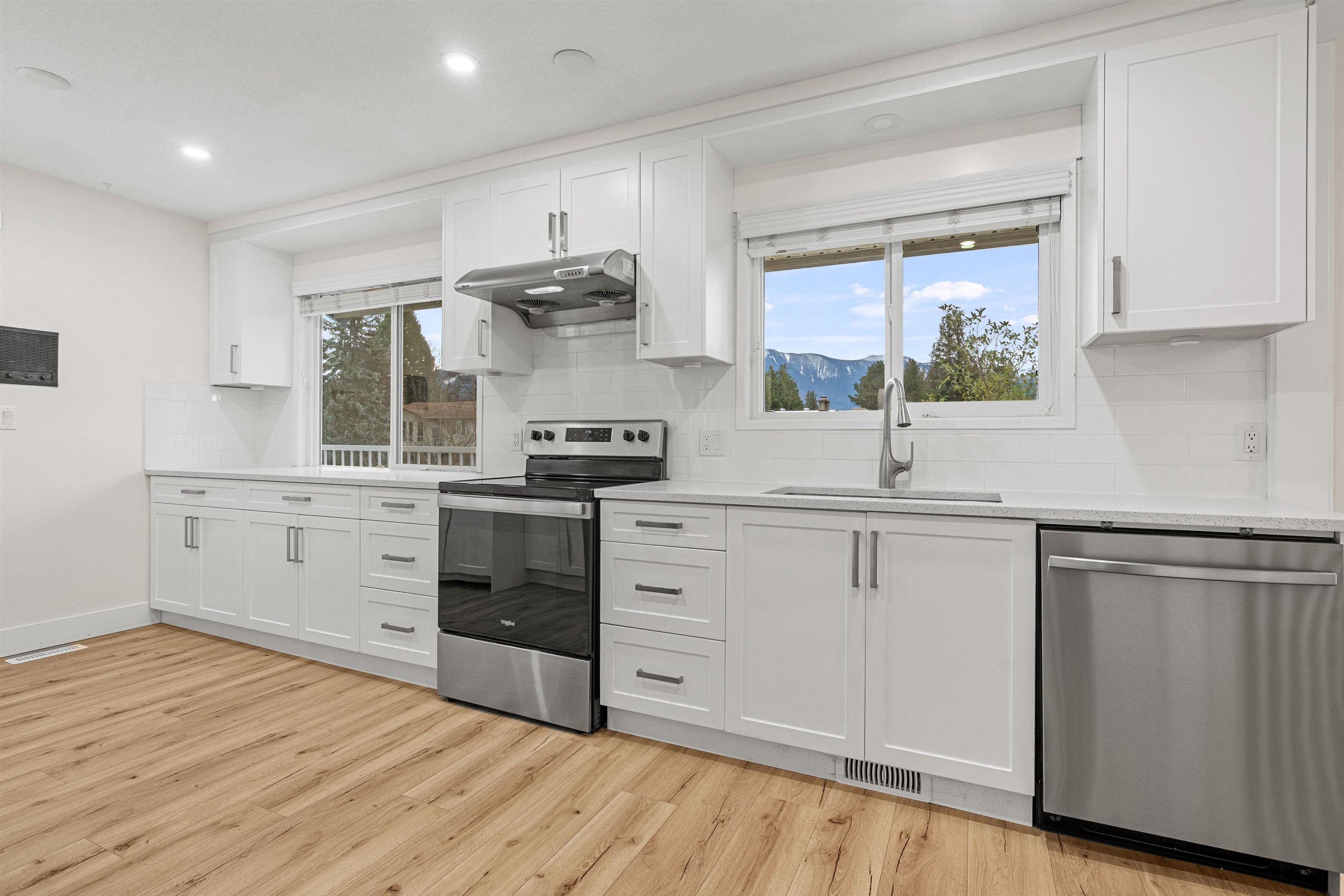 The perfect family home: private backyard, quiet street, and close to all levels of schools! Fully renovated 4 bed and 2.5 bath property located in one of the best Sardis neighbourhoods and backing onto Mountview Park. 3 beds and 1.5 baths upstairs with a wrap around deck and breathtaking mountain views. Recent updates include new kitchen cabinets, quartz counter tops, lighting, laminate flooring, paint and appliances. Downstairs has a recently renovated one bedroom mortgage helper with its own laundry. Oth...