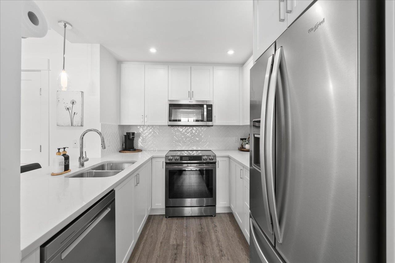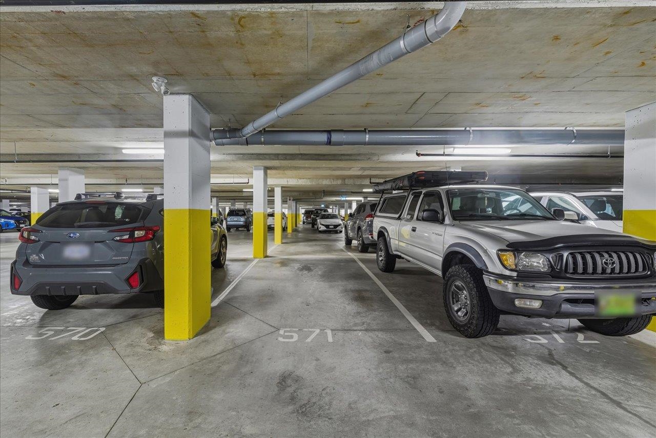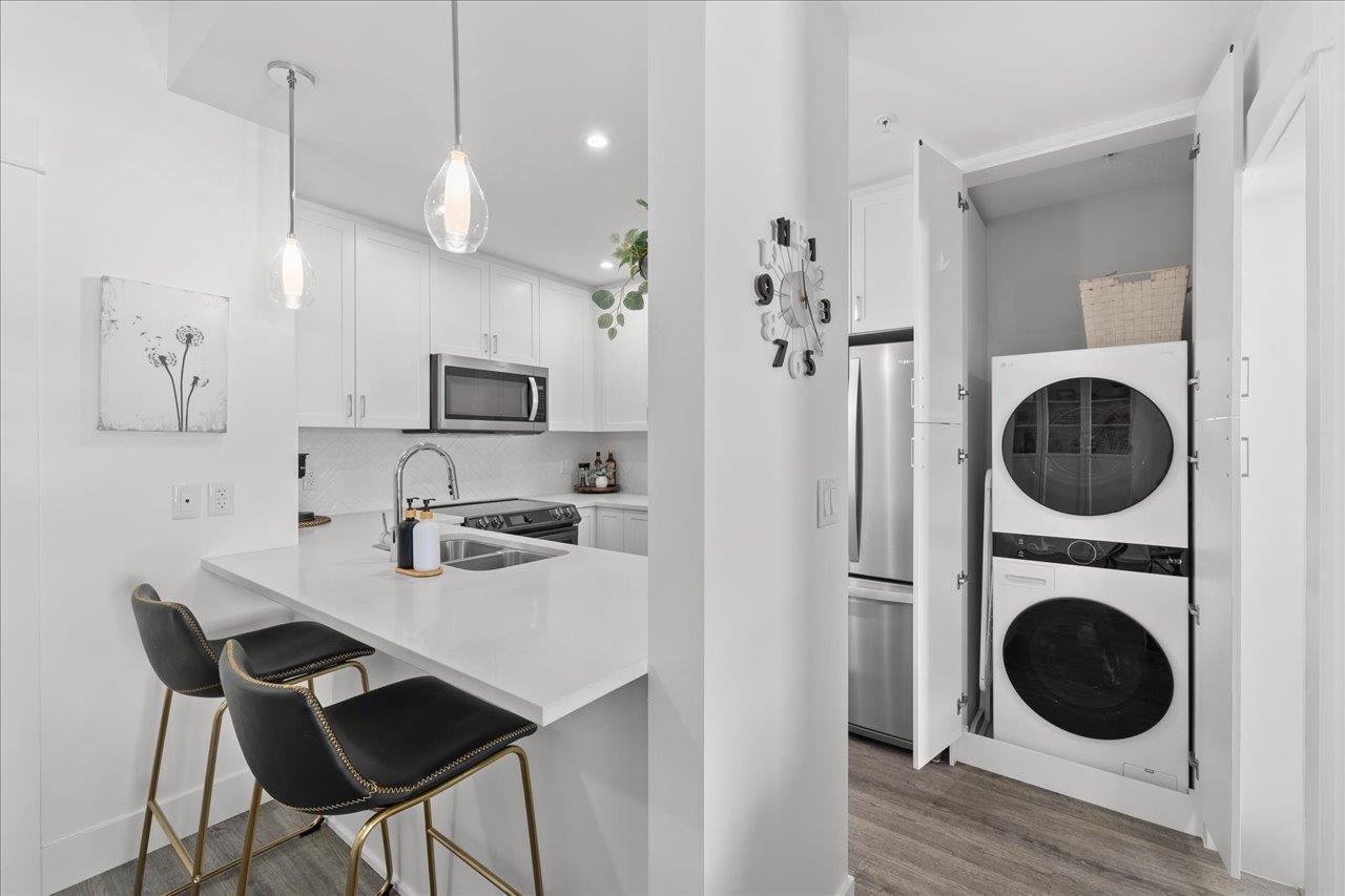 Beautiful TOP FLOOR 1 bed 1 bath unit @ Montrose Square features open concept living w/ laminate floors & high ceilings leading to your covered balcony w/ completely private exposure & MOUNTAIN VIEWS! X-large windows allow for natural light, making the home feel bright & spacious! Modern Kitchen with S/S appliances, quartz counters, lots of counter/cabinet space + convenient breakfast bar for dining, coffee or conversation! Bedroom features a walk in closet that leads to the cheater ensuite. BONUS: 1 parkin...