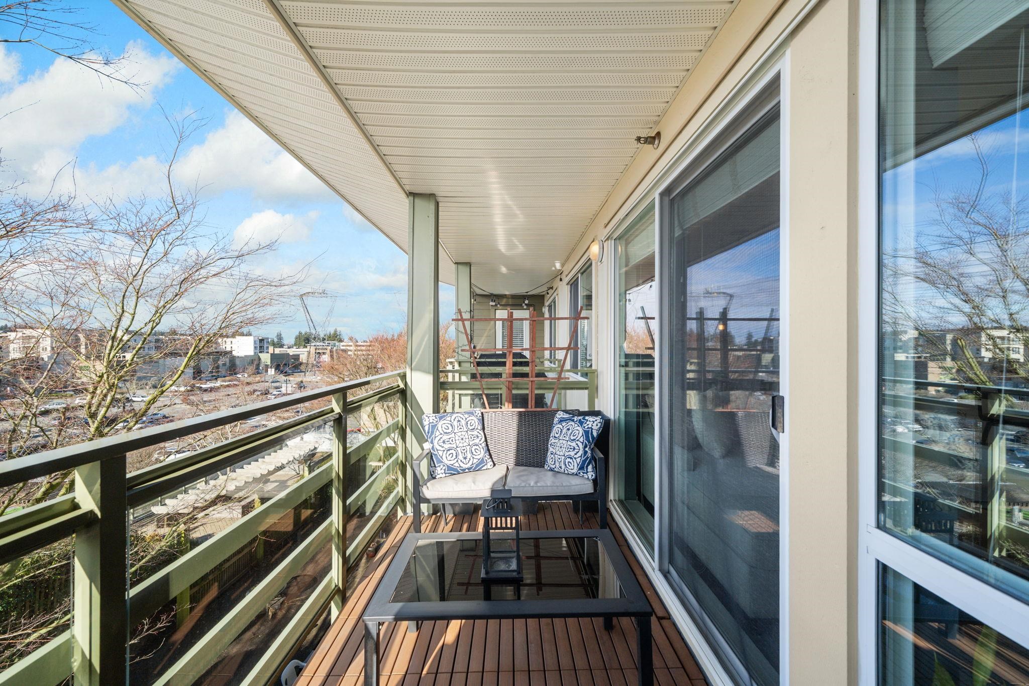 Welcome to penthouse living at ARC - Morgan Crossing. This bright, south-facing home is full of natural sunlight and is extremely private, framed by mature trees rising from the levels below. Fresh and well kept, with a great layout including a versatile den, perfect for a home office, nursery, or a cozy space for pets. Not to mention a full laundry room to utilize! Enjoy exceptional indoor/outdoor living with the generous second level outdoor space ideal for entertaining guests or simply relaxing in the su...