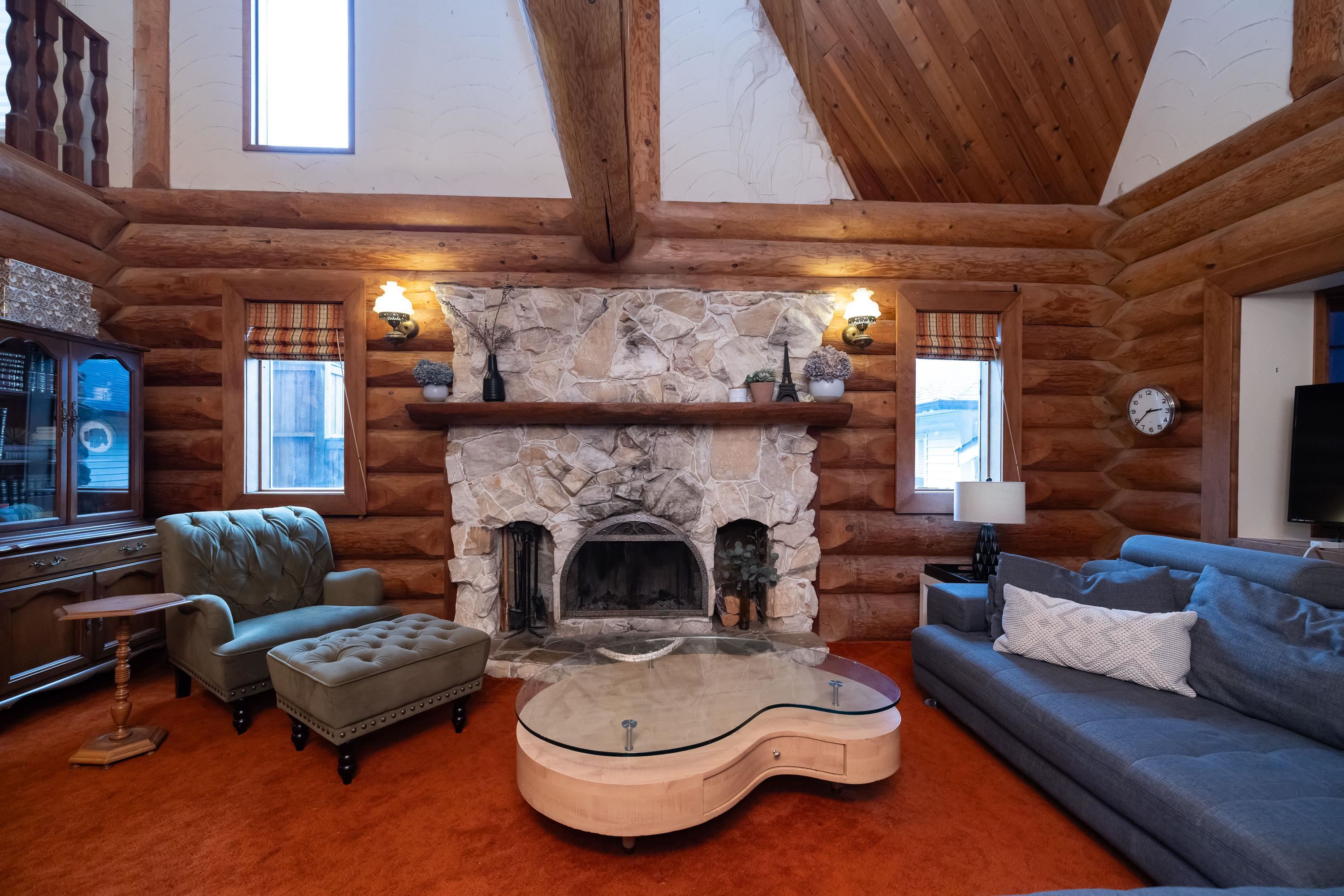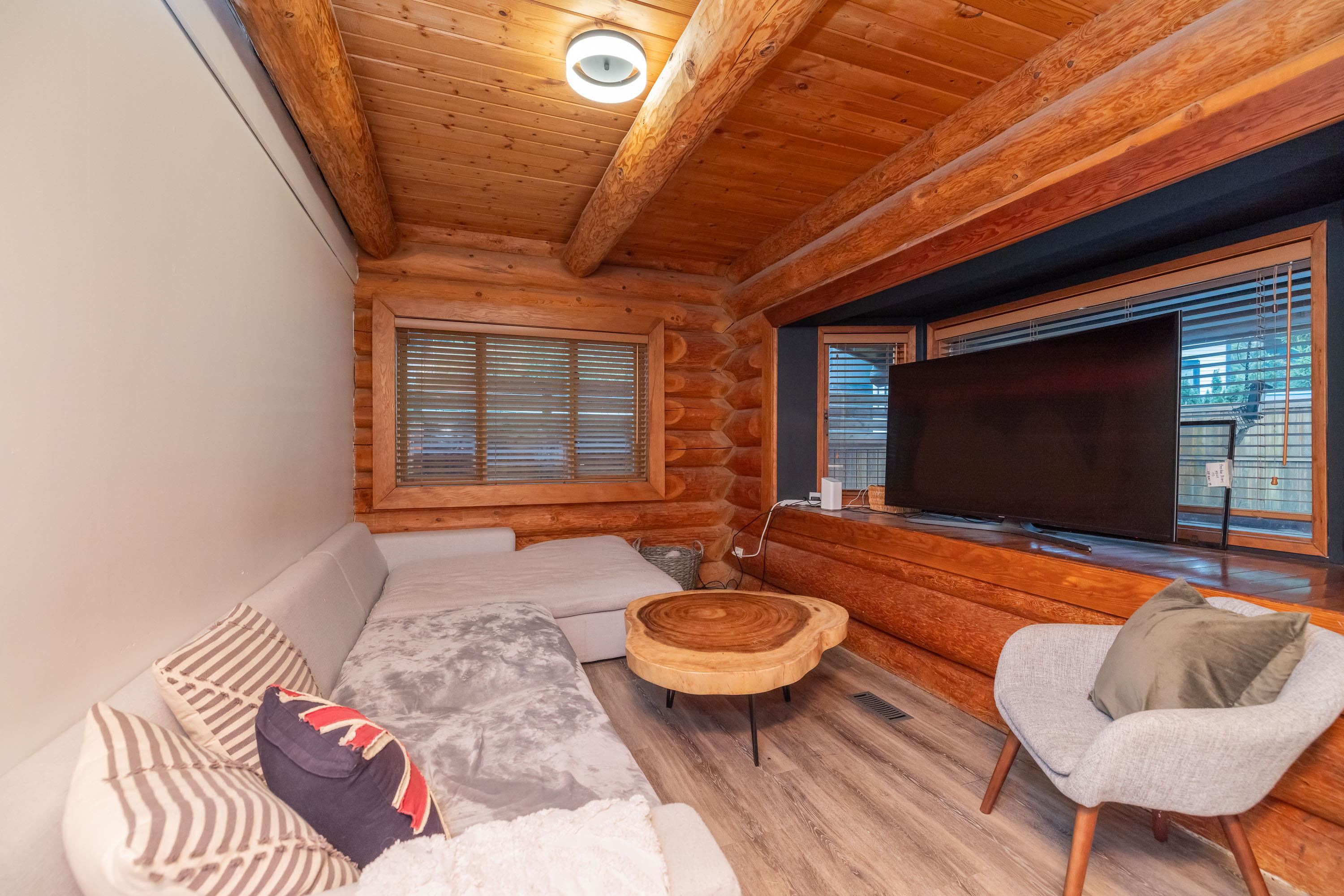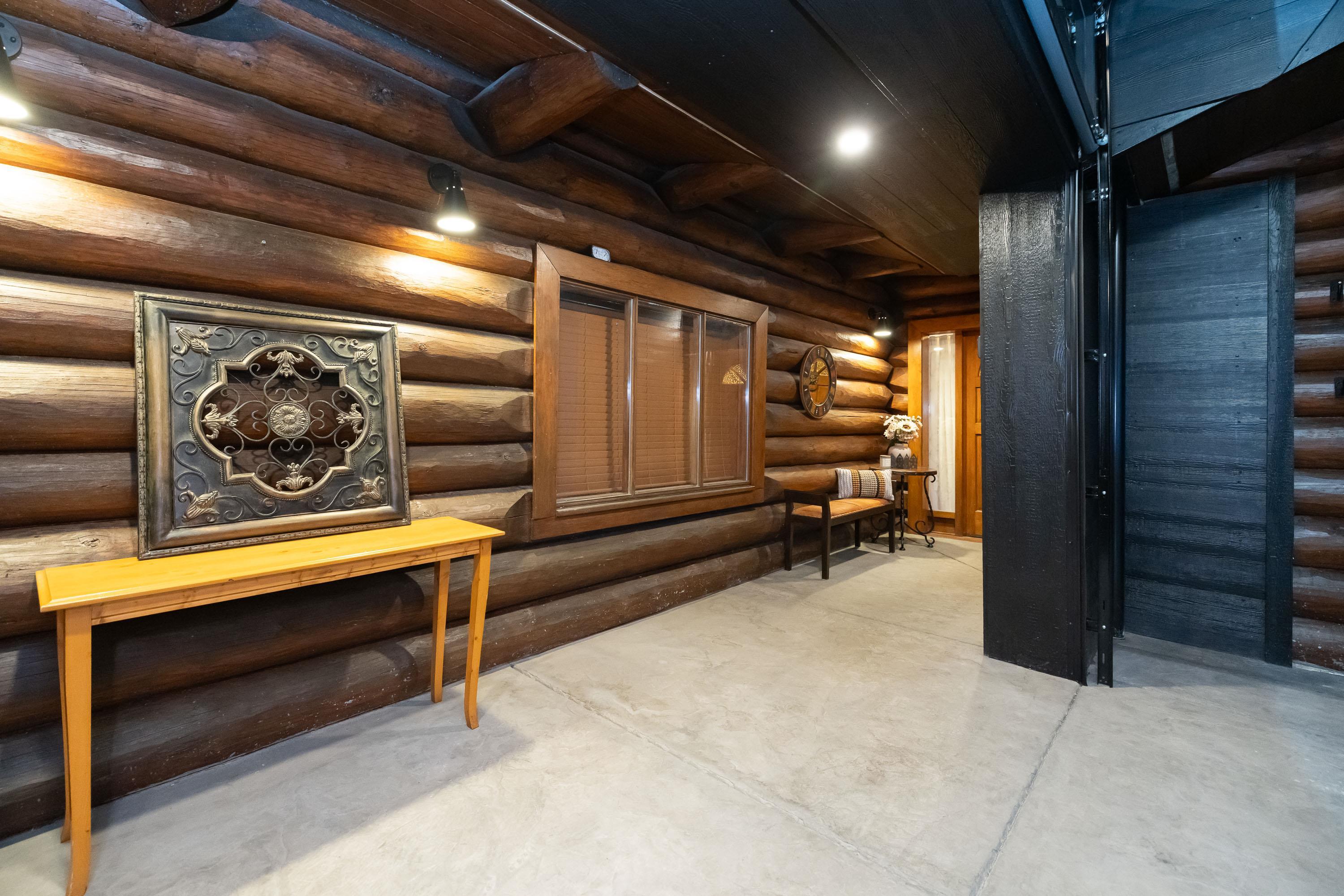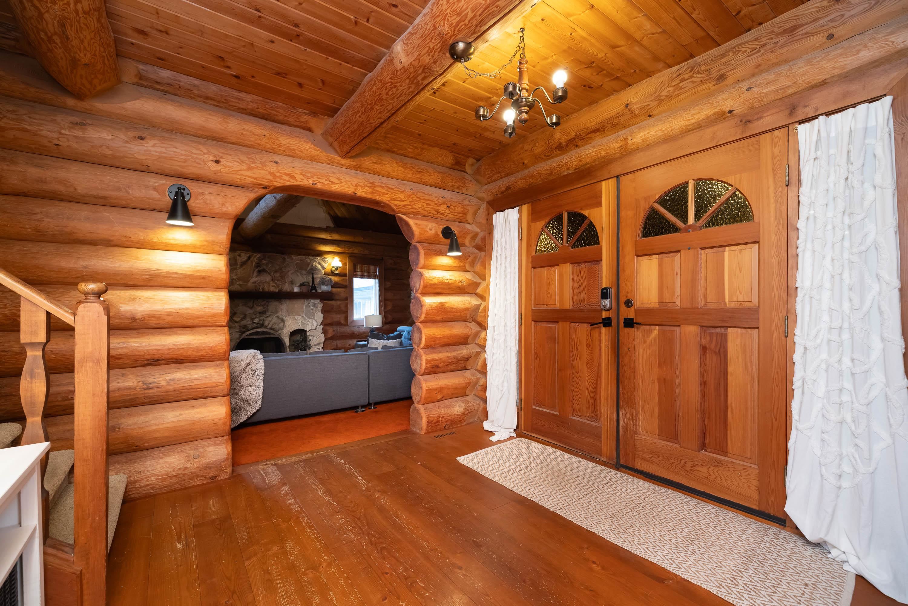 A rare architectural contrast. Traditional log home warmth meets modern architecture, featuring a 3 storey ICF addition built for comfort, quiet, & longevity. The original home offers a main flr bed, kitchen, dining, living & family rooms with vaulted ceilings. Upstairs features 3 more beds, including a spacious primary w/ large closet spaces & an impressive ensuite with heated flooring. Private backyard with garden beds & a covered hot tub area. The modern addition provides flexible space ideal for Airbnb ...