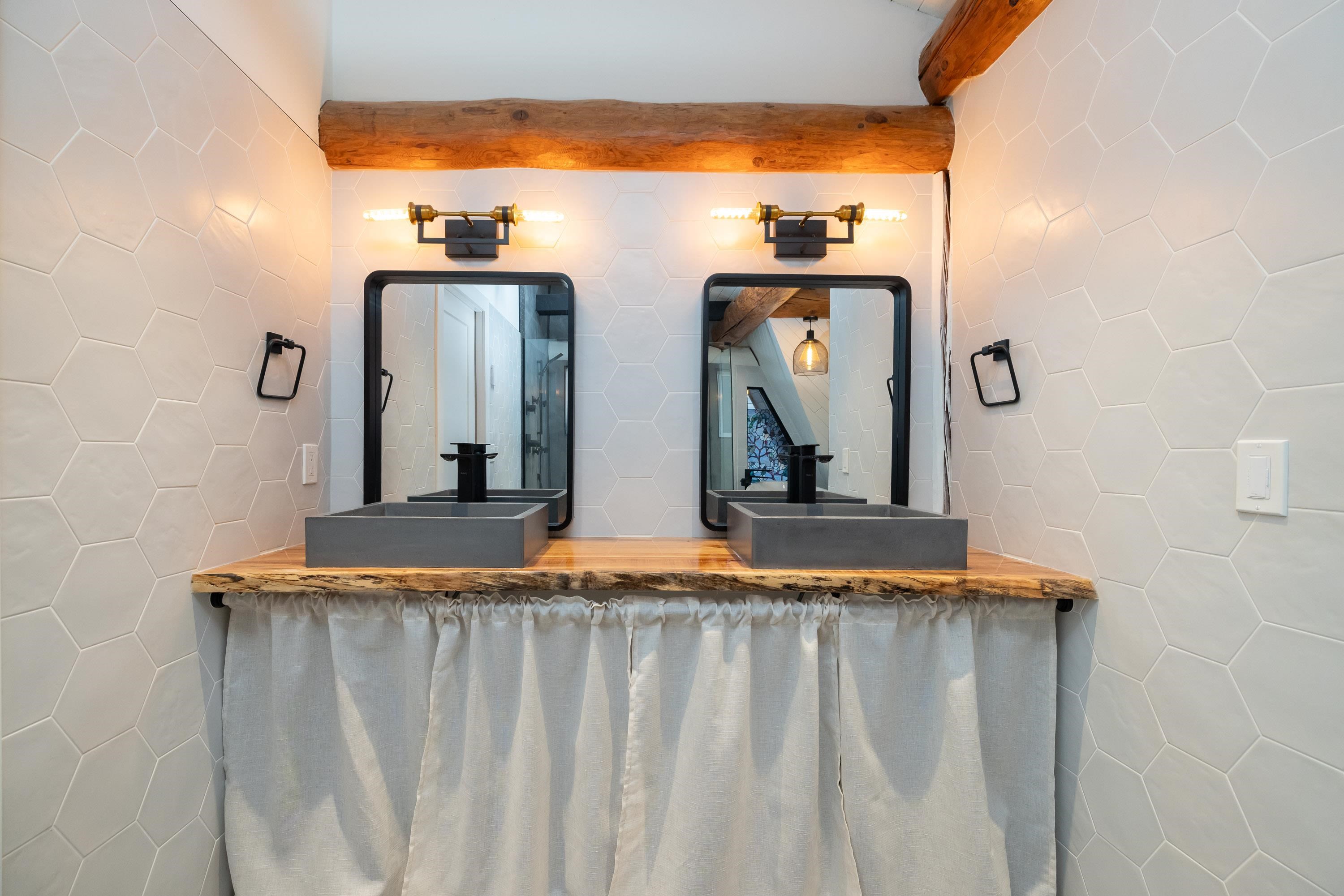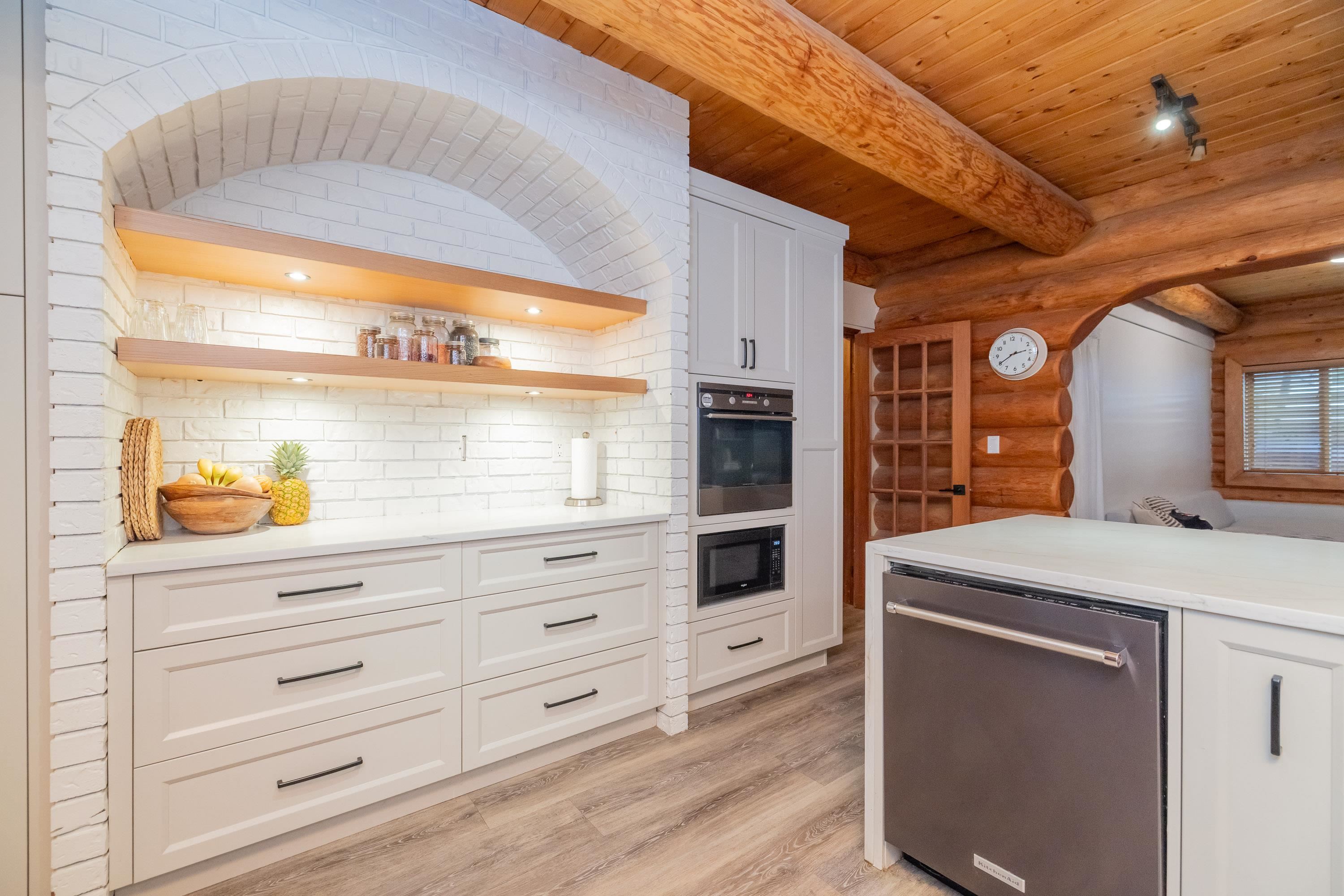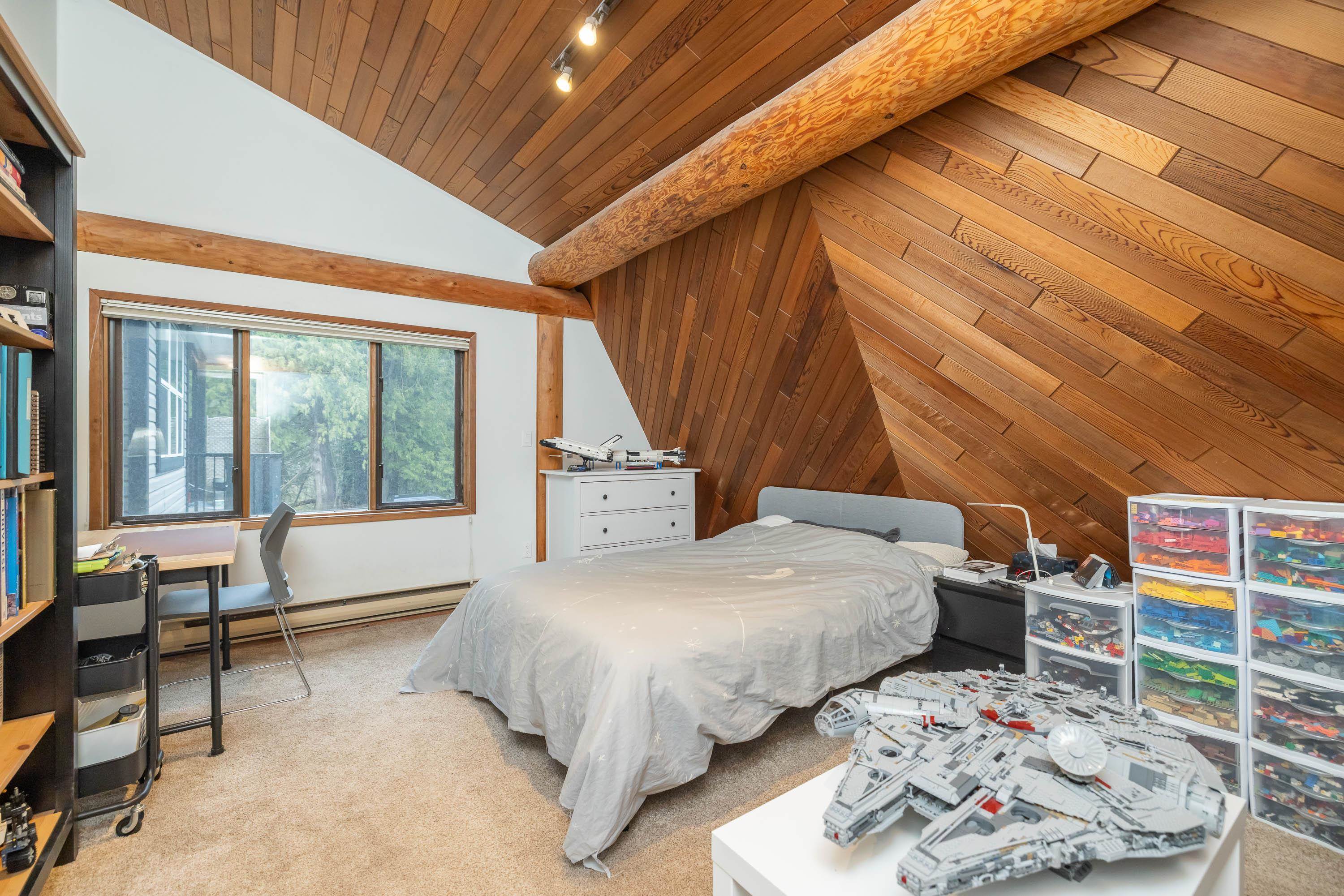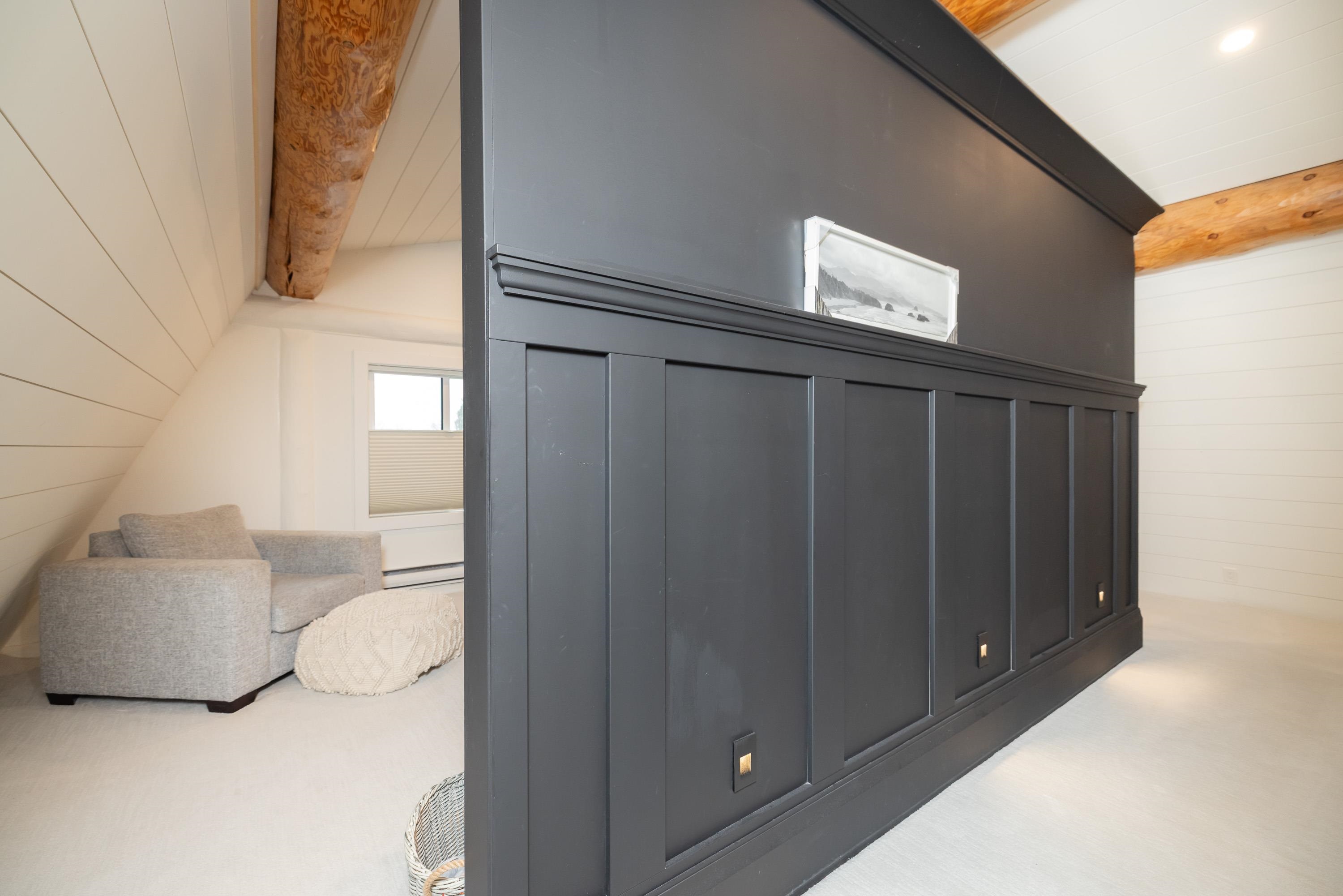 A rare architectural contrast. Traditional log home warmth meets modern architecture, featuring a 3 storey ICF addition built for comfort, quiet, & longevity. The original home offers a main flr bed, kitchen, dining, living & family rooms with vaulted ceilings. Upstairs features 3 more beds, including a spacious primary w/ large closet spaces & an impressive ensuite with heated flooring. Private backyard with garden beds & a covered hot tub area. The modern addition provides flexible space ideal for Airbnb ...