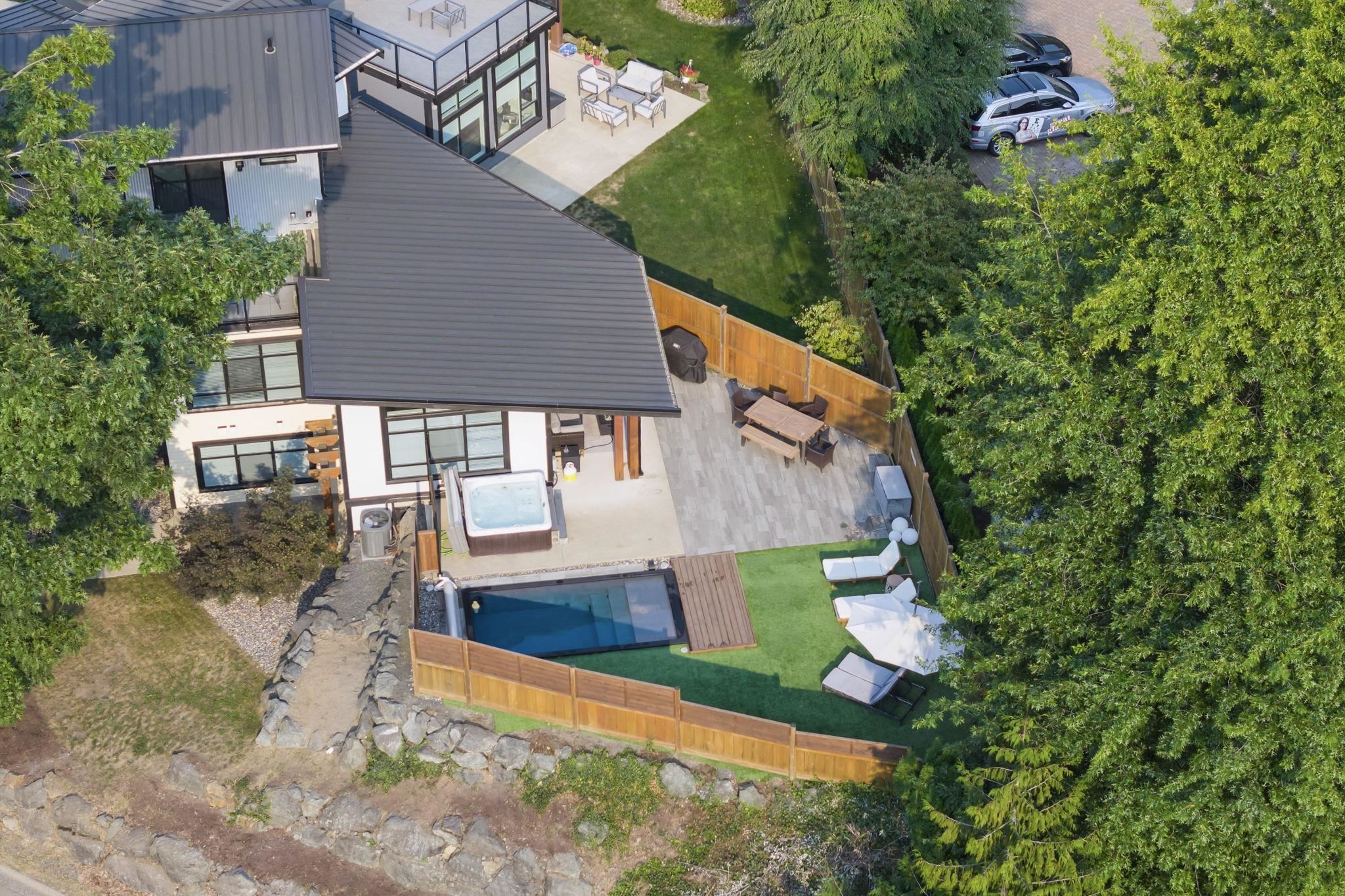 STUNNING CUSTOM HOME ON LITTLE MOUNTAIN WITH A POOL & ROOFTOP PATIO! This one is not like the rest. Over 3,100sqft of living space, 4 beds, 4 baths, easily SUITEABLE (already roughed in & separate entry), low maintenance ARTIFICIAL TURF backyard w/ a POOL & a HOT TUB for an amazing entertaining space, AIR CONDITIONING, METAL ROOF, & ROOF TOP PATIO w/ gorgeous mountain views. Amazing one of a kind open concept main living area w/ beautiful windows, modern kitchen w/ stainless steel appliances, quartz counter...