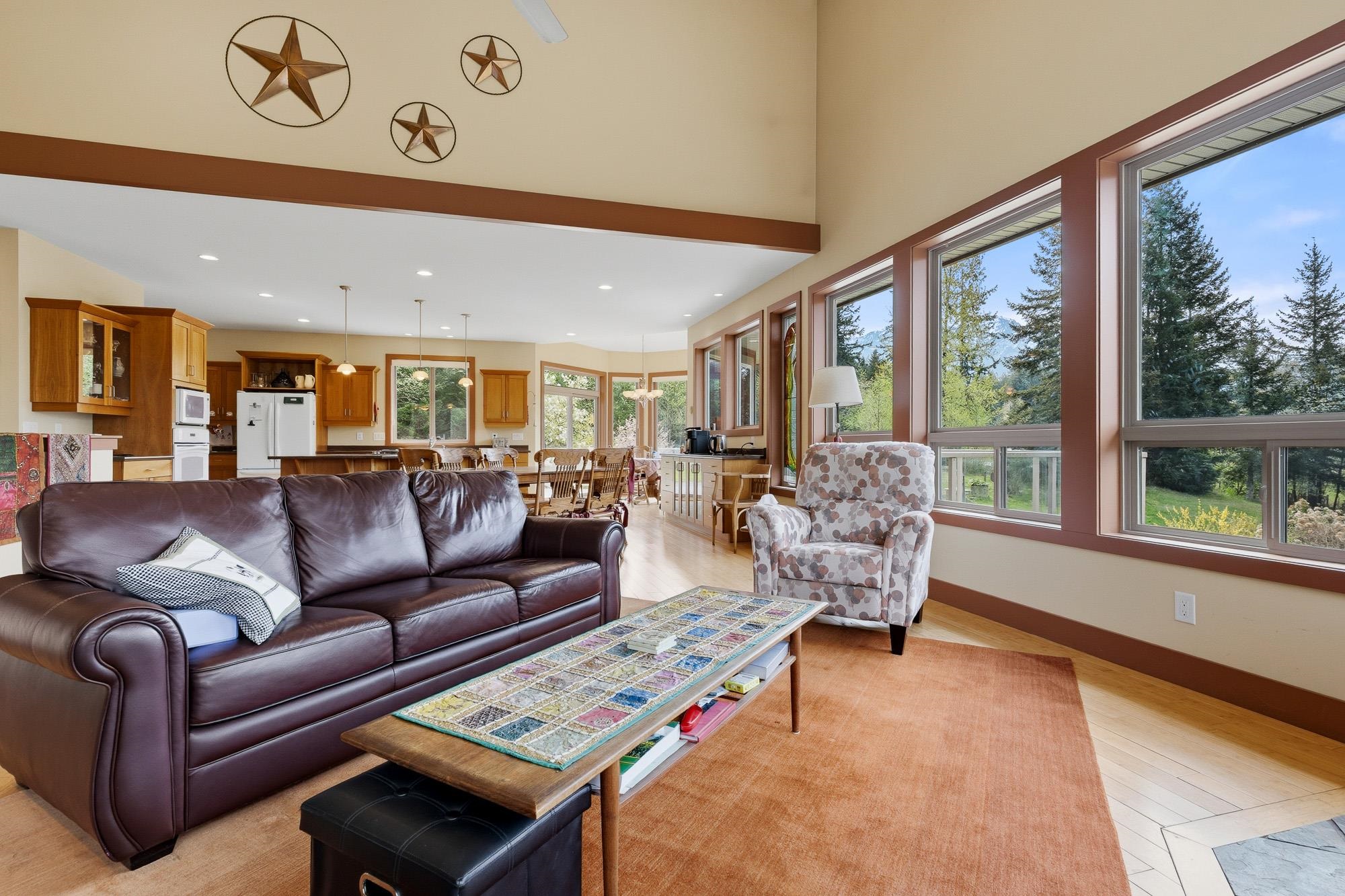 Tucked away on a serene acreage, this 3600+sq rancher with full walkout basement offers the perfect blend of privacy, space, and stunning natural surroundings. This versatile property features a well-maintained home with bright, open living areas, floor to ceiling windows, and beautiful views from the spacious sun deck of the surrounding mountains and countryside. Ideal for multigenerational families with a full kitchen and separate entrance downstairs. The 3.94 acres of usable land provides ample room for ...