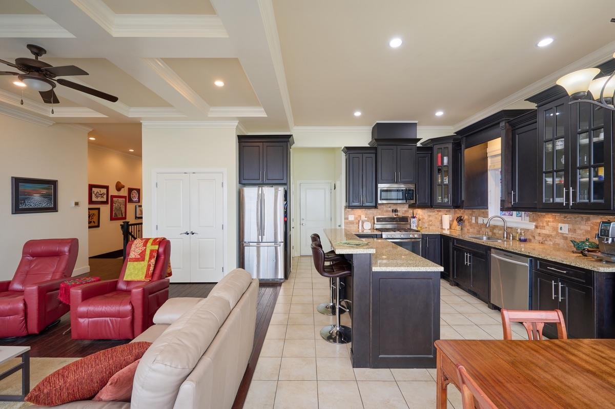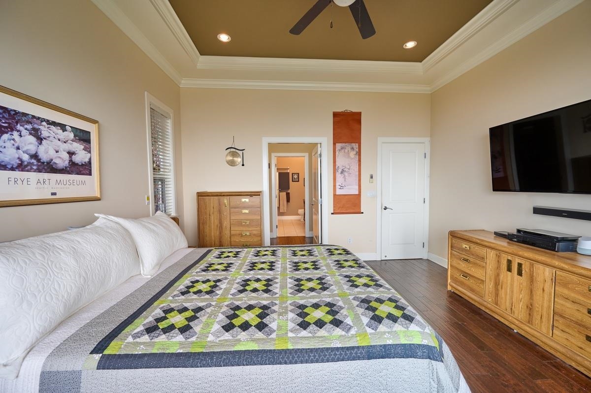 BREATHTAKING VIEWS OF THE RIVER, VALLEY & beyond. Pride of ownership everywhere in this exquisite 3-bed, 3-bath quality built rancher w/walk out basement. ENJOY MAIN FLOOR LIVING AT ITS FINEST with features that incl open & bright floor plan w/10.4 ft ceilings, crown moldings, hardwood flrs, wainscotting, livingrm w/elegant coffered ceilings & cozy gas fp, chef's kitchen w/solid wood cabinets, lge island, granite counters & gas stove, eating area, generous master w/walk in closet, custom organizers & spa-li...