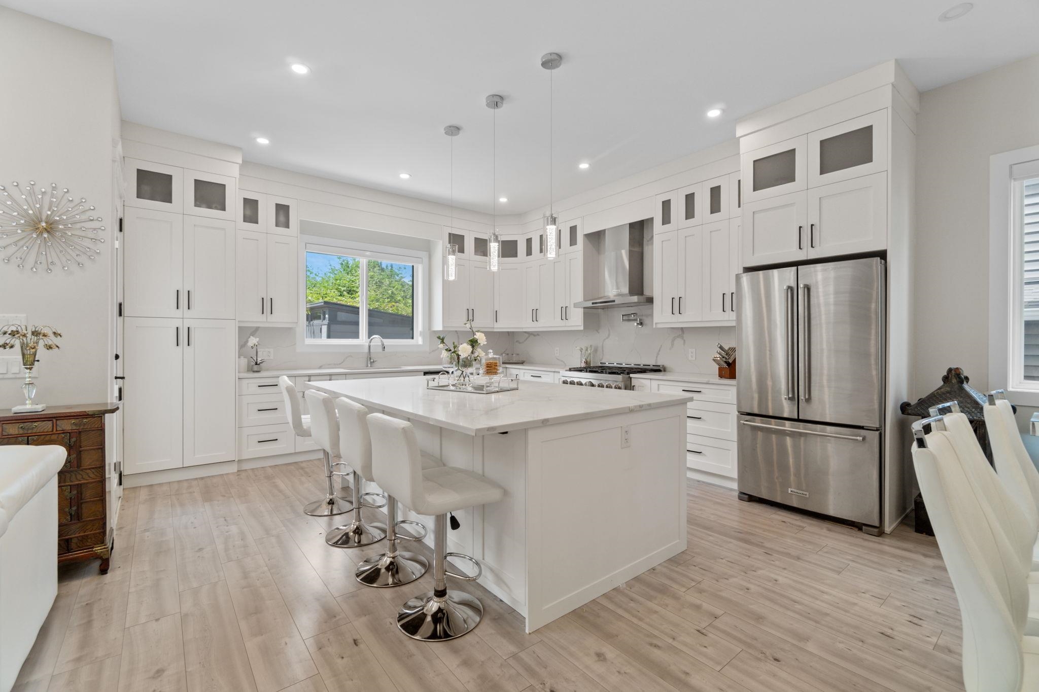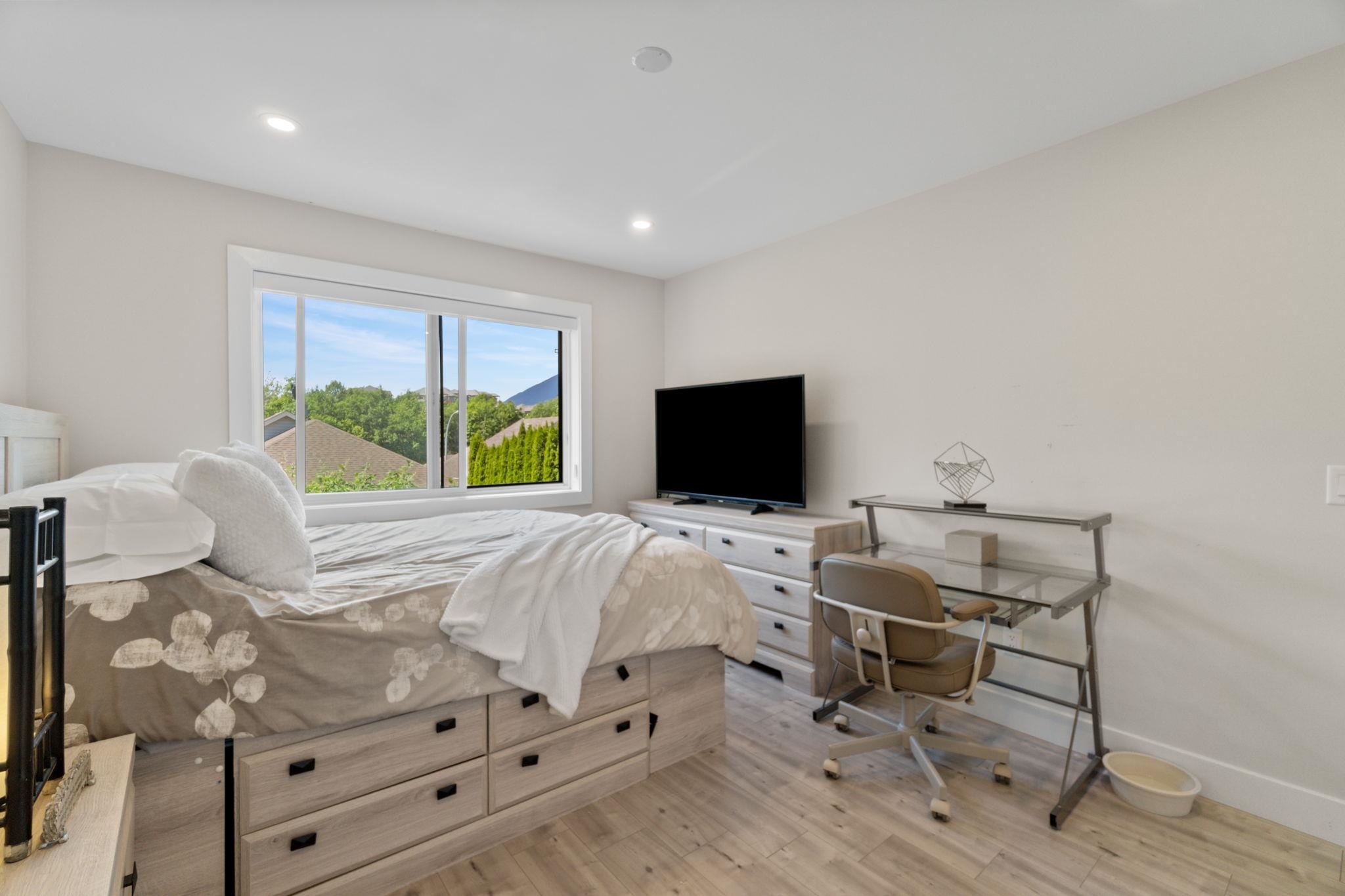 Welcome to Chilliwack Mountain Estates! This stunning 3-level home offers 6 bedrooms and 4 bathrooms, including a 2-bedroom suite downstairs-perfect for extended family or rental income. Built in 2020, the home features 10' ceilings on the main, open-concept layout, and breathtaking mountain views. Equipped with a 36" 6-burner gas stove, KitchenAid double-door fridge, quartz countertops, and large island. Enjoy a full bathroom and a versatile den/office with balcony access on the main level. The primary sui...
