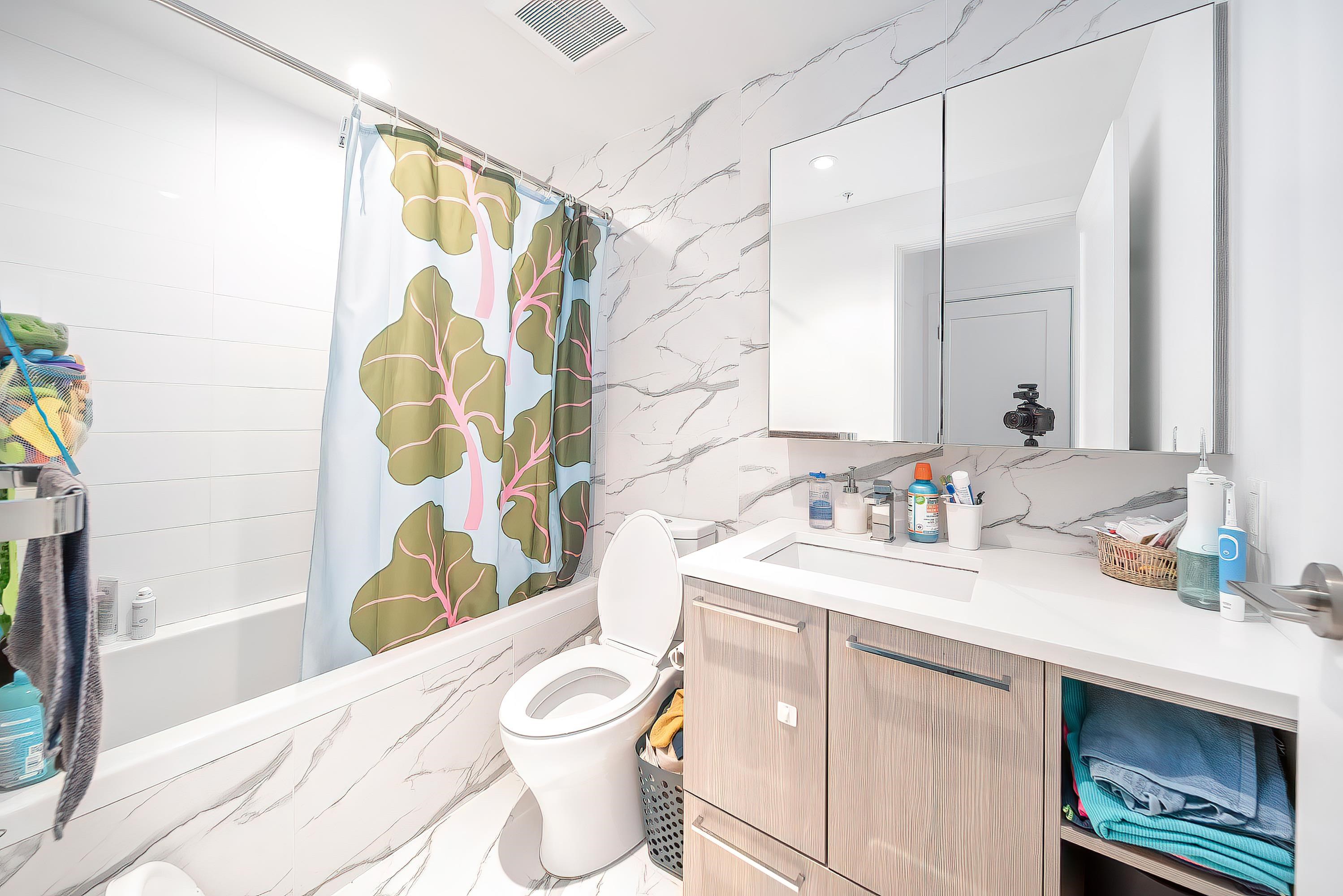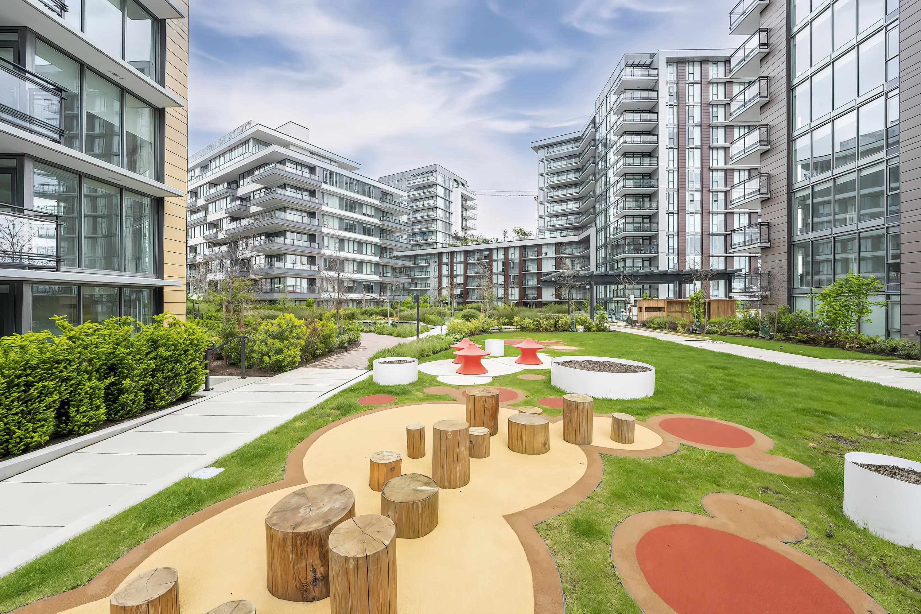 Prestigious ViewStar, prime location & top amenities. This home facing inside courtyard & beautiful water scaped gardens. Spacious 2 bedrooms,2 baths, open kitchen & dining, living room opens to huge full width balcony. Best layout. Air-con, high ceiling, deluxe cabinetry, Kohler fixtures, gas cooktop, with built in oven & microwave. 5 star amenities with party rooms, outdoor BBQ & dining area, water gardens, music room, swimming pool, sauna/steam etc. Steps to the Capstan skytrain, Canadian Tire, dyke trai...