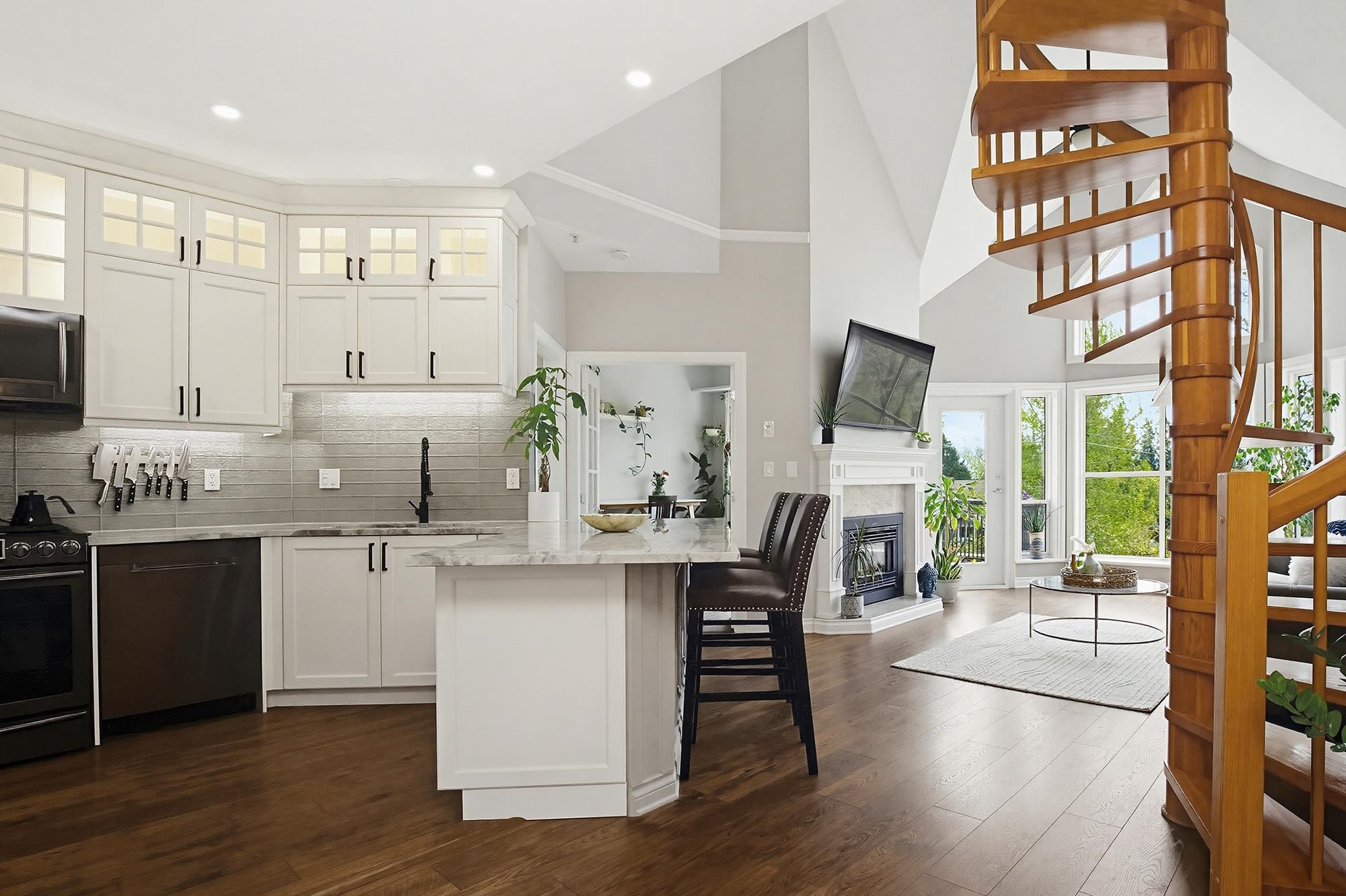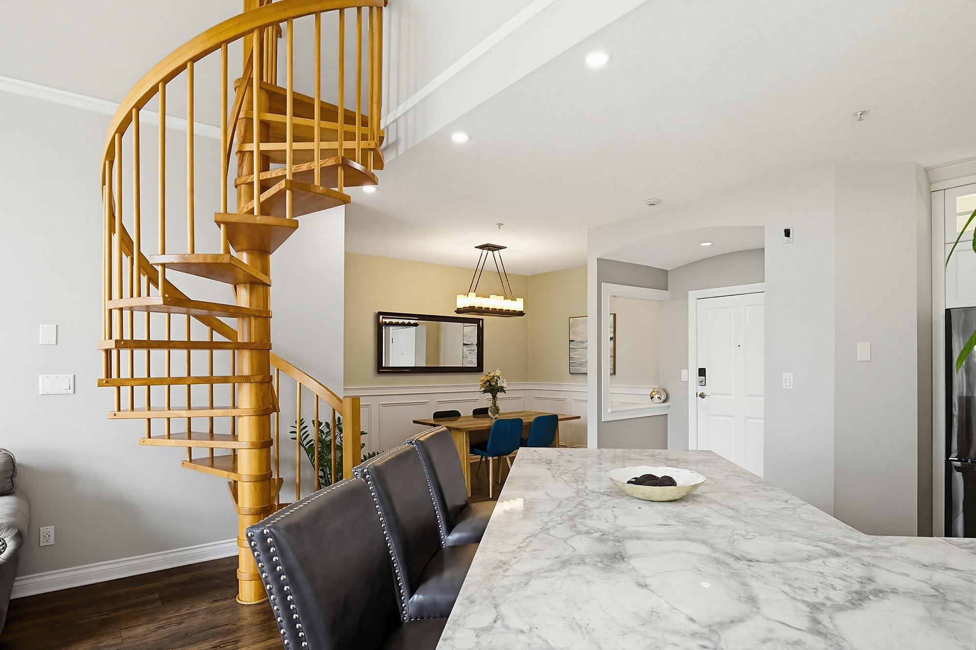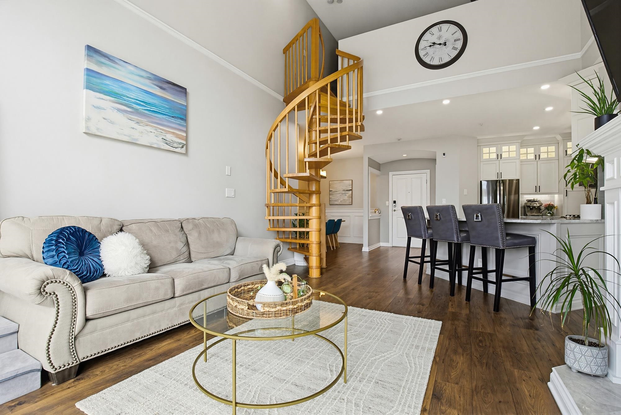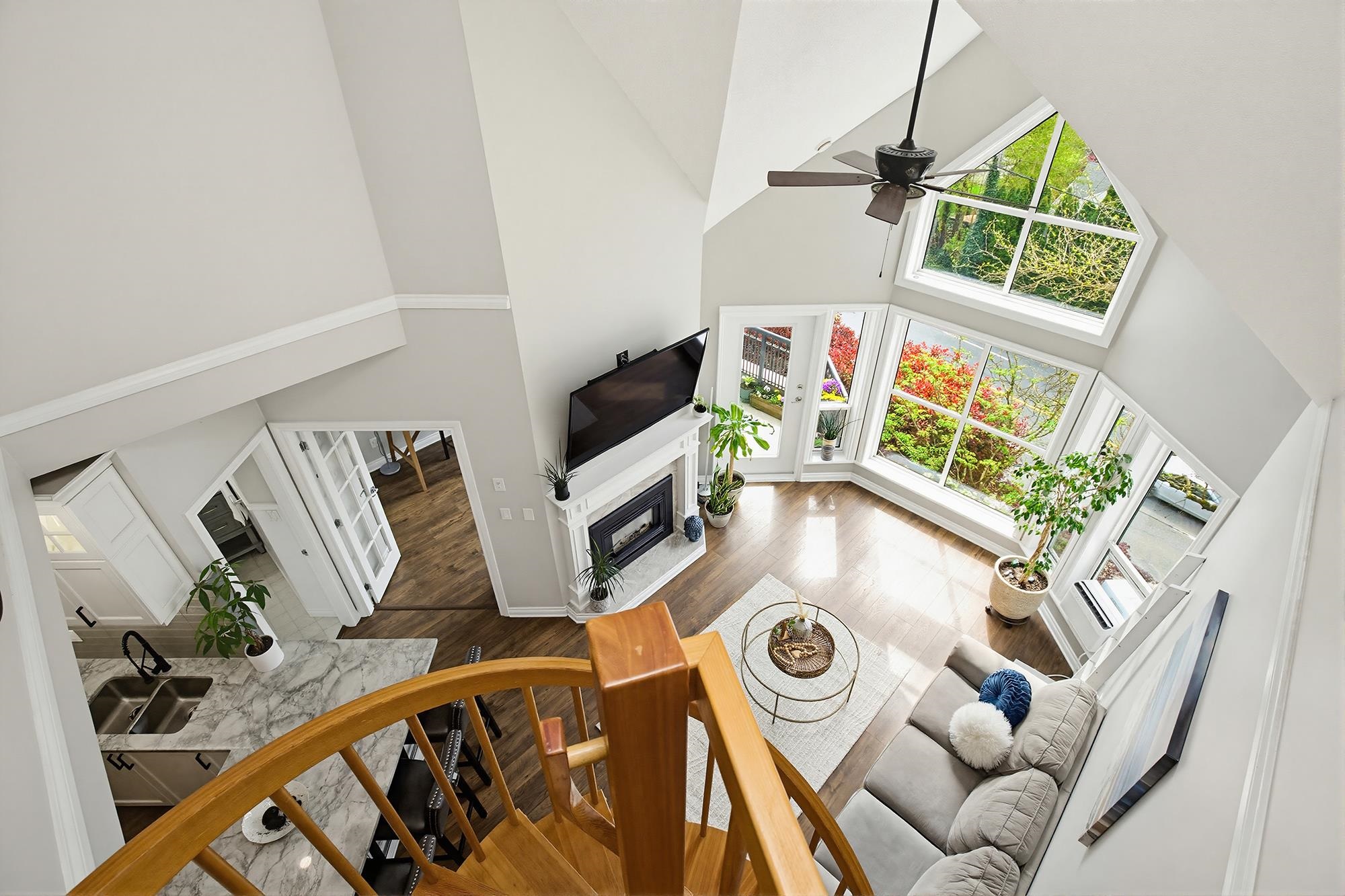 Yale Terrace's crown jewel! 2bd 2bth redefining elevated living w/Dramatic 18ft vaulted ceilings & floor-to-ceiling south-facing windows framing Mount Baker views. Stunning wooden spiral staircase to spacious loft, perfect as home office/gym/or media rm. Chef's kitchen anchored w/ rich marble countertops & floor-to-ceiling cabinets, bold architectural & maximizing the sleek and modern aesthetic. Premium stainless gas range & appliances, making this kitchen as functional as it is stunning. New recessed smart...