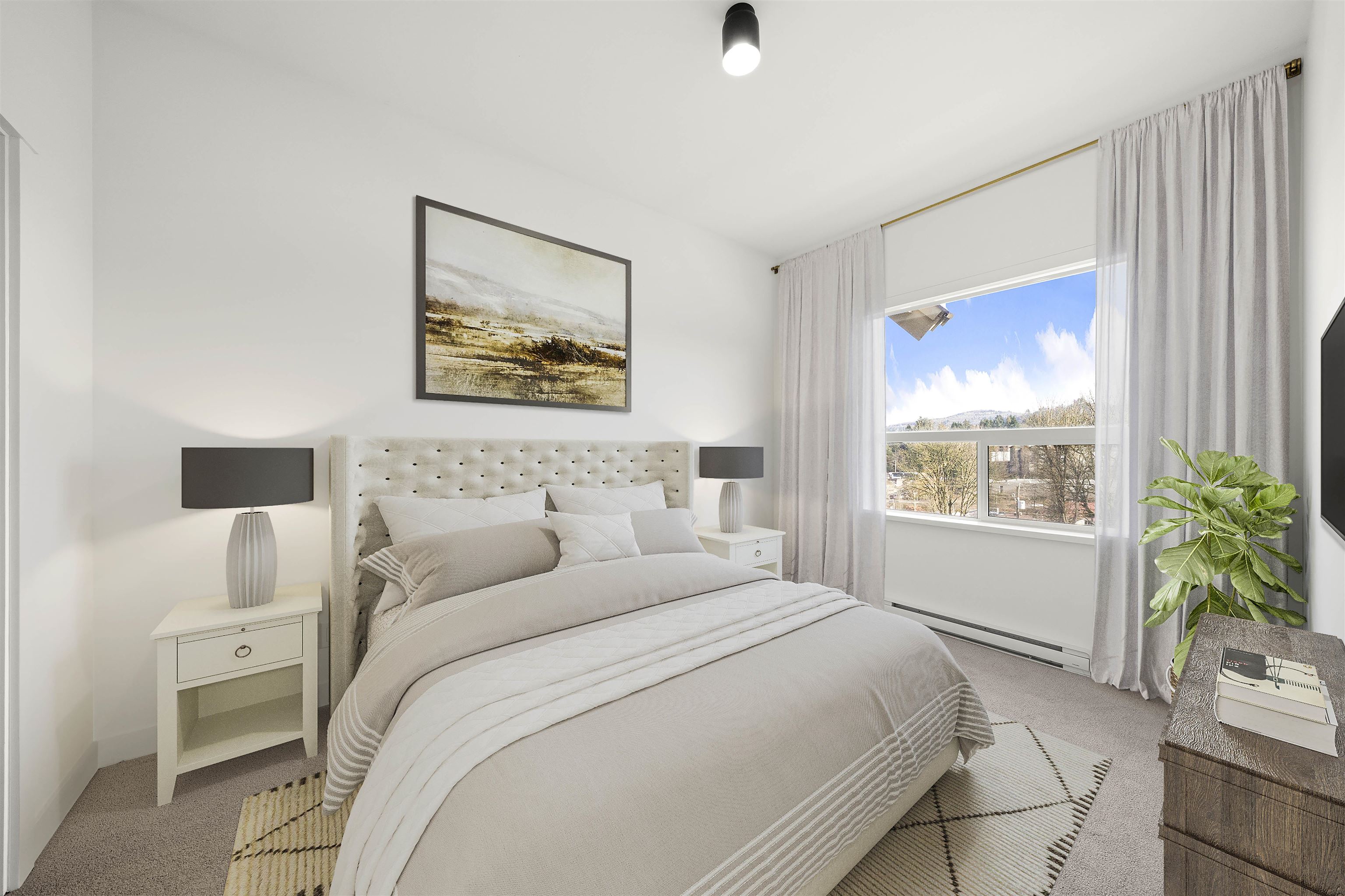 Welcome to UPPER MONTROSE in the heart of Central Abbotsford! The theme here is 2, with 2 Bed, 2 Bath, 2 Side by Side Parking, & 2 Lockers! This TOP FLOOR well-designed home offers 815 sq ft of contemporary living with beautiful MOUNTAIN VIEWS from your private balcony. The open-concept layout features 9’9 ceilings, AIR CONDITIONING, large windows, modern kitchen with quartz countertops, stainless steel appliances, gas range, gas hook up for BBQ, double vanity in ensuite bath, & huge walk in closet. For con...