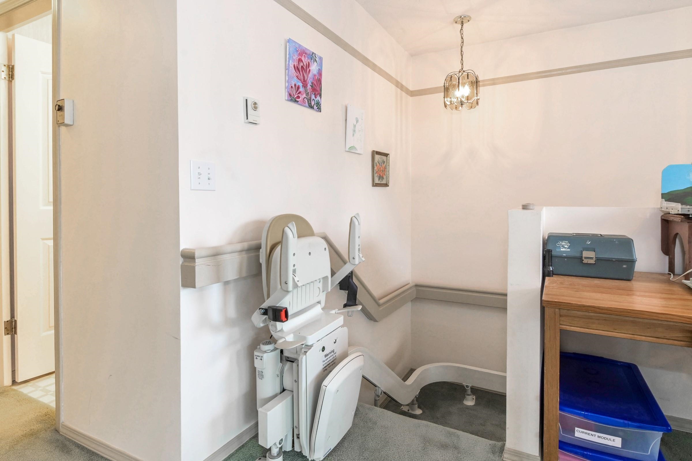 Terrific location - EDWARDS ESTATES is a quality, gated, 55+ complex.2 large bdrms with 2 full bathrooms - Upper floor end unit has lots of windows, and is very bright. Including an Acorn stairlift for those who need help getting up the stairs or for helping bring up the groceries. Large sundeck has hook up for natural gas barbeque - great for entertaining. Including in-suite laundry and an attached garage with direct access to your unit. The complex has a games room with shuffle board, a library and a gu...