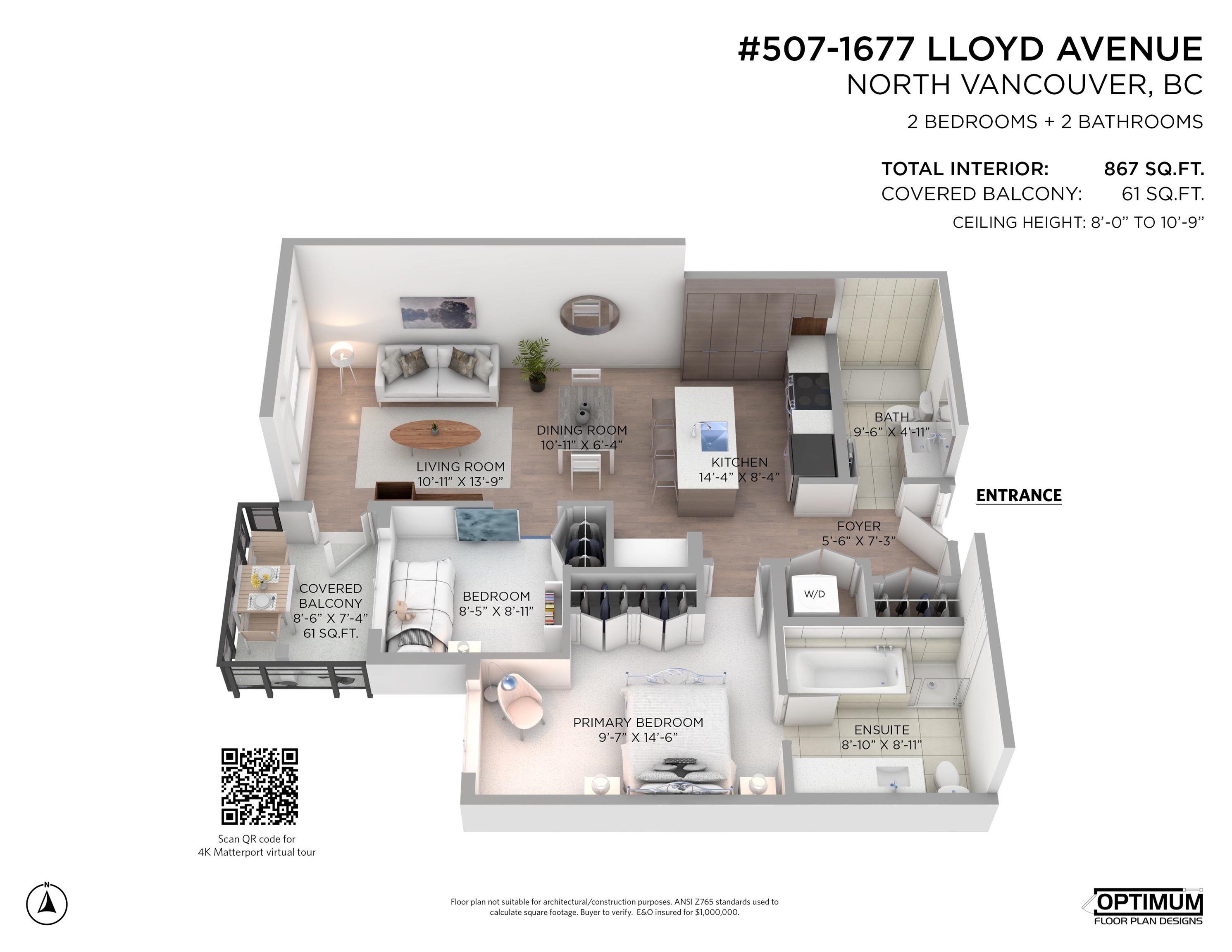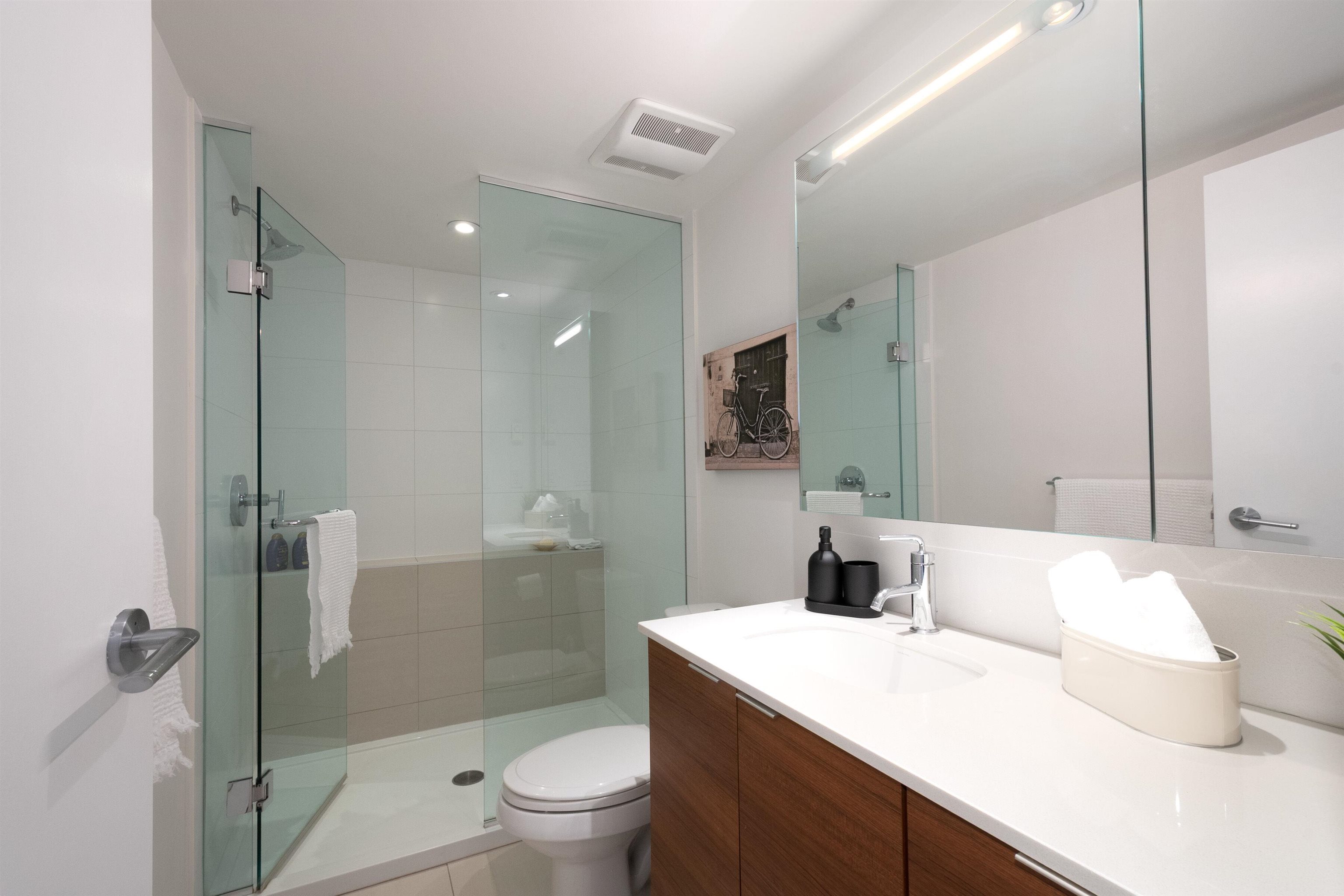 Move right into this exquisite top-floor home in District Crossing, a West Coast-designed building developed by the award-winning firm, Qualex-Landmark, & constructed by Marcon Homes. 11' high vaulted ceilings, a harmonious open floor plan & a fully covered outdoor balcony to sit back, enjoy the sunsets while the downtown city lights sparkle in the night. Grand-sized primary bedroom with a private en-suite that features a deep soaking tub & separate shower. Inviting kitchen with a pantry wall, island & stai...