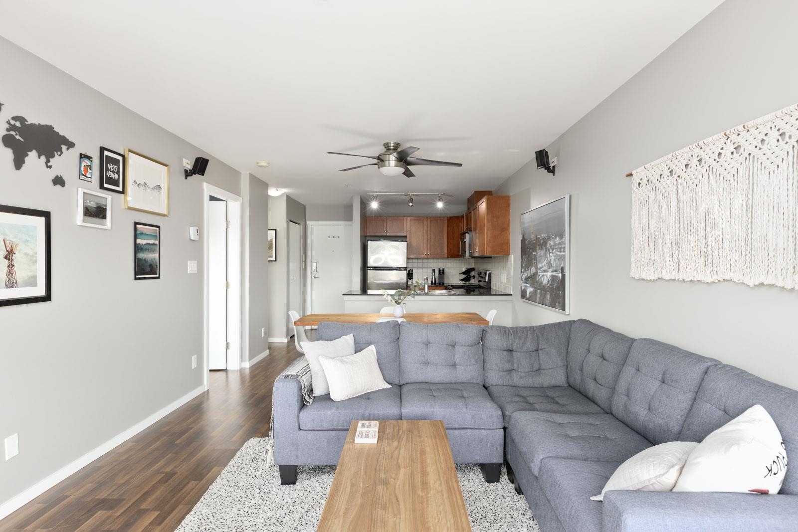 Welcome home to San Marino, nestled in the heart of the Sapperton neighbourhood of New Westminster. This open-concept condo offers a warm and welcoming living area featuring laminate flooring, over-height ceilings, and floor-to-ceiling windows that fill the home with abundant natural light. Enjoy your private southeast-facing balcony surrounded by greenery, offering a serene setting for quiet mornings or effortless entertaining. The kitchen is thoughtfully designed with contemporary cabinetry, granite count...