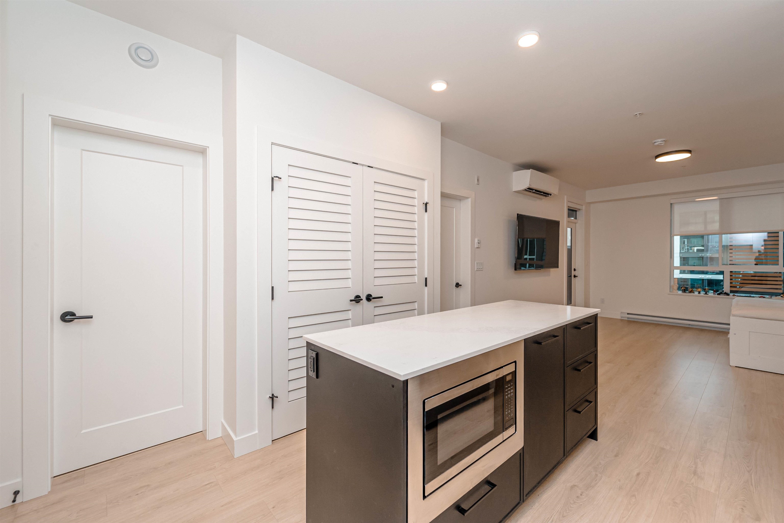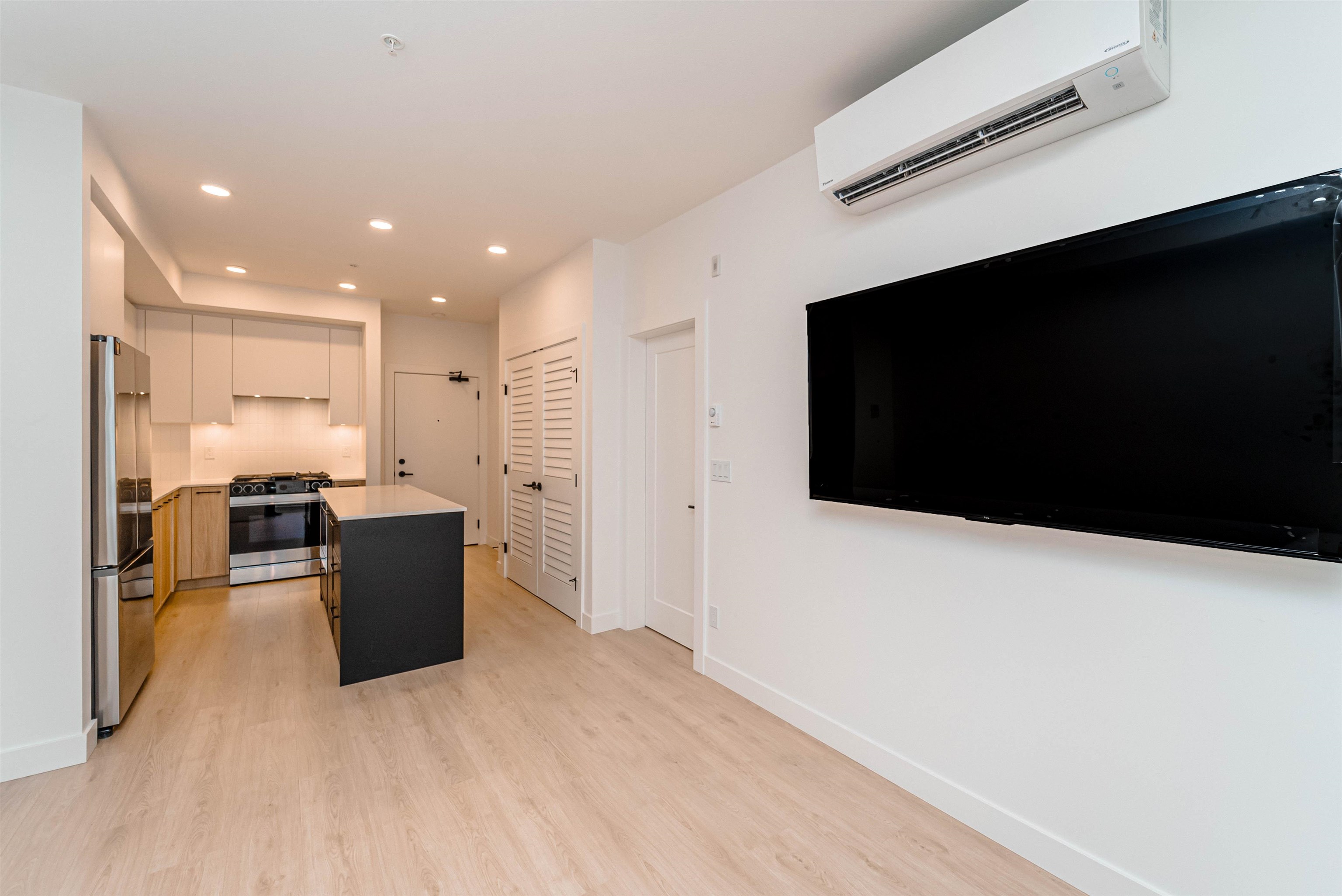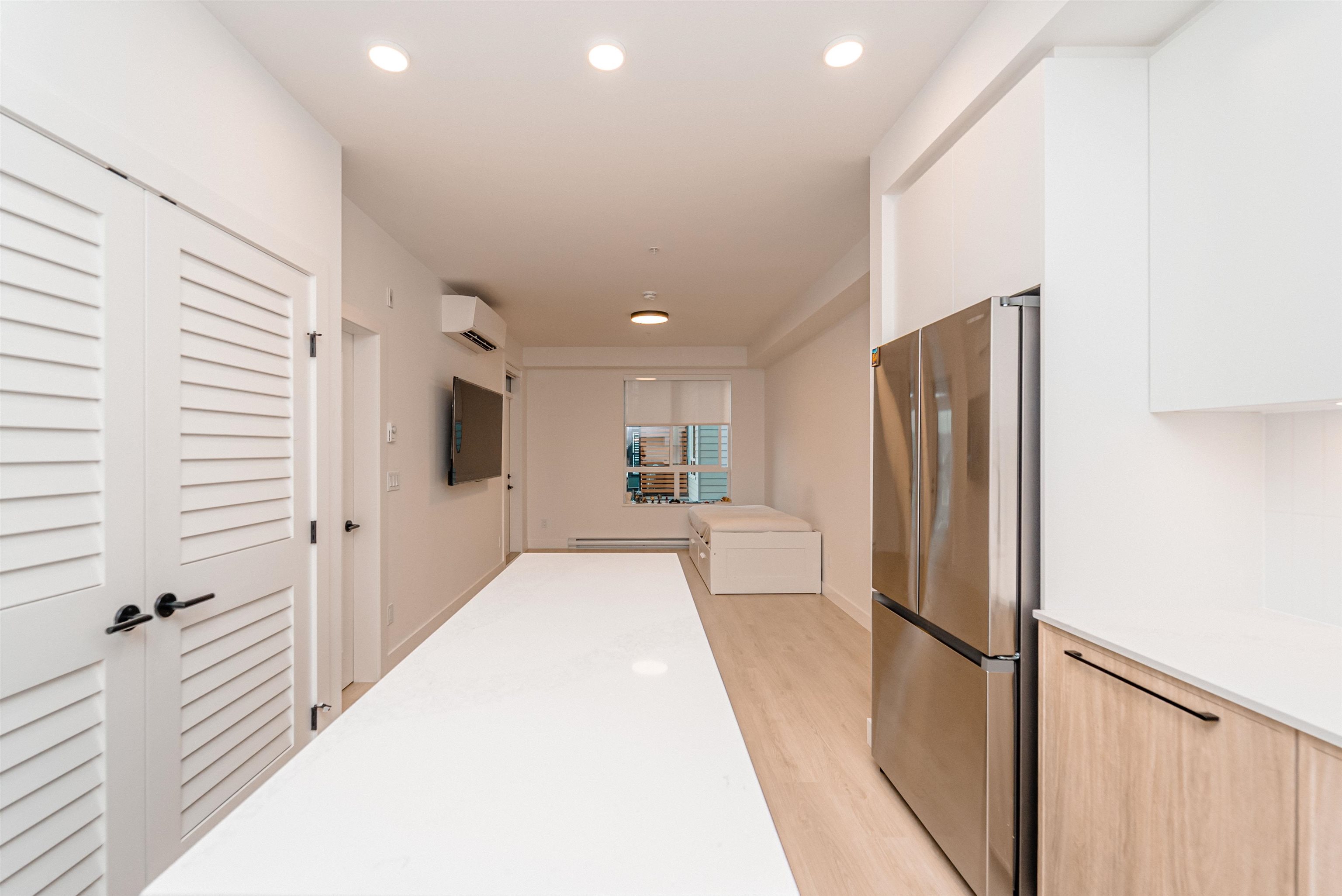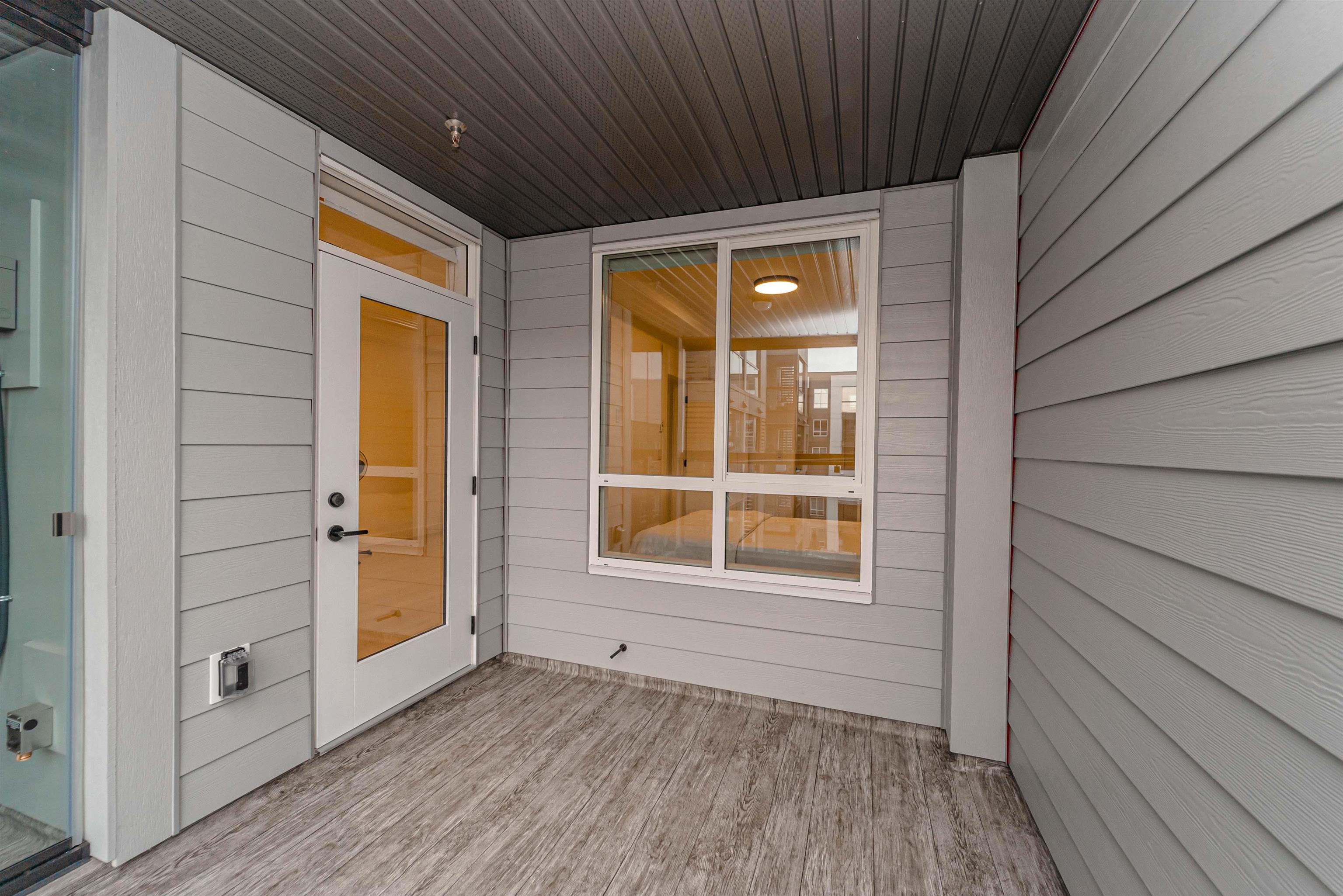 LIVE IN STYLE. Welcome to Hayer Town Centre located at 200 St & 76 Ave in West Langley, a master-planned community. Built in 2025- This unit plan features 1 bedroom, 1 bath, kitchen with quartz counter tops/ S/s appliances/ modern cabinetry, bright living area with air conditioning, in suite laundry and a spacious solarium with retractable upper glass. The stand-alone amenity building offers two entertainment spaces with a games and party room and opens onto two outdoor fire-pits and a fully fenced dog park...