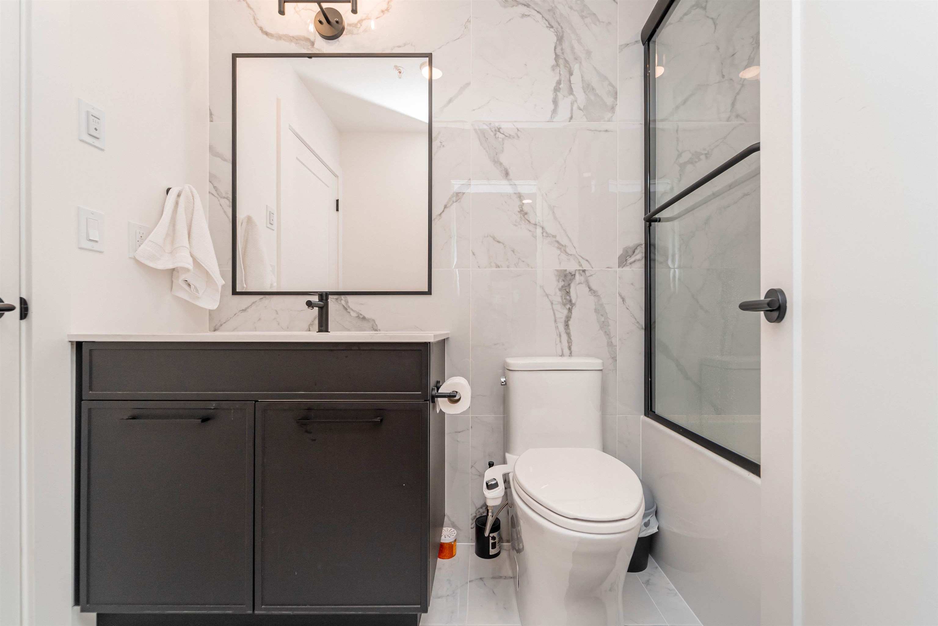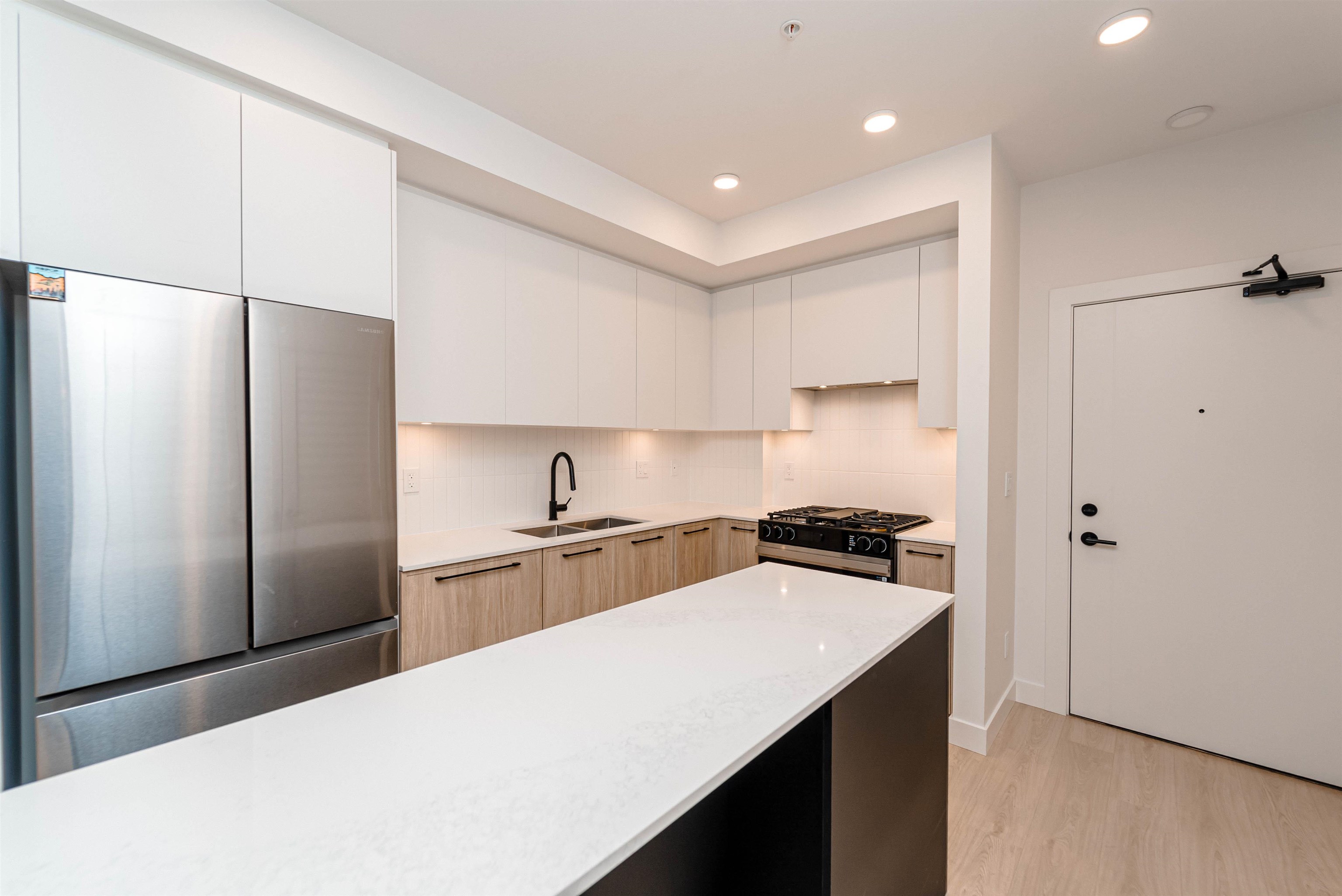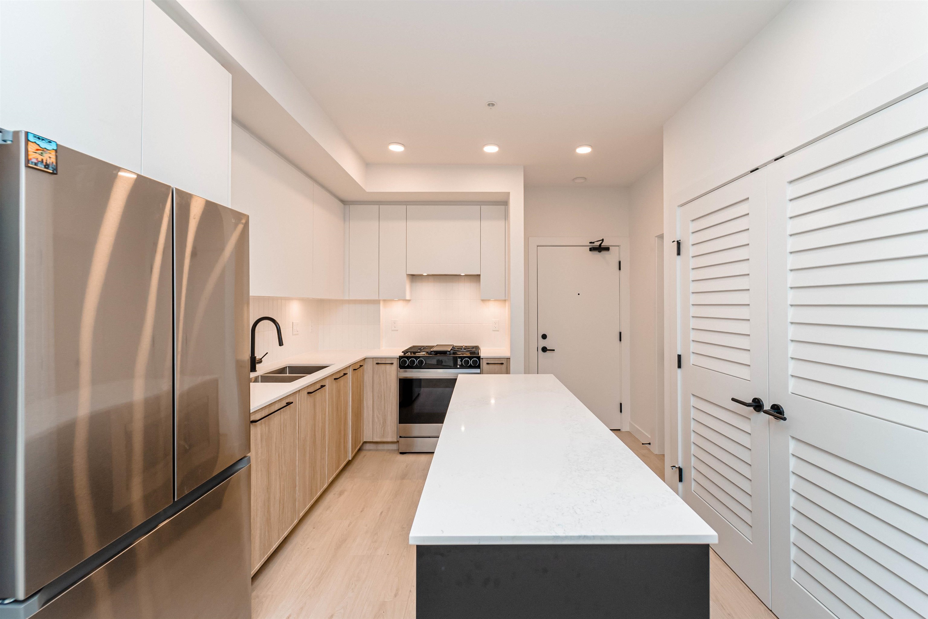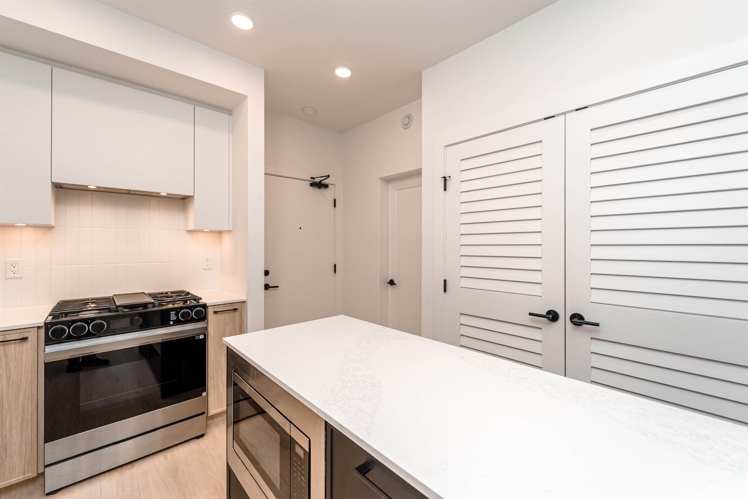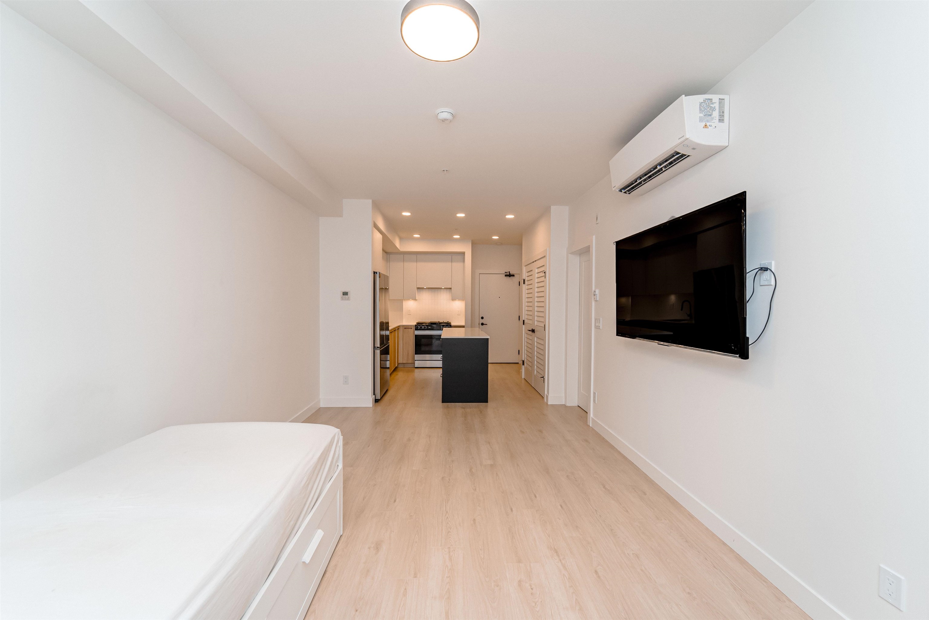 LIVE IN STYLE. Welcome to Hayer Town Centre located at 200 St & 76 Ave in West Langley, a master-planned community. Built in 2025- This unit plan features 1 bedroom, 1 bath, kitchen with quartz counter tops/ S/s appliances/ modern cabinetry, bright living area with air conditioning, in suite laundry and a spacious solarium with retractable upper glass. The stand-alone amenity building offers two entertainment spaces with a games and party room and opens onto two outdoor fire-pits and a fully fenced dog park...