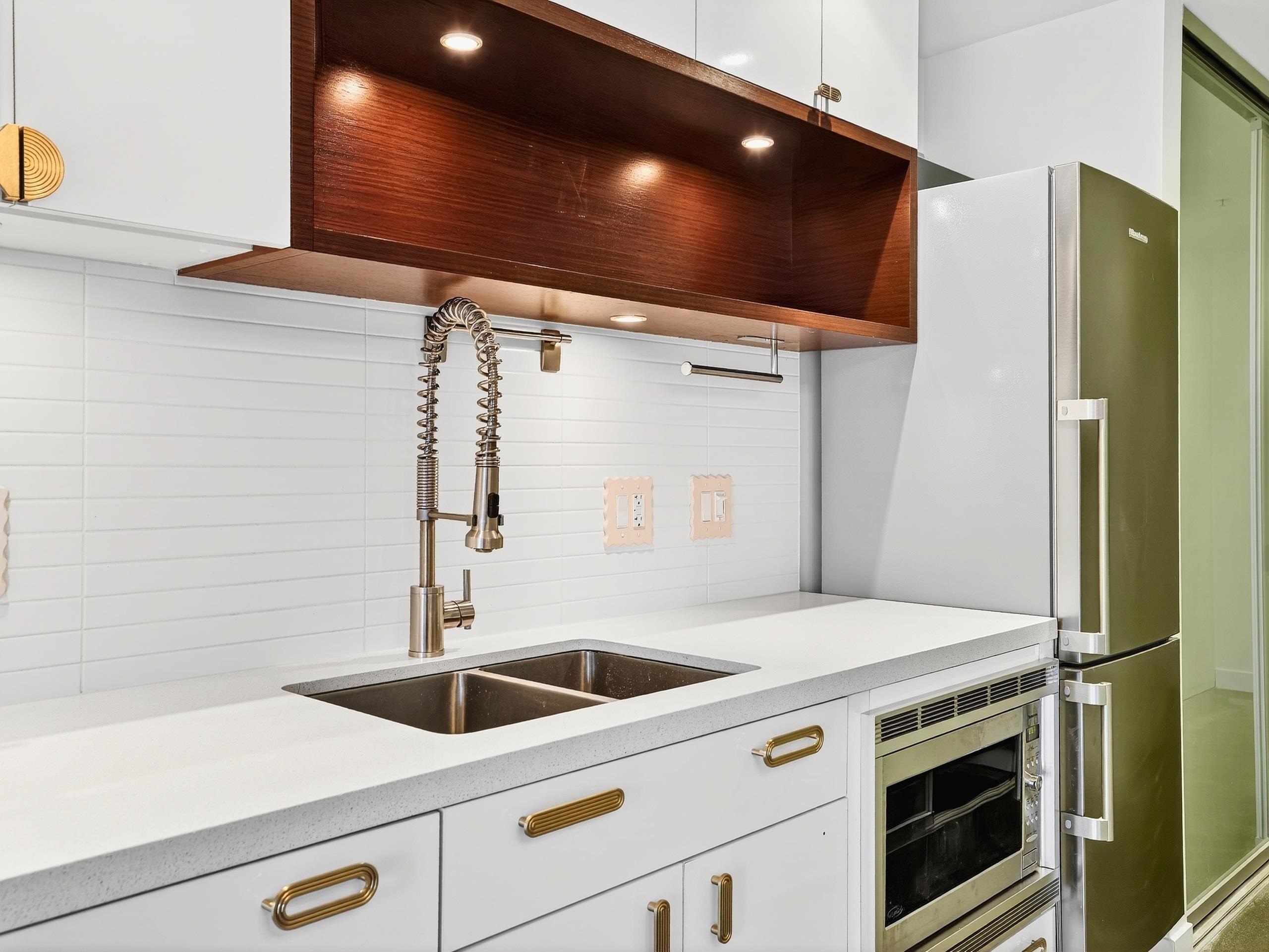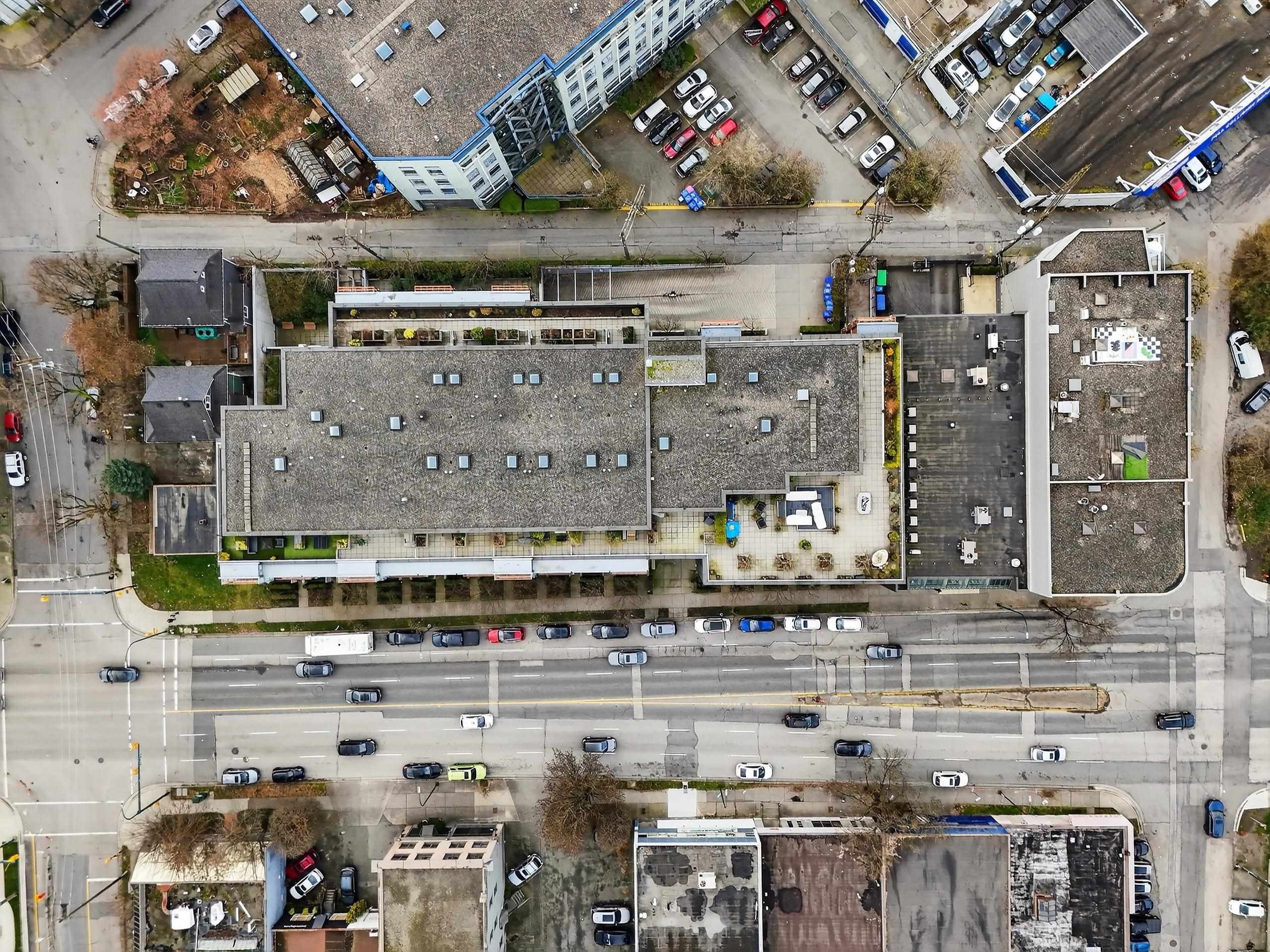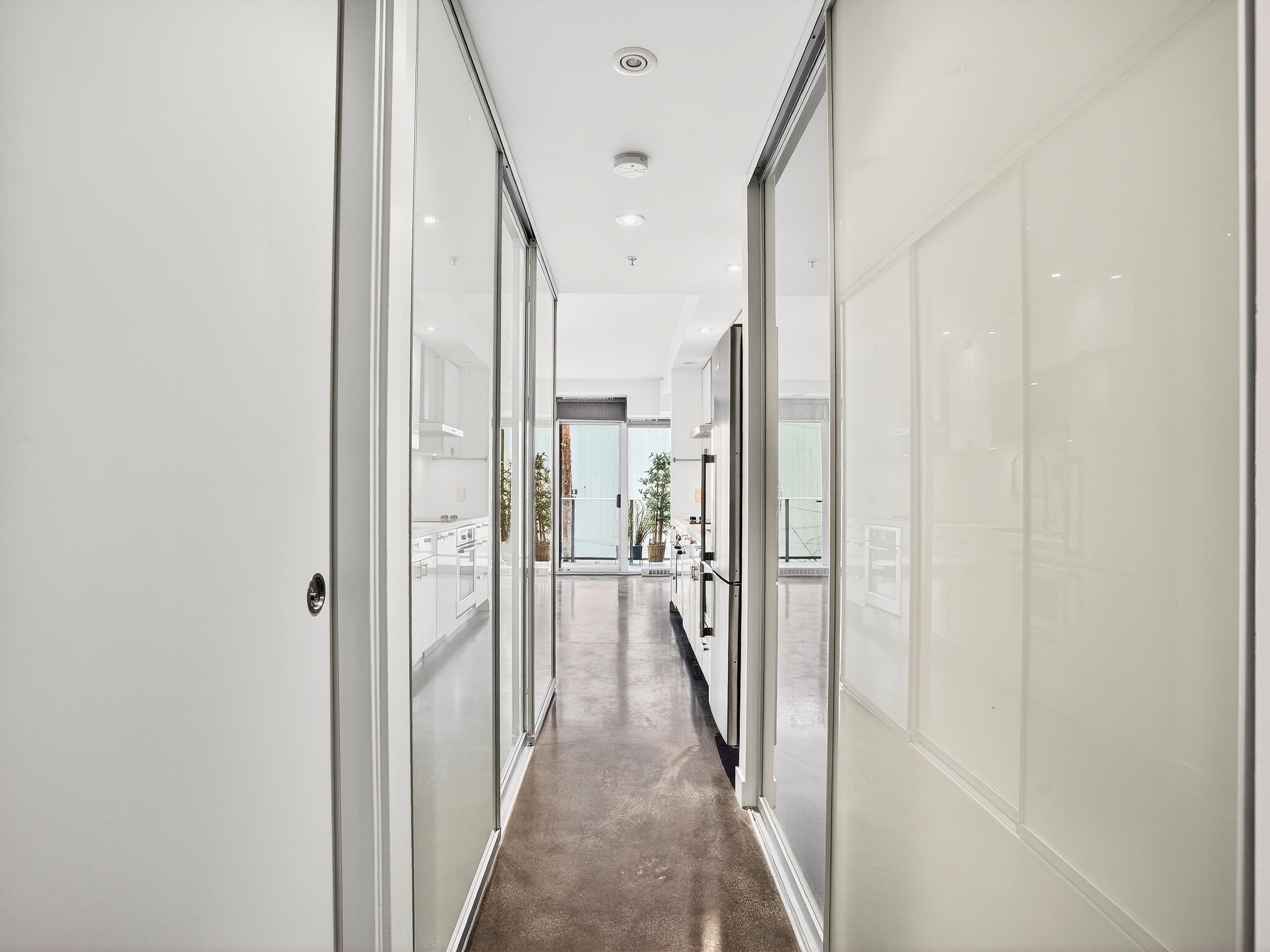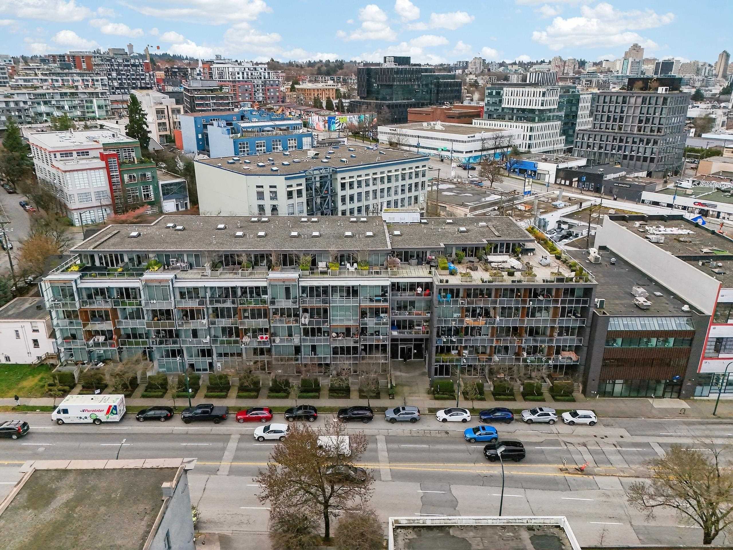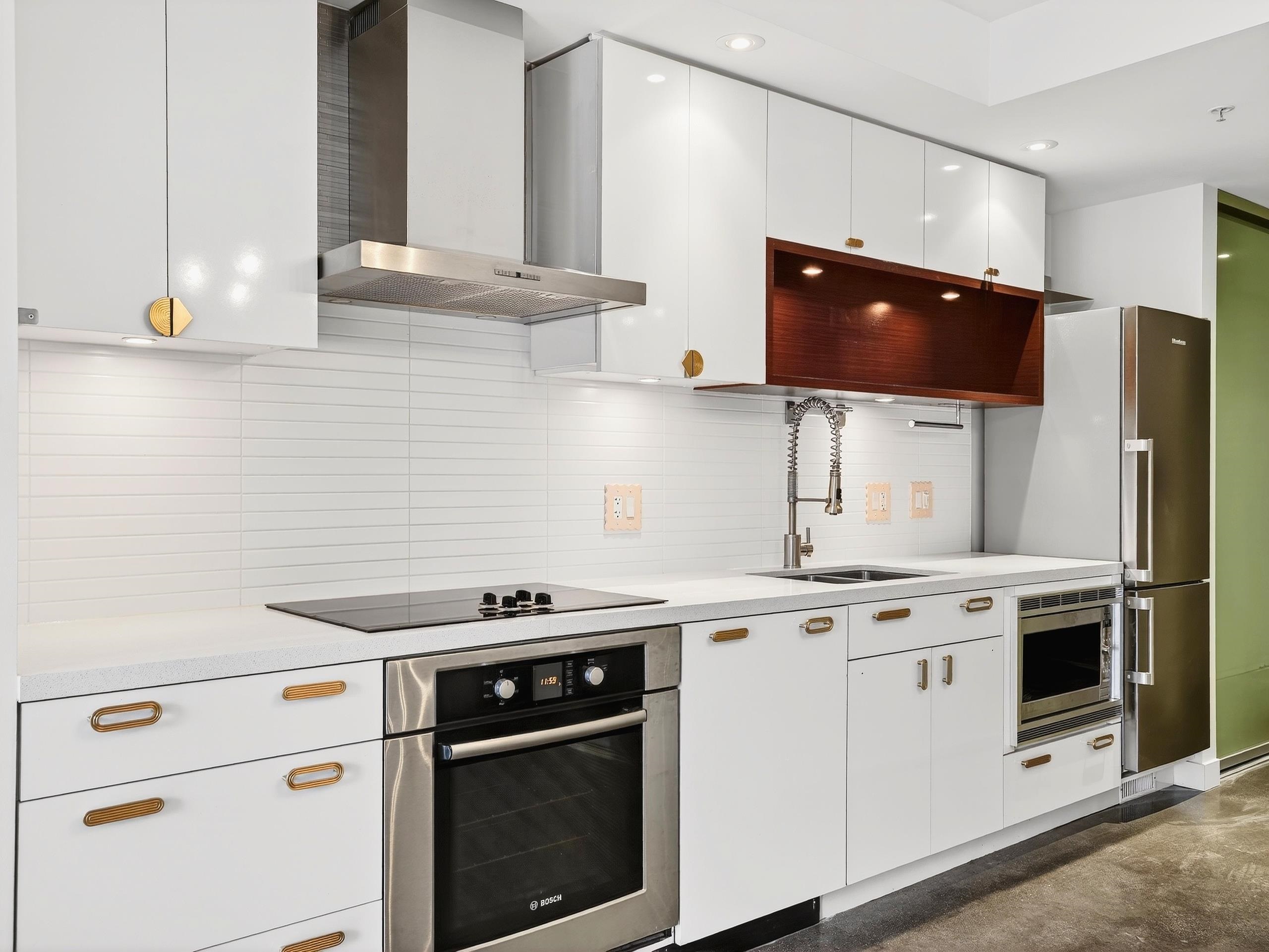 Don't Miss! Freshly painted sub-penthouse concrete corner unit on the quiet side of the building overlooking a vibrant community garden hosting markets, theatre and live music. Built in 2009 with 2 elevators and a proactive strata with a healthy CRF. This bright home features $25K in California Closets upgrades, a chef’s kitchen with Bosch & Blomberg appliances, double undermount sink, in-suite laundry, spacious bath with walk-in shower and a bedroom with frosted retractable glass panels that fits a king be...