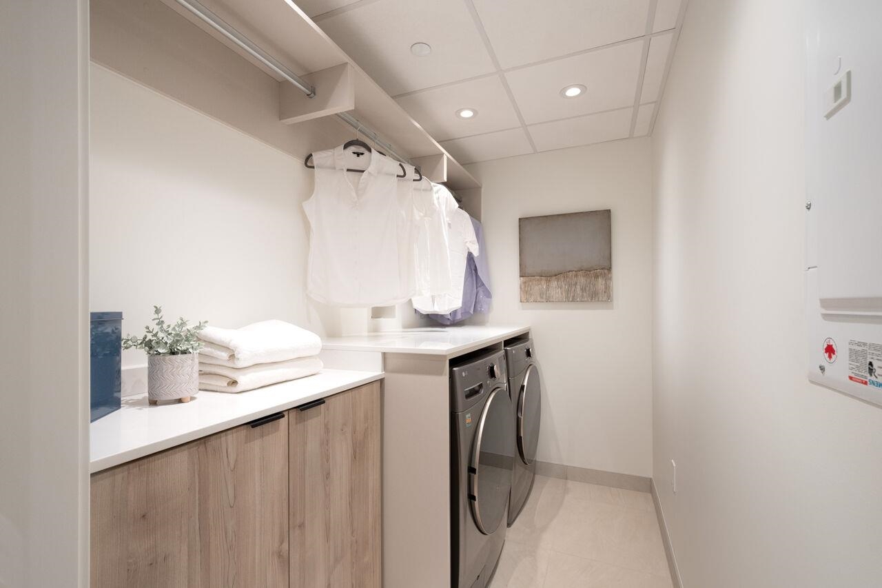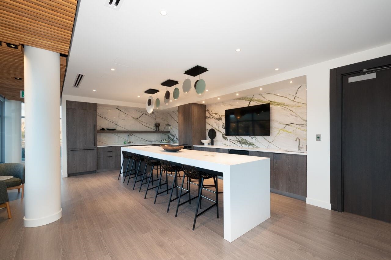 Imagine sipping your morning coffee or a glass of wine with family & friends, BBQing on your large stunning sunny south facing unobstructed waterfront view private deck, all watching gorgeous sunsets! 3 Bdrm, 3 bath almost 1600sf corner suite with a wall of windows to your expansive view to dtn Van. Just built by Bosa/Concert in West Coast Modern, concierge, rooftop terraced social lounge, gym, bike & private locker plus pkg included. Kings Mill Park out your door onto the 35 km Spirit Trail, walking 10 mi...