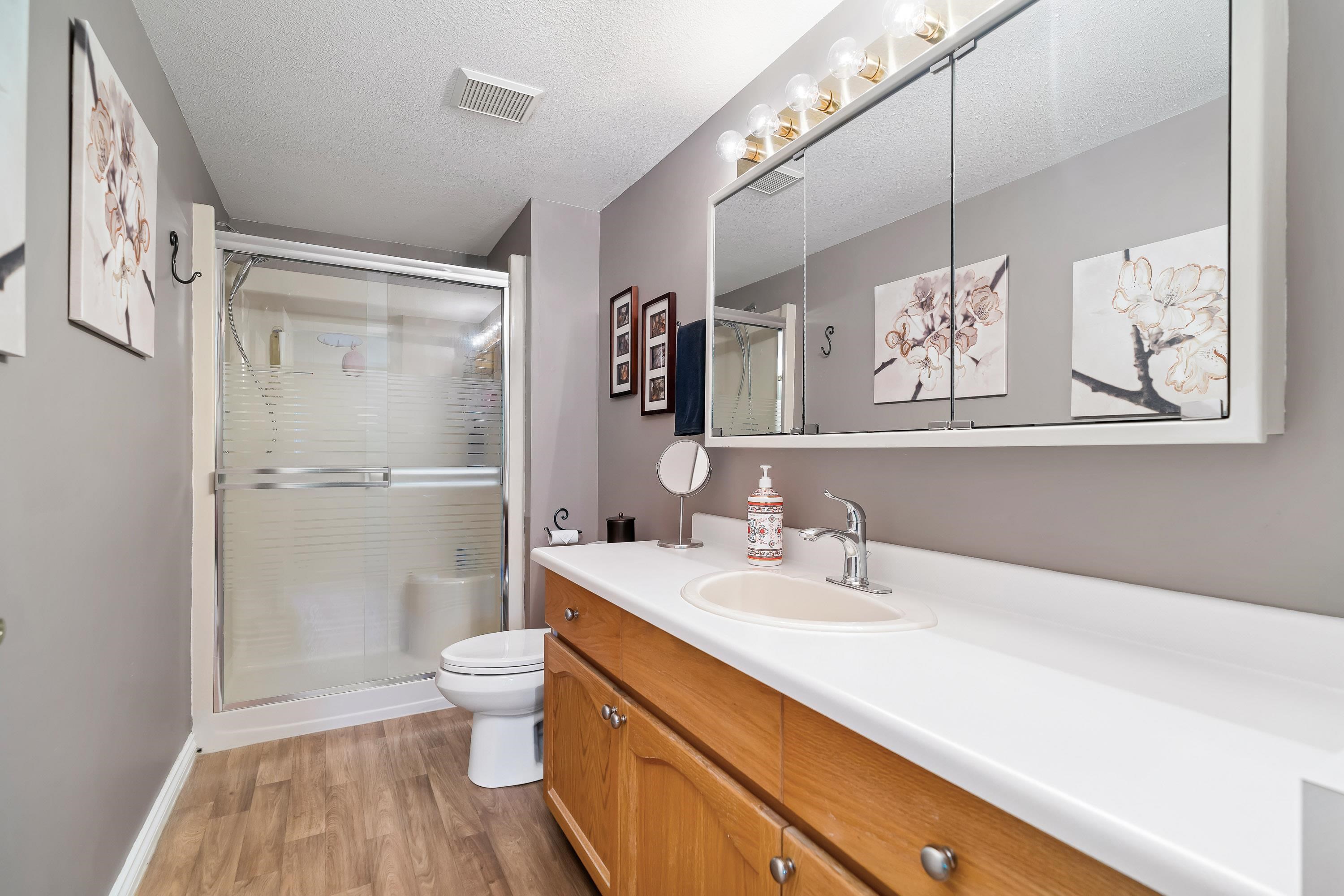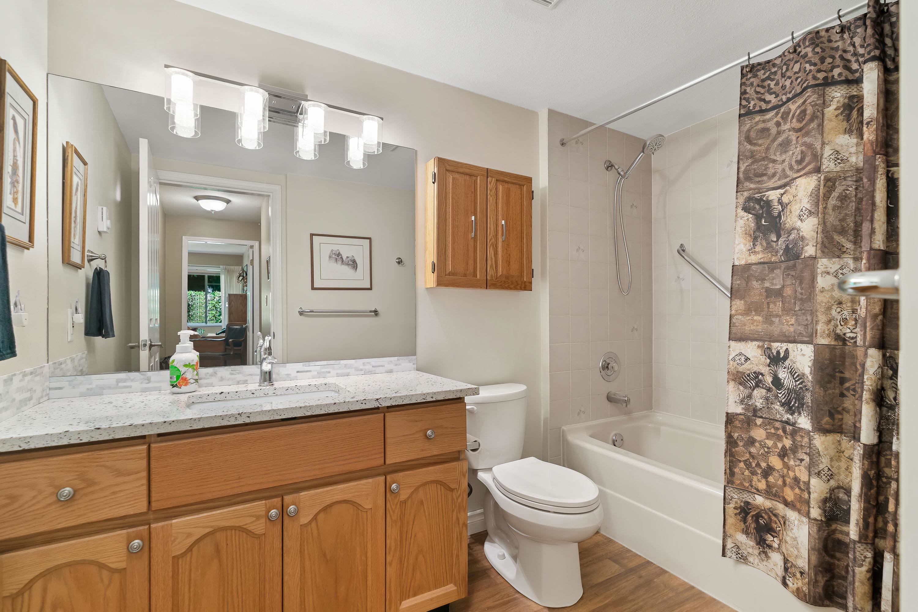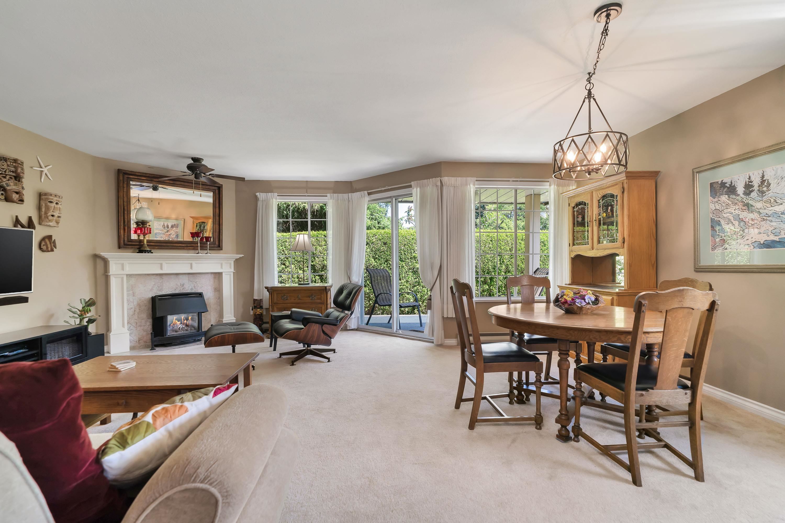 Sought after Cedarbrook Village! This Immaculate Ground floor, End unit with extra windows to let in all the light is in a prime location close to shopping, dining, and transit. This spacious unit features 2 bedrooms, 2 bathrooms, cozy gas fireplace, 1 car garage, and convenient updates throughout, plus a beautifully landscaped and private outdoor space for you to enjoy. Brand new roof just completed! This well maintained 55+ complex is ready for you.