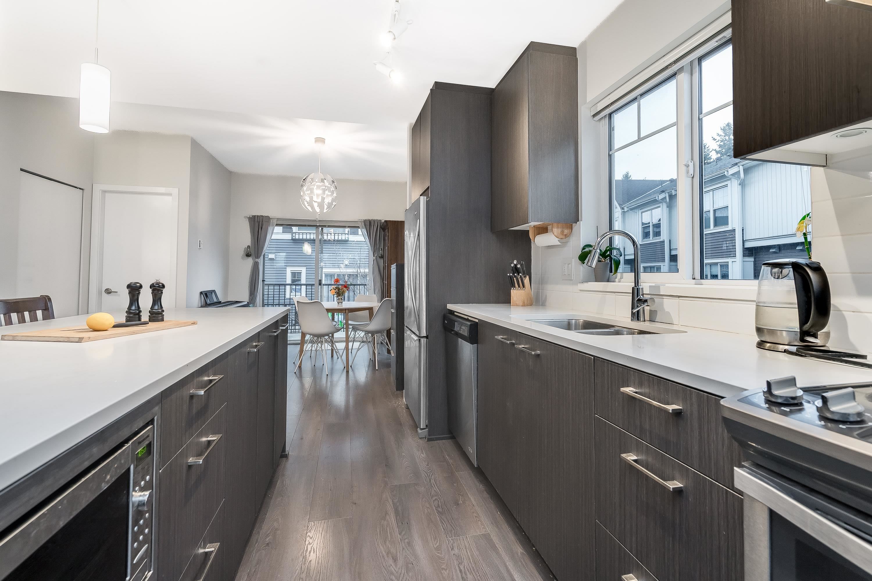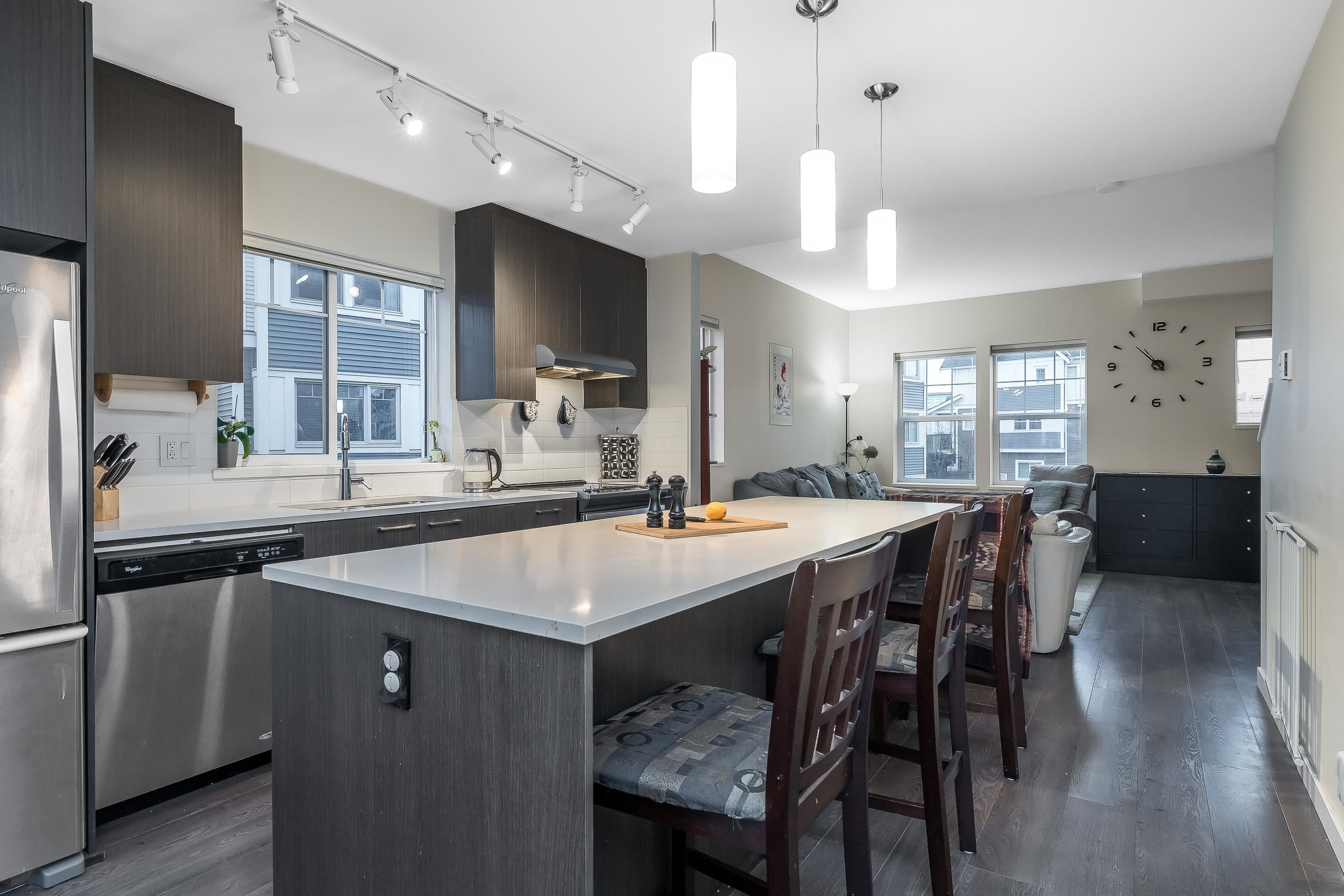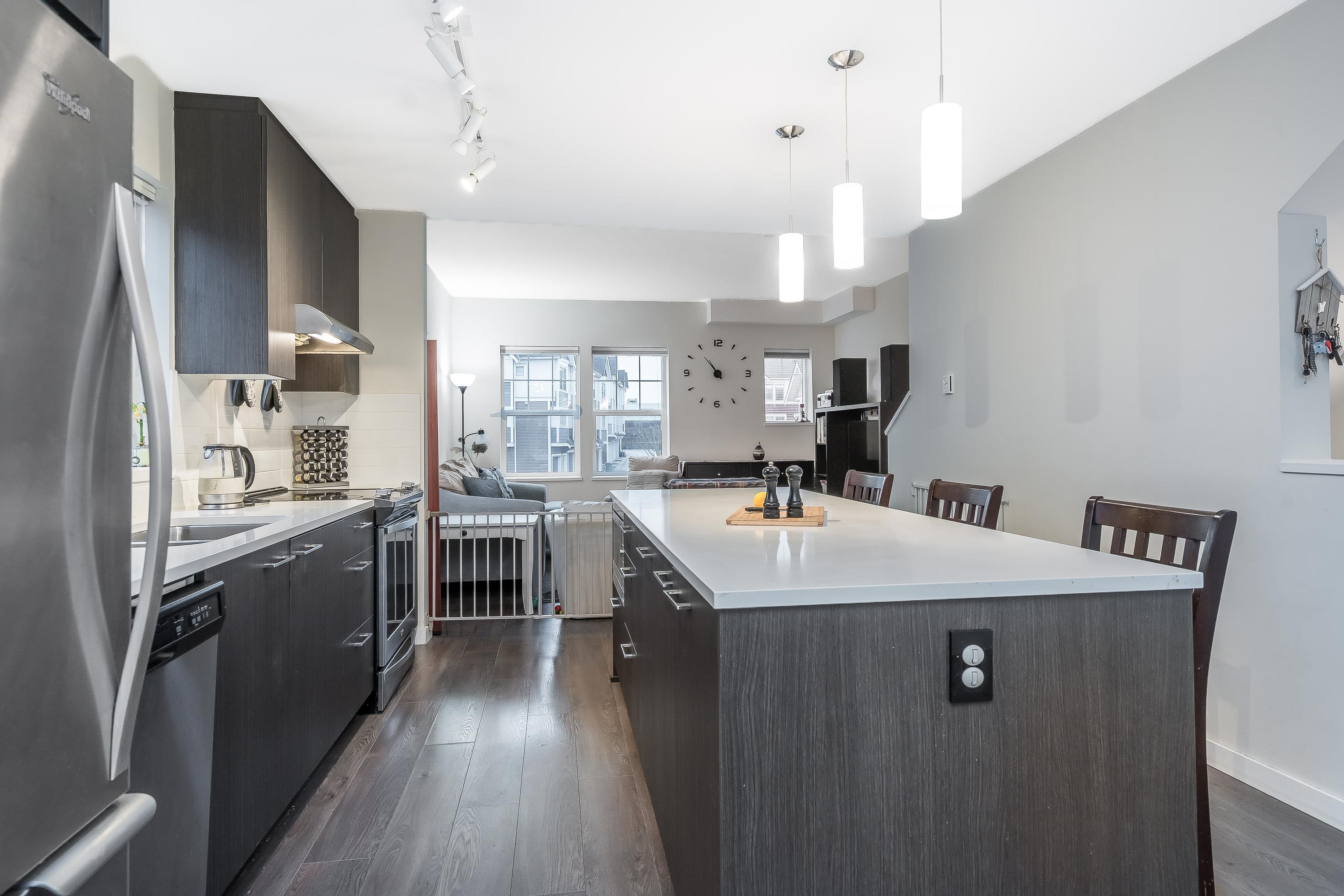 END UNIT Exceptional townhome in a prime, quiet location within the complex. Bright open-concept layout featuring a 10+ ft quartz island with white countertops, stainless steel appliances, and sun-filled living spaces. Enjoy sunset views from the living room and morning sun in the kitchen. Patio and sun deck open to a private, fully fenced outdoor space for pets and children. REC Facility on site! Three large bedrooms up, two full bathrooms, and a double-deep tandem garage with space for office or gym. Buil...