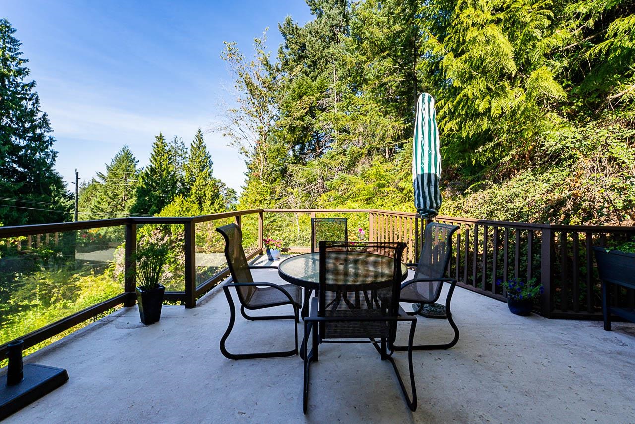 LARGE PRIVATE 21,597 sq.ft. lot with partial ocean views. This bright family home perched on a quiet street features an open floor plan on the main level with renovated kitchen, lots of skylights, hardwood floors and beautiful beams. Lots of decks to enjoy your SOUTH WEST exposure. On the main you will find both a gas and wood burning fireplace for those cold winter days. Offers two bedrooms up with two full bathrooms and downstairs you will find a further two bedrooms and one full bathroom. Exterior fresh...
