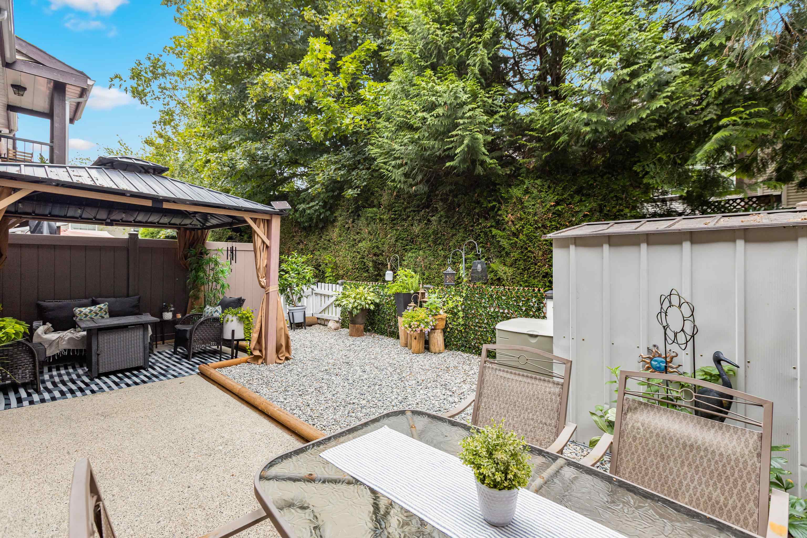 Tucked away on the quiet west side of the complex, this family-friendly 3 bed, 2 bath townhouse offers the perfect start to home ownership. Bright main floor with laminate flooring, a separate dining area, and a well-appointed kitchen with peninsula seating & SS appliances, plus an inviting living room with gas fireplace for cozy nights in. Upstairs features 3 comfortable bedrooms, 2 full baths & convenient laundry. Step outside to your own private backyard with a covered gazebo lounge & patio—ideal for mor...