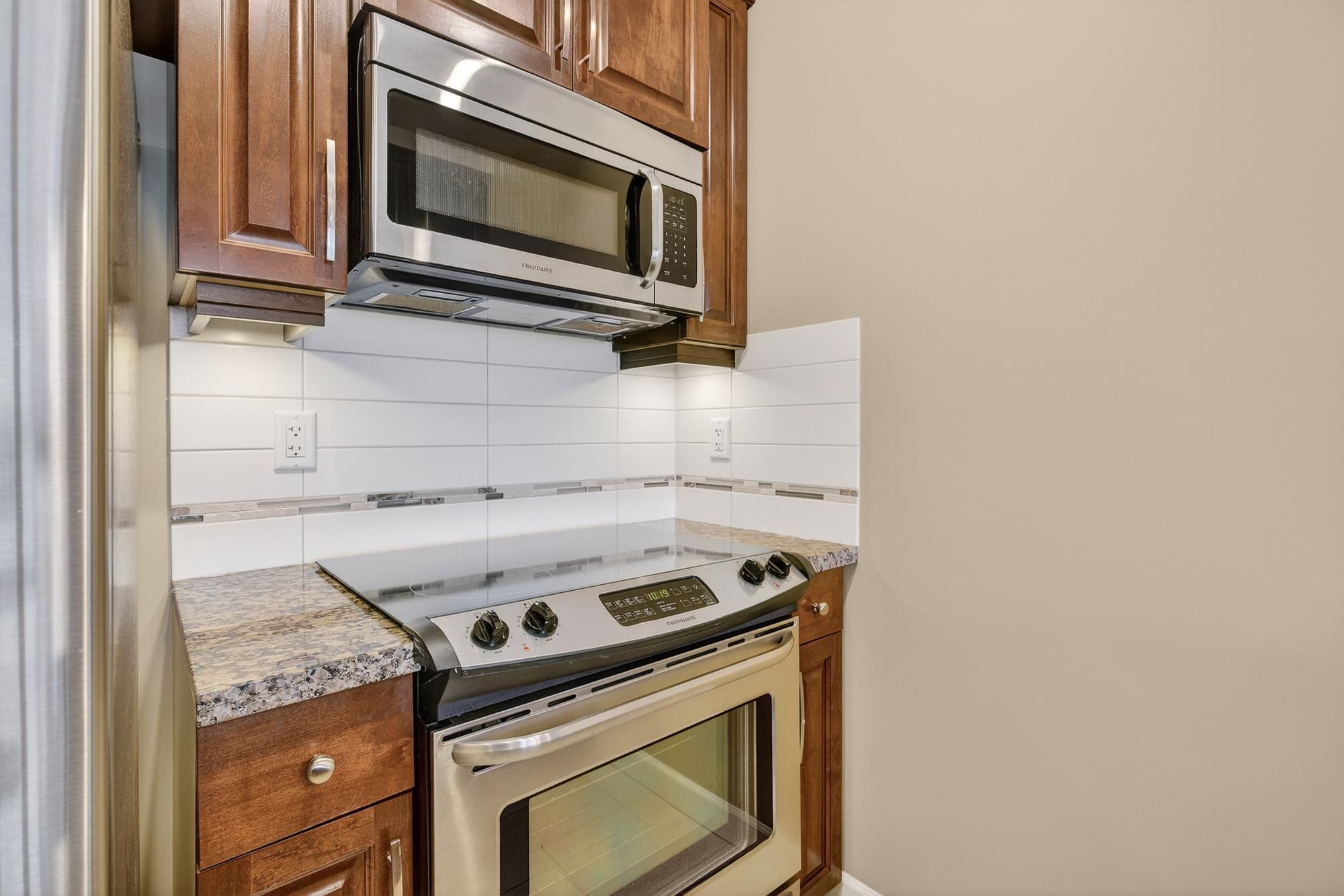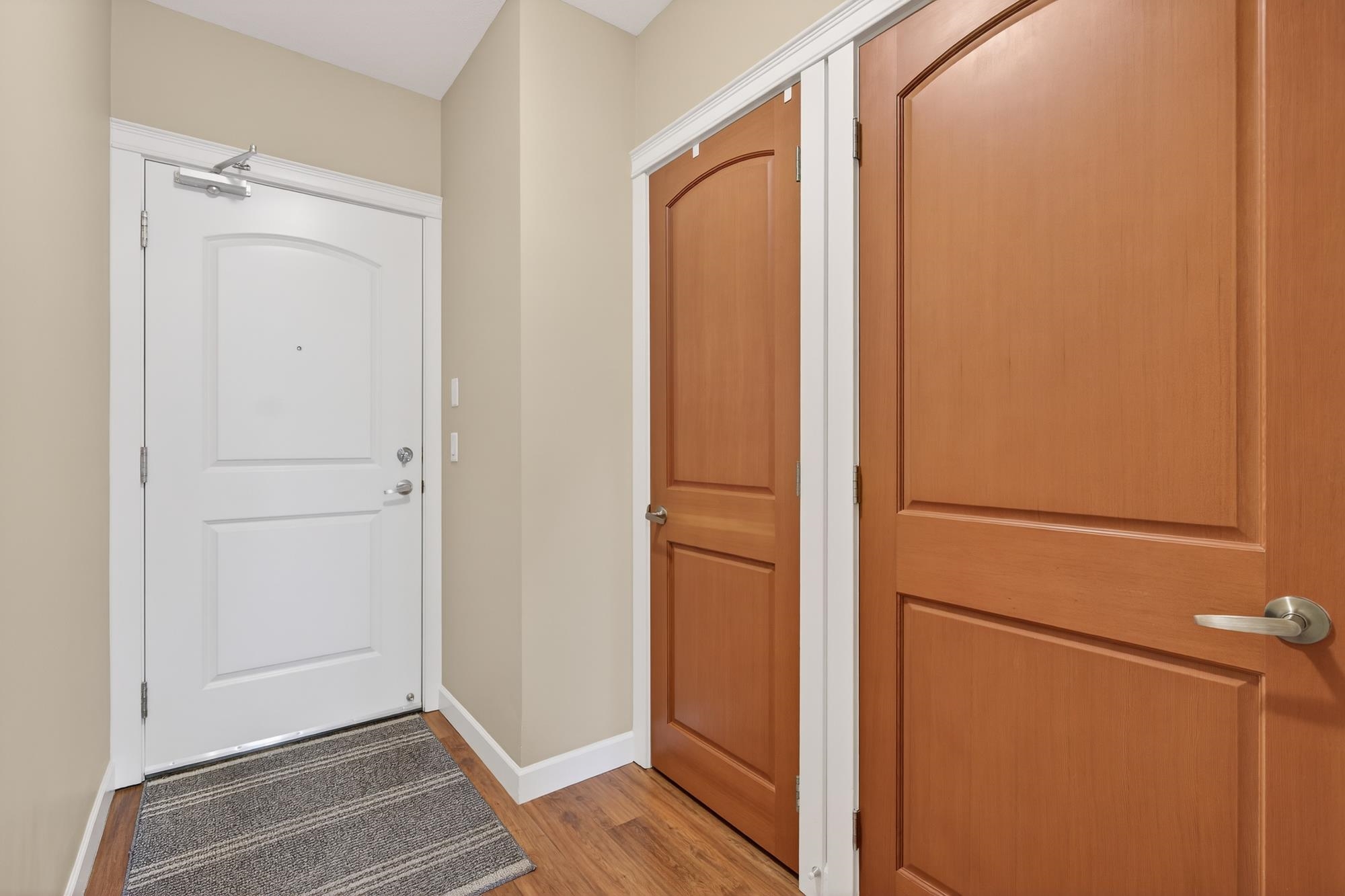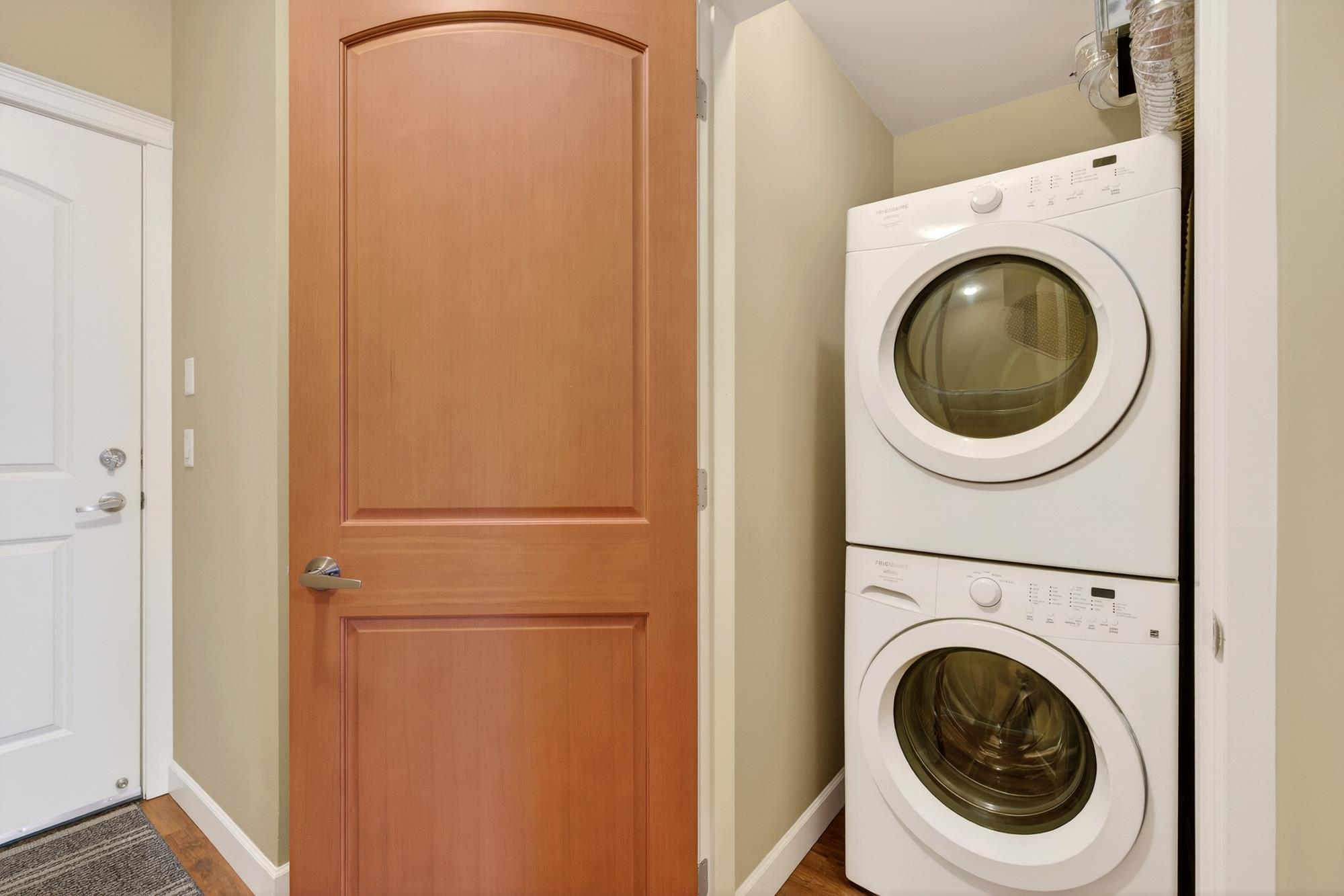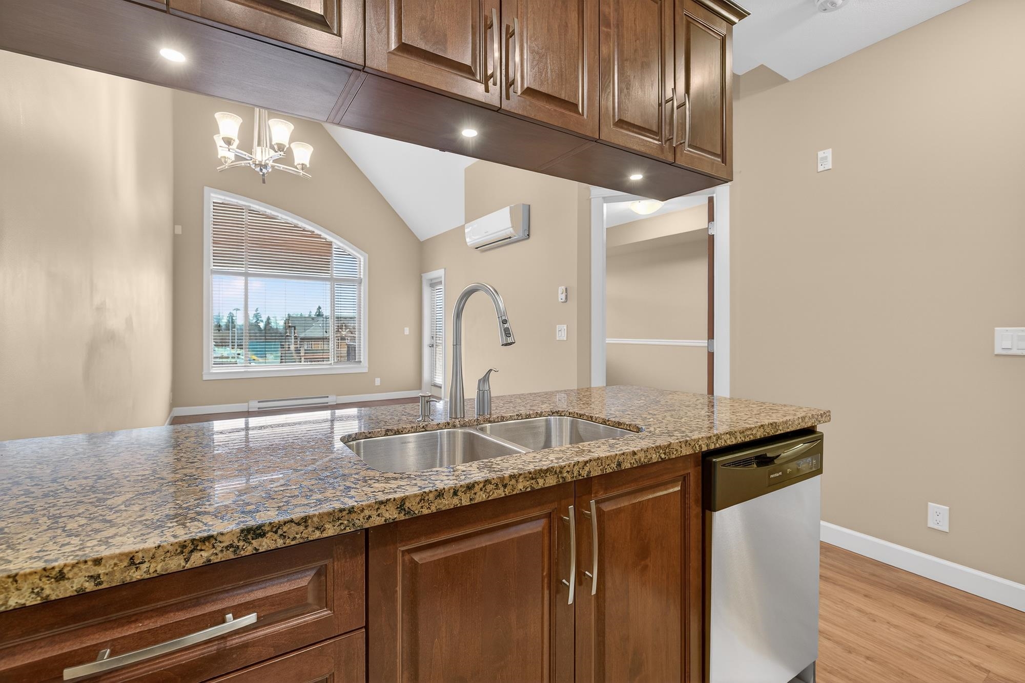 TOP FLOOR PENTHOUSE WITH SOARING CEILINGS AND A QUIET, WESTWARD VIEW! This one's perfect. Immaculately-maintained, air-conditioned, with 2 parking spaces and an oversized storage locker right at your parking stall. With views of the park from your west-facing living area and deck, you get natural light. Stone counter tops, hardwood cabinets, high-durability vinyl plank flooring and a lot of pluses. Walnut Ridge is known also for being one of the most soundproof buildings in the area, with high-level constru...