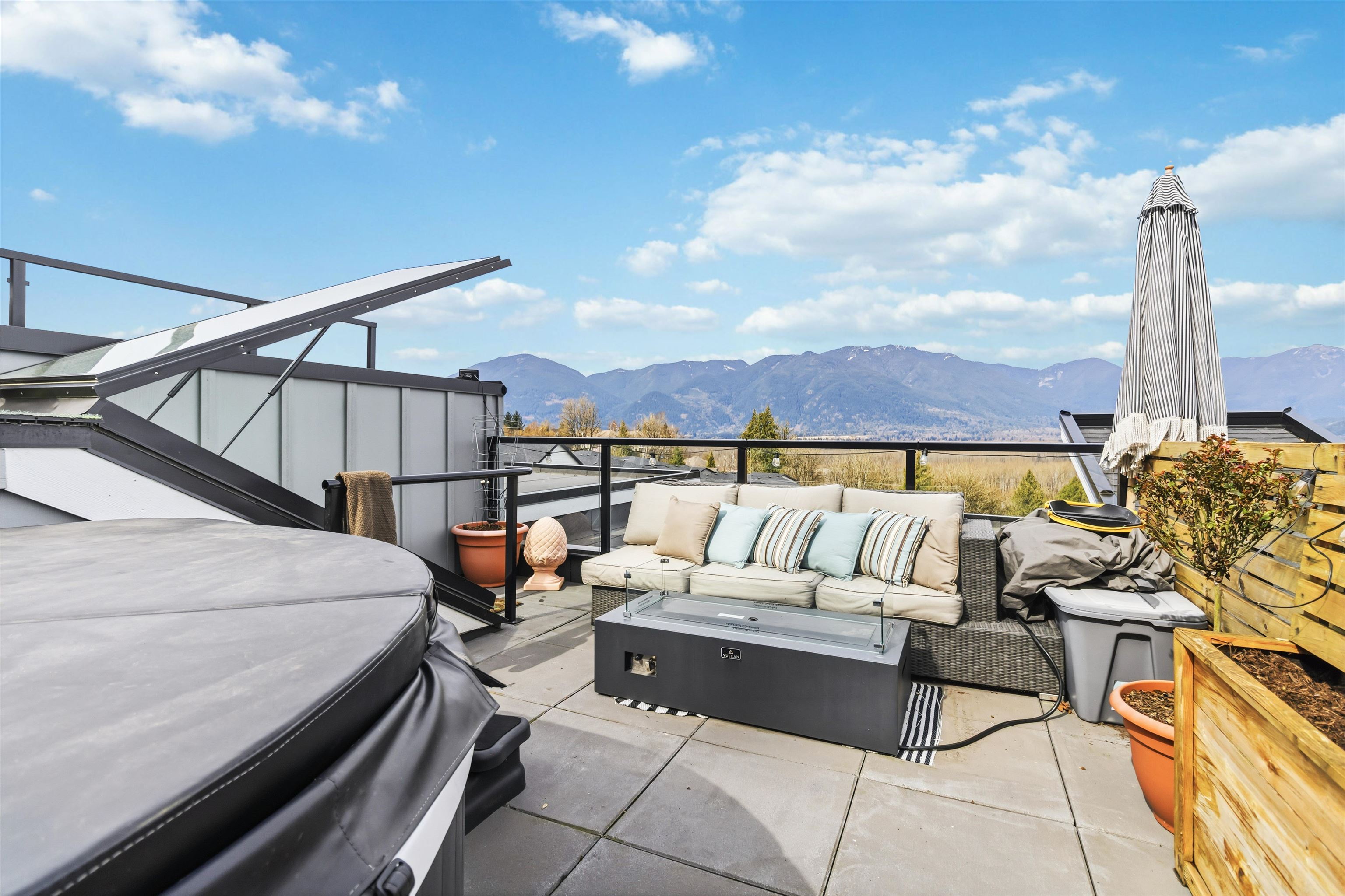 Welcome to this stunning 3-bedroom, 2-bath townhouse at Osprey Ridge on Chilliwack Mountain, offering breathtaking mountain views and a like-new feel throughout. This home features high-end upgrades including premium appliances, custom kitchen detailing, and air conditioning for year-round comfort. Step outside to a fully fenced backyard, perfect for relaxing or entertaining. The showstopper is the incredible rooftop patio complete with a hot tub—your private retreat with unbeatable views. Nestled in a quie...