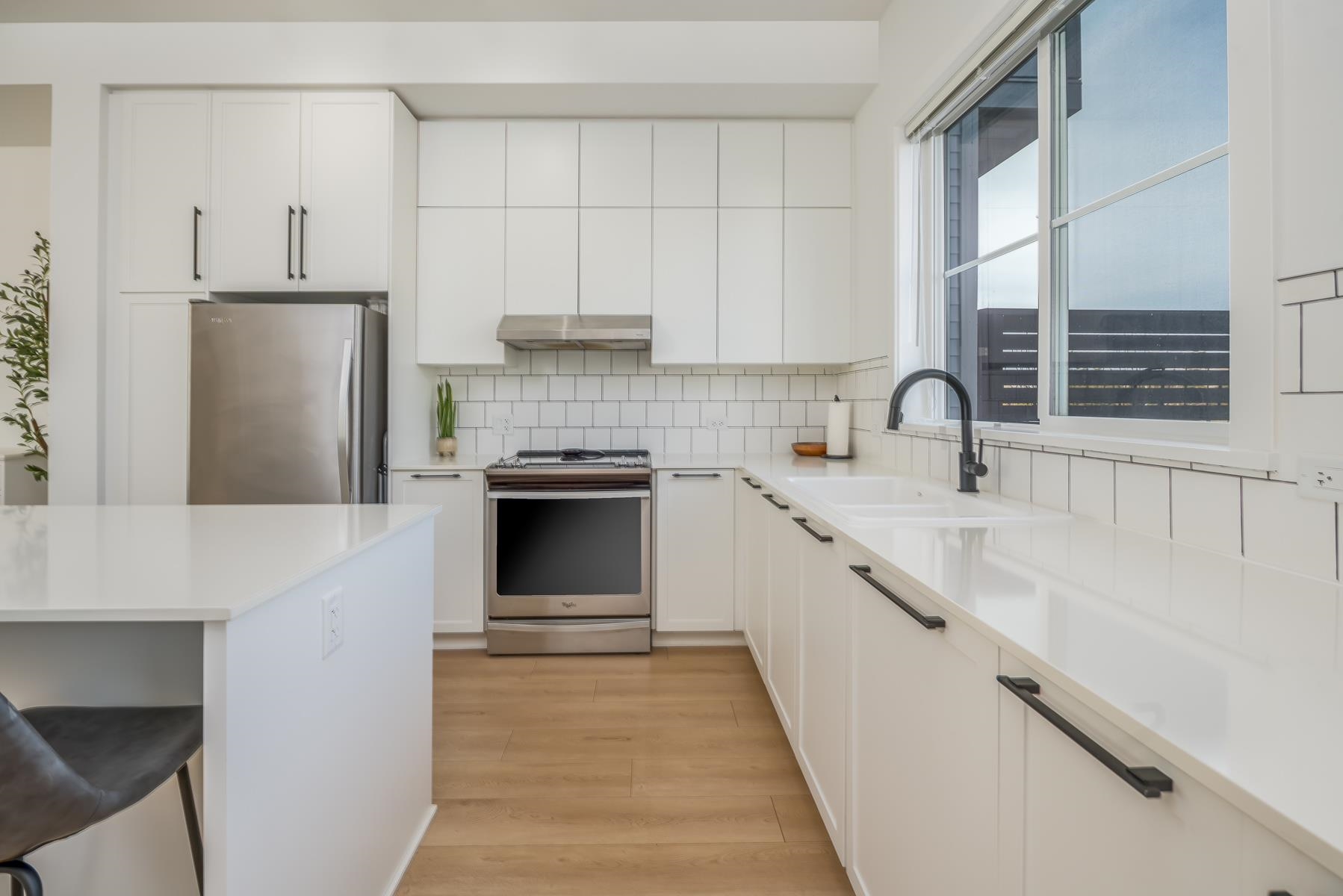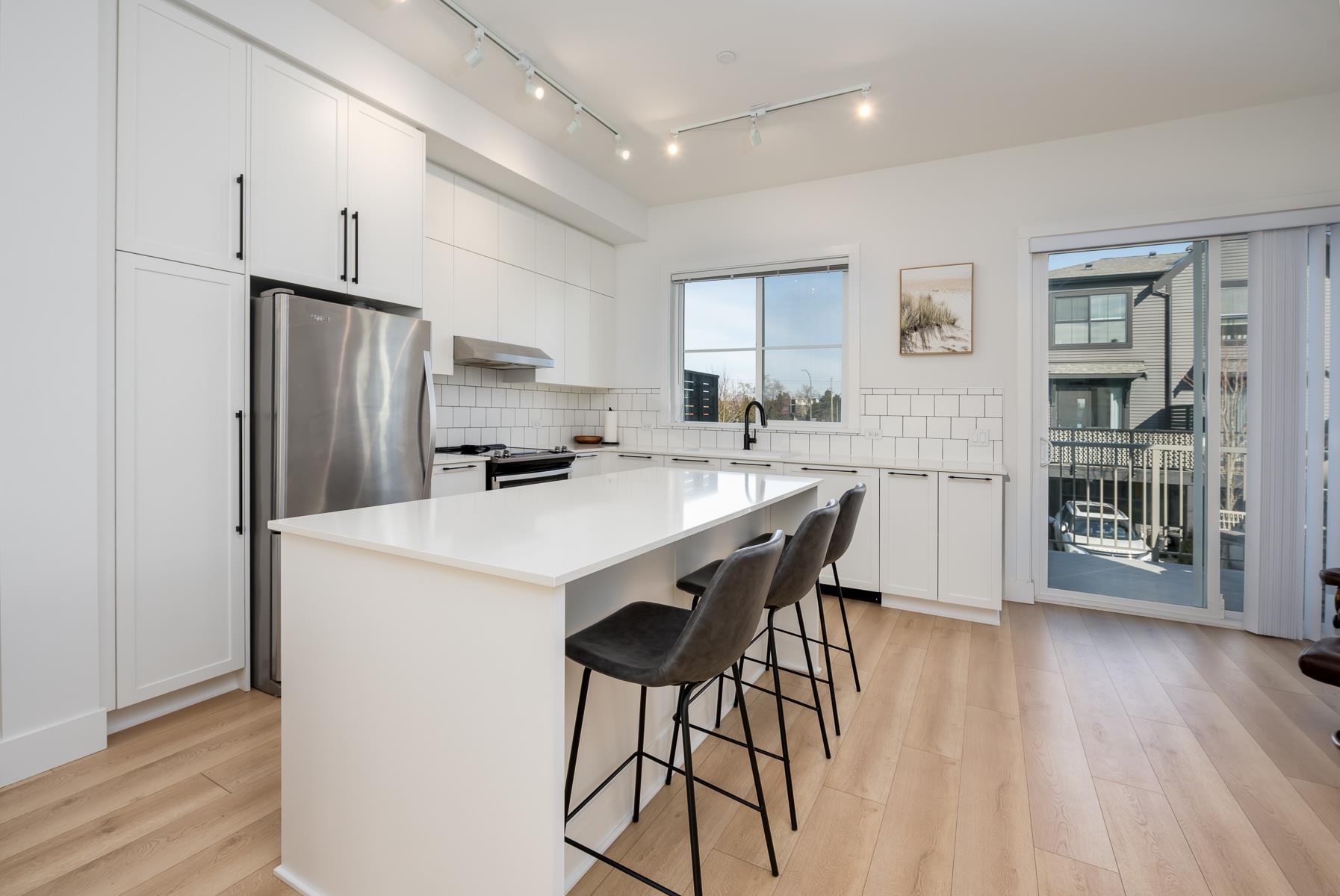 RARE OPPORTUNITY to own an end corner E-plan townhome with a highly sought-after side-by-side double garage plus parking pad for 2 additional vehicles. This larger 4 bedroom, 4 bathroom home offers exceptional space and natural light with extra corner windows throughout. Features include 10 ft ceilings and a gourmet kitchen designed for everyday living and entertaining. Enjoy a 159 sq ft balcony and a private, enclosed front yard overlooking green space and park. Community-oriented, pet friendly neighbourho...