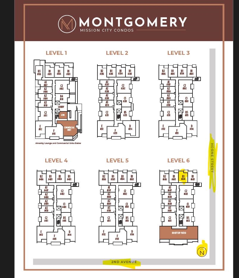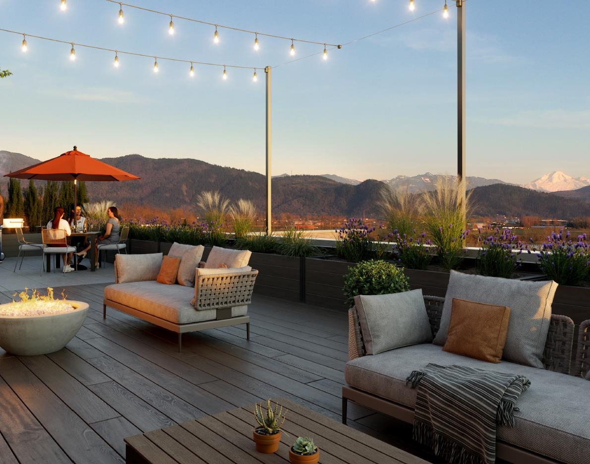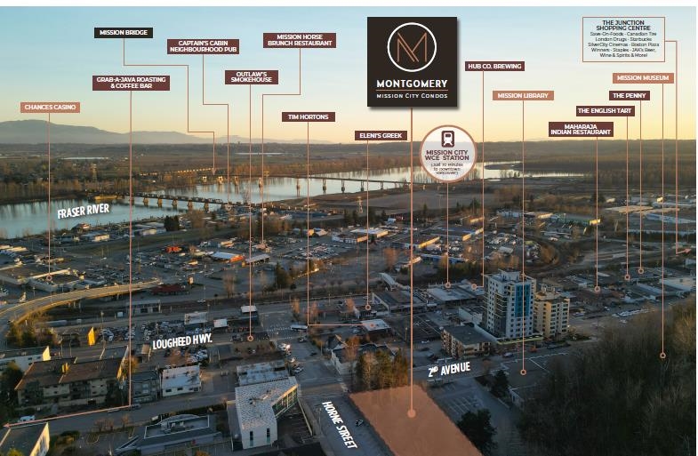 Welcome to Montgomery, a boutique development by Redekop Faye in the heart of Mission. This rare, sold-out Jr. 2-bedroom corner unit offers a bright, private setting on the 6th floor (top floor) with a peaceful tree-lined outlook and abundant natural light. Features include updated laminate flooring throughout. Ideally located just minutes from the West Coast Express, downtown Mission, shopping, dining, parks, and everyday amenities, this home offers the perfect blend of urban convenience and relaxed Fraser...