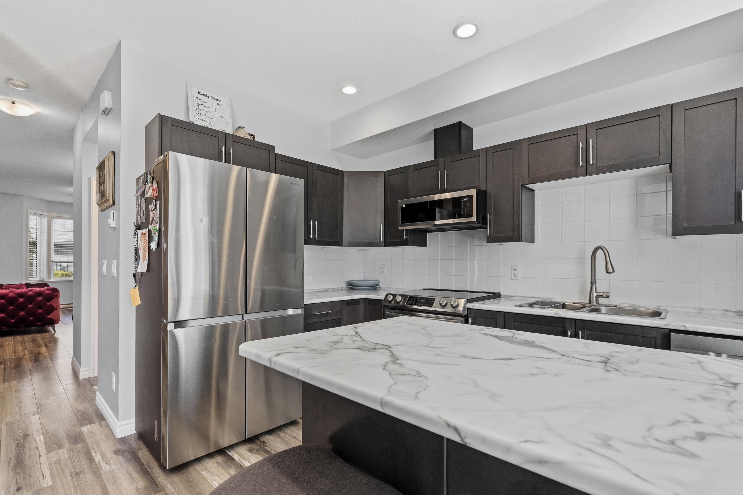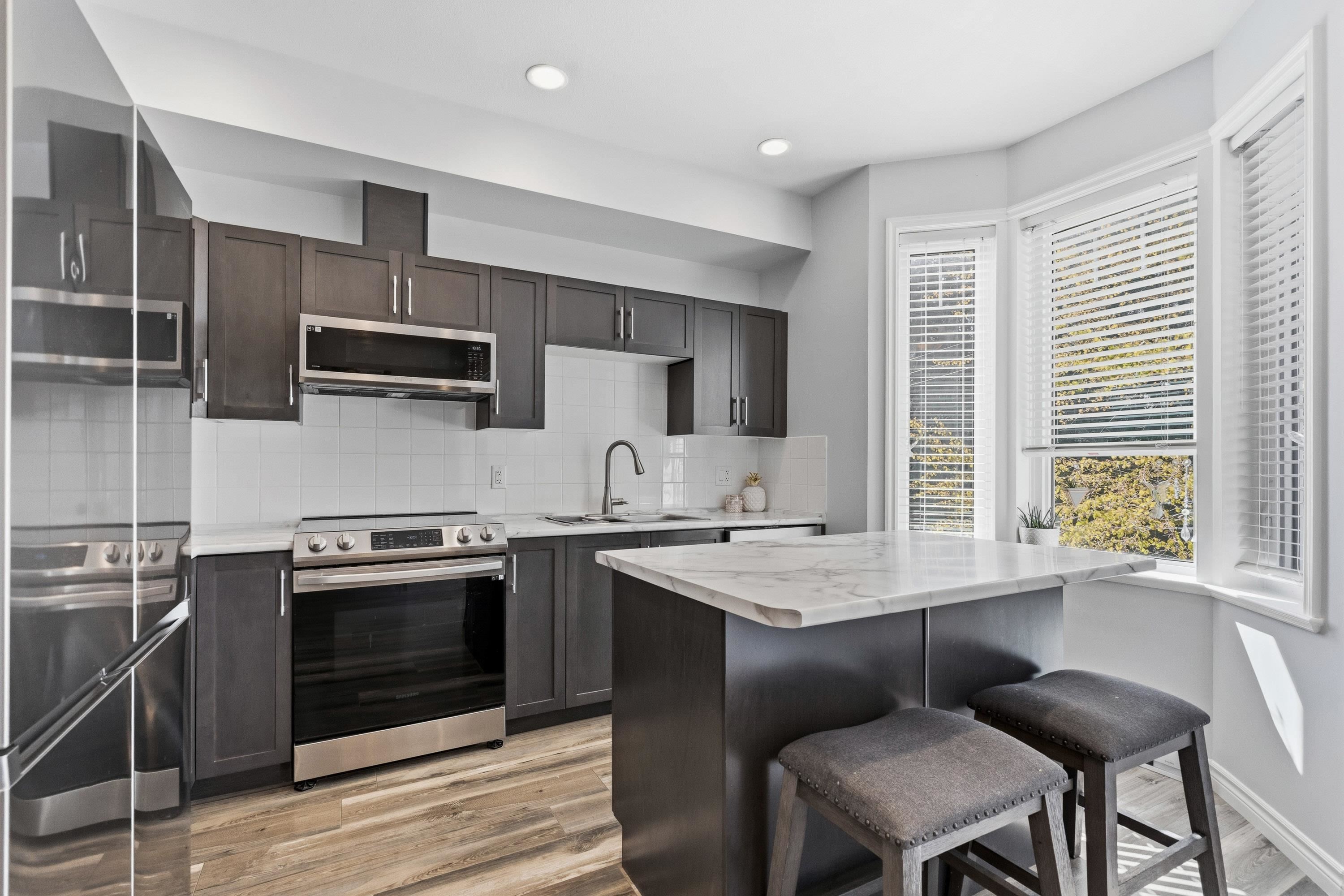 Fully renovated in 2021! Like brand-new unit 3-bedroom, 3-bathroom townhome in well-managed Fraser Landing complex! Spacious & bright with 1,550+ sq ft living space on 3 storeys. Master bedroom with walk-in closet and ensuite. Excellent large rec room with separate entrance on lower floor, ideal for office space or hang-out area for kids. Centrally located, walking distance to all amenities & shopping yet quietly tucked in behind the hustle and bustle.