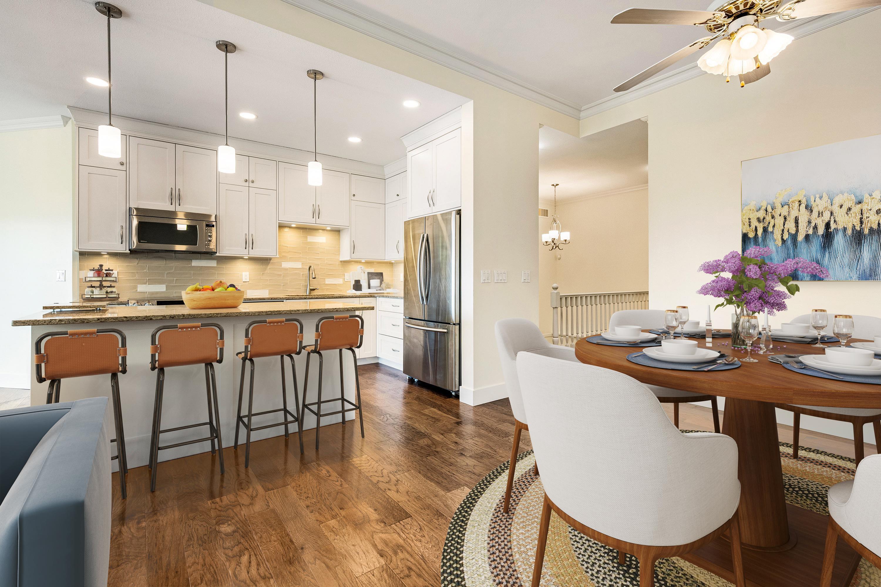 Welcome to the prestigious Eaton Place on Eagle Mountain! Rarely available 3 bed, 3 bath Rancher w/Bsmt in prime location within this quiet gated community. Bright updated kitchen with quartz counters, ceramic tile backsplash, soft close shaker cabinets, S/S appliances and more. Spacious eating area w/ updated engineered hardwood floors, moldings and 9/10ft ceilings throughout main. Large living room w/gas fireplace & dining area. Walk out to your private deck with Mt.Baker views off of both kitchen nook an...