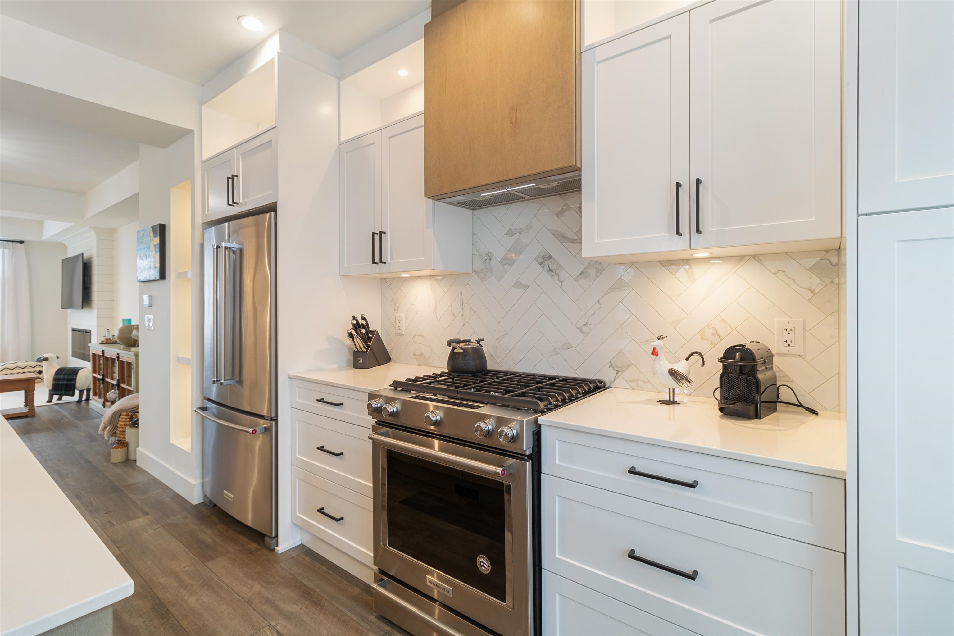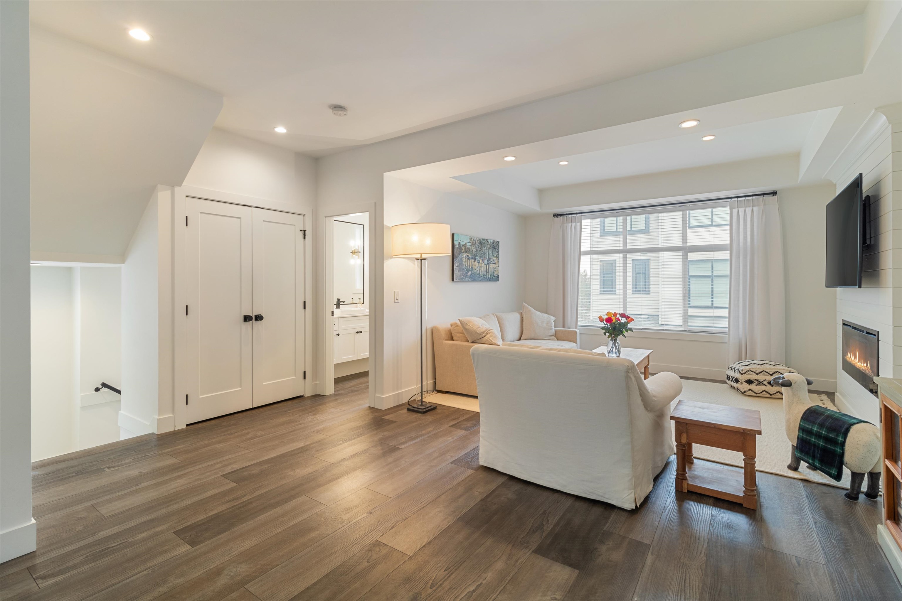 Duplex-style END UNIT townhome with 4 beds & 4 baths next to the greenbelt in prime East Abbotsford. The main floor features an open kitchen, large dining area, family & living rooms with a fireplace, and access to a fenced yard. Upstairs, the spacious primary suite offers a walkout patio, spa-like ensuite with a glass shower, tub, double sinks & walk-in closet with built-ins, plus 2 more bedrooms & a large laundry closet. The basement includes a bonus bedroom with a full bath—great for teens or extended fa...